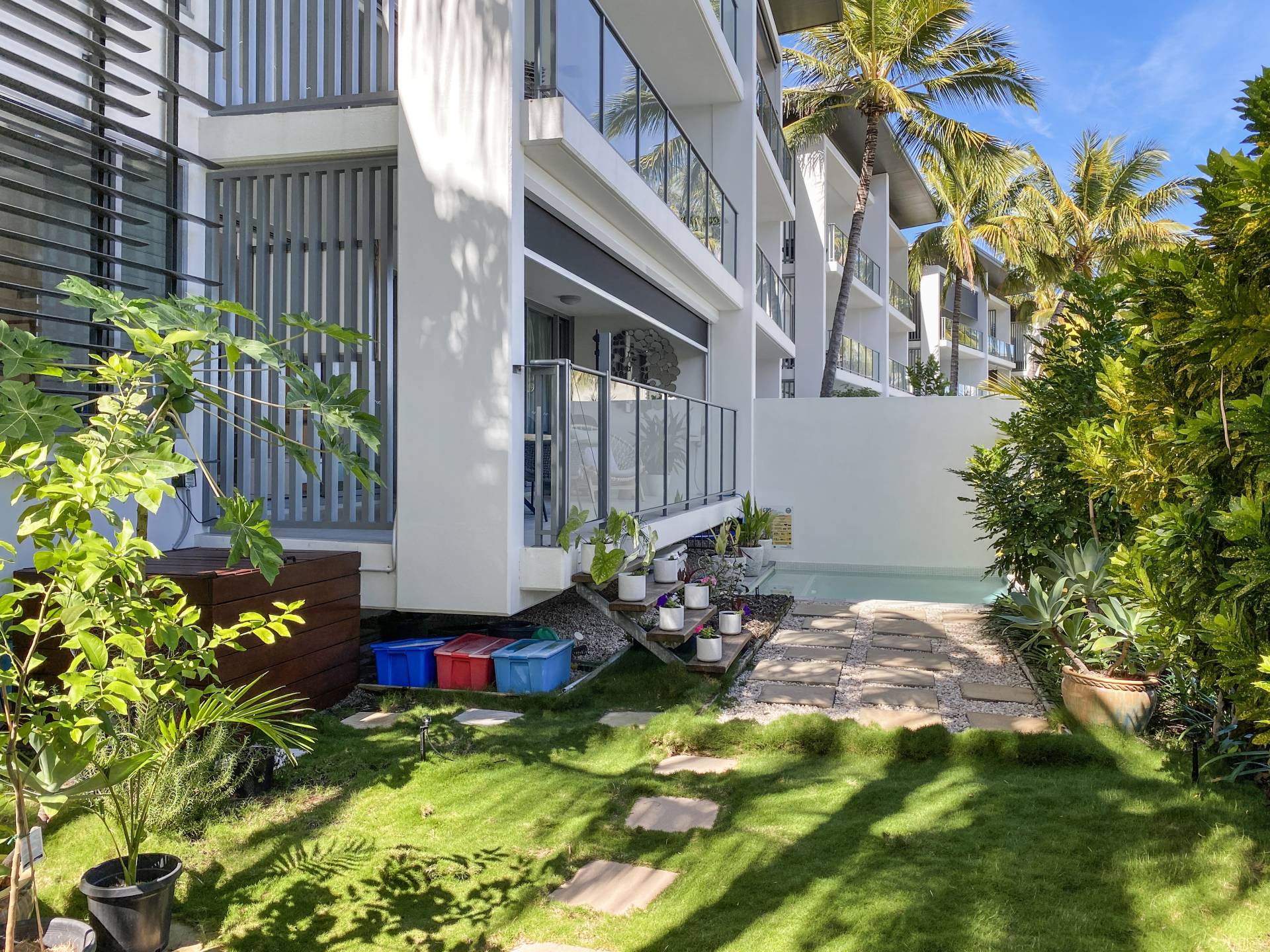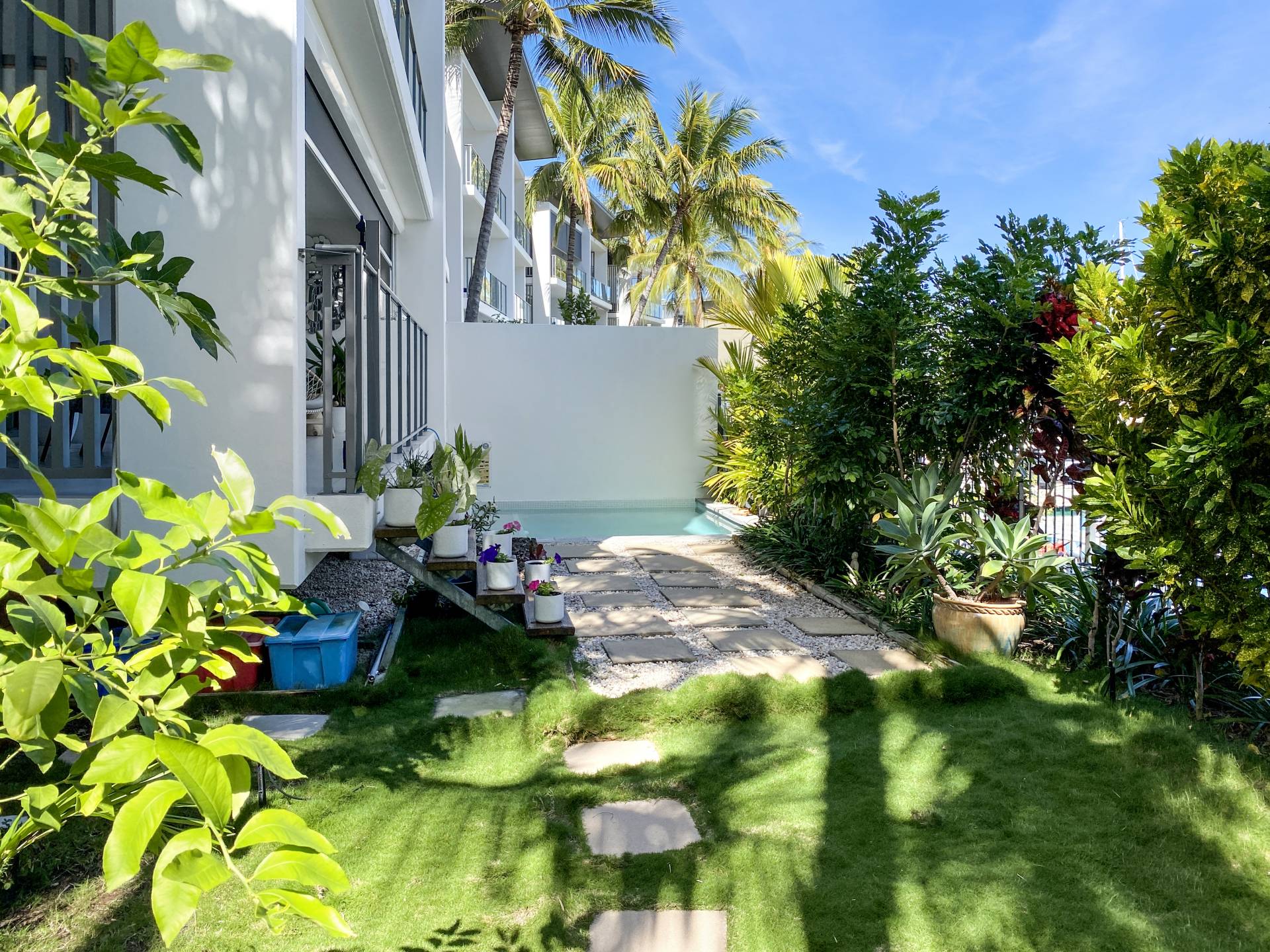 This ground floor corner apartment at Blue on Blue not only has its own private magnesium plunge pool and garden but is also in immaculate condition as the owner occupiers have done all the hard work.