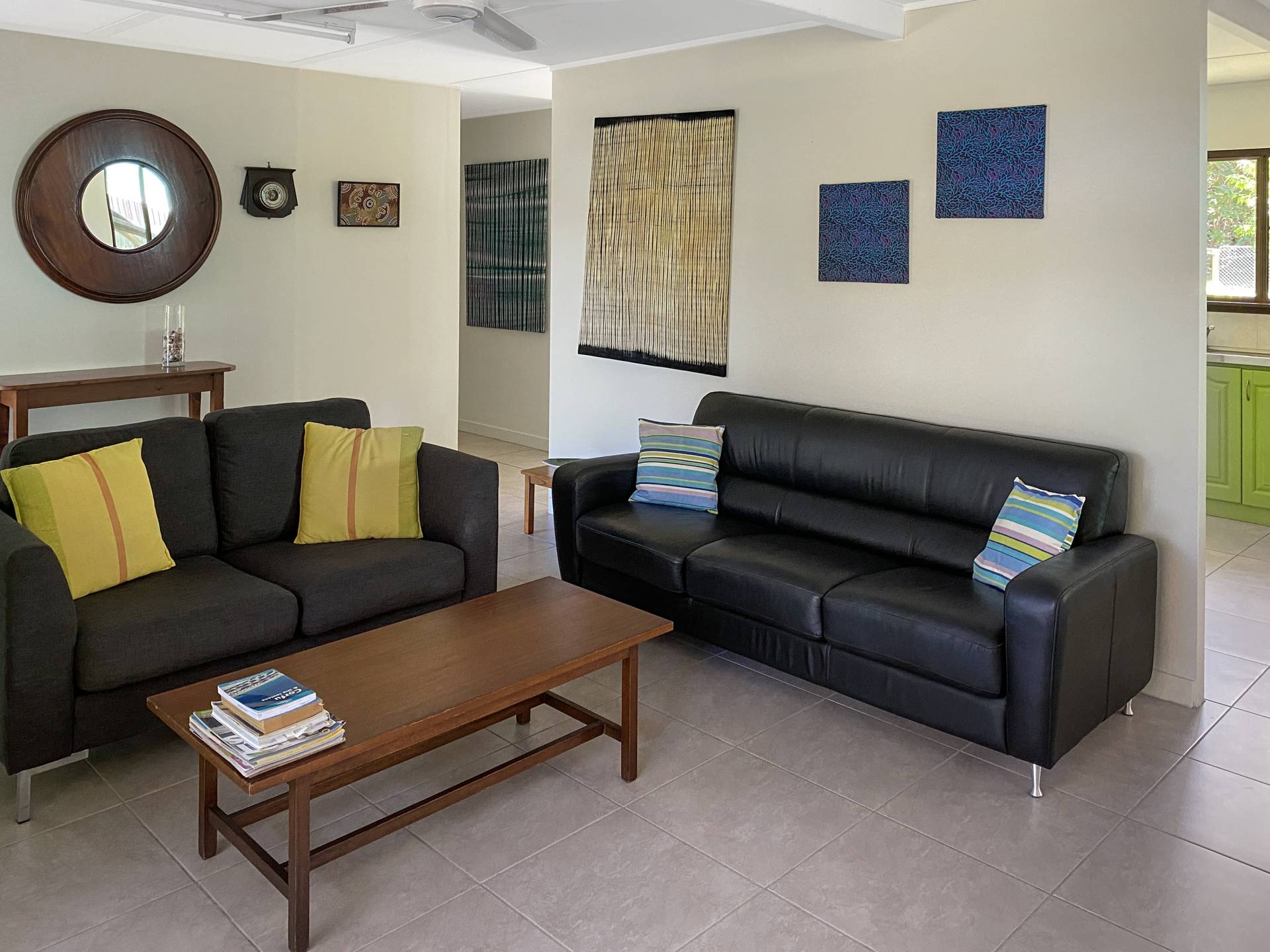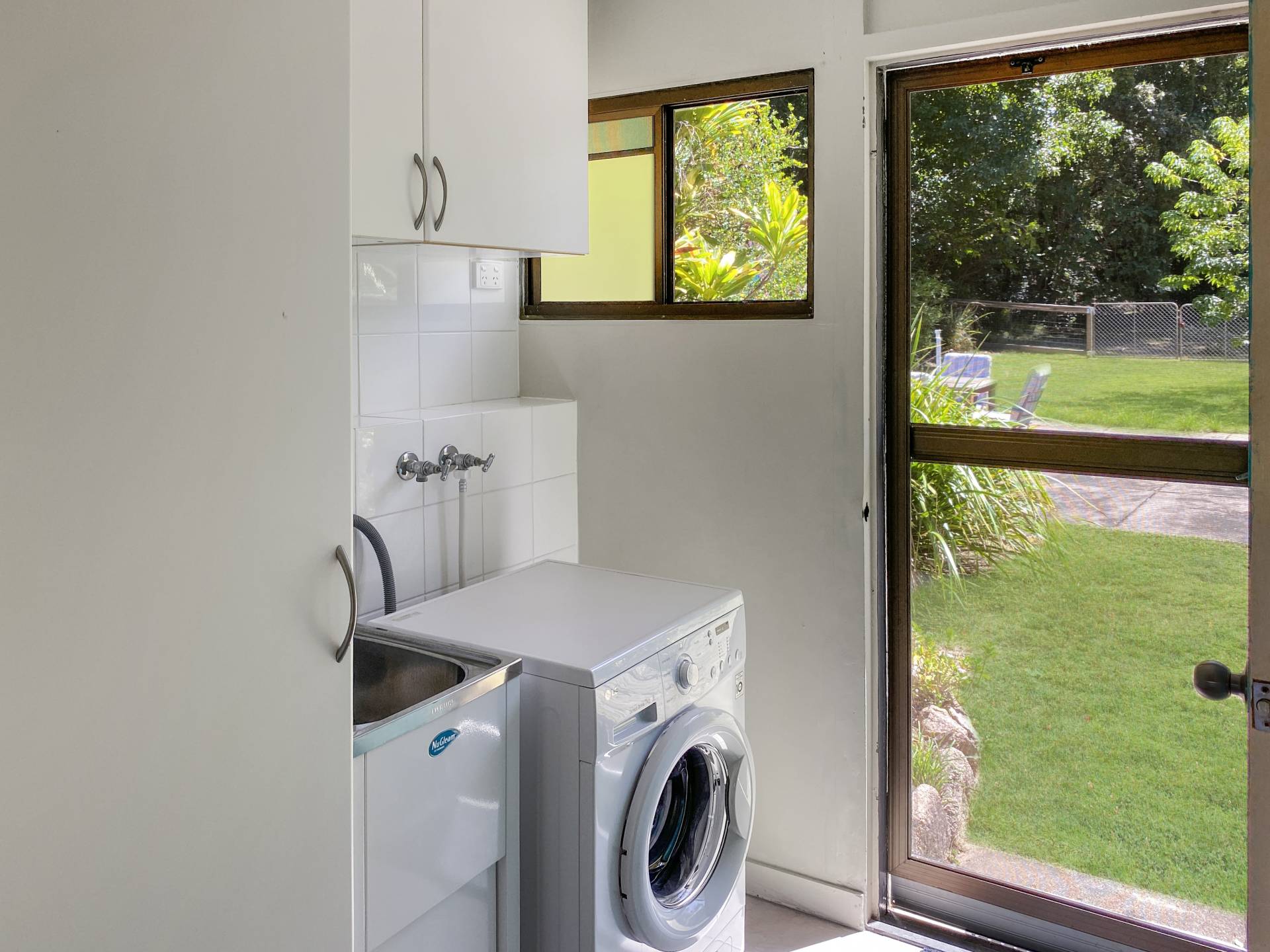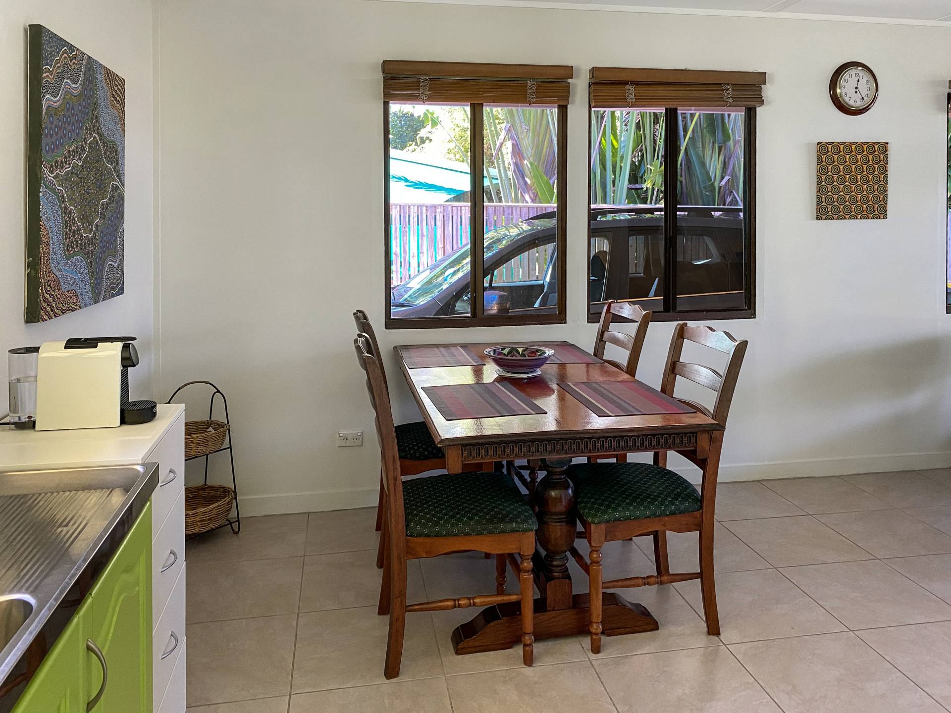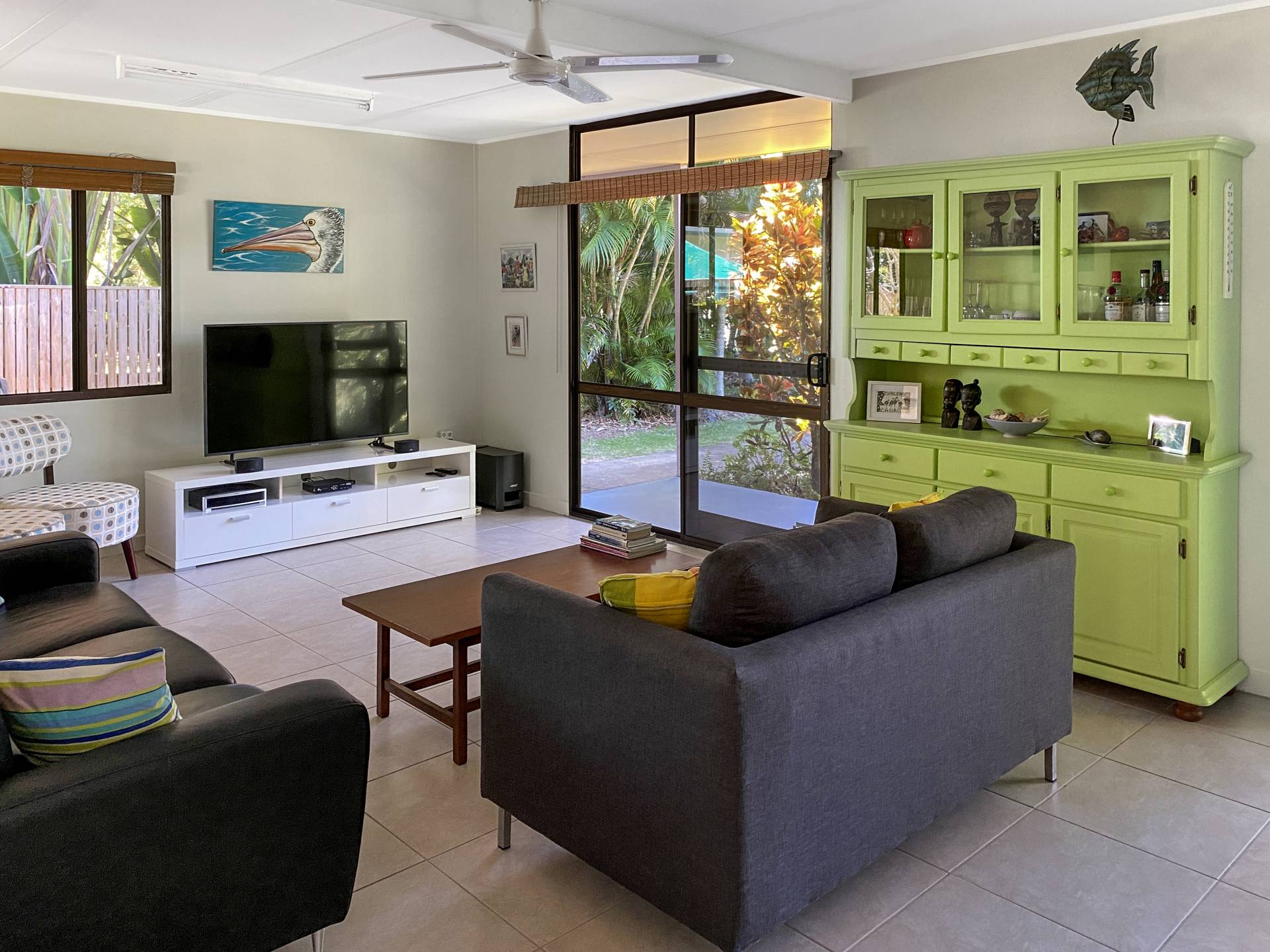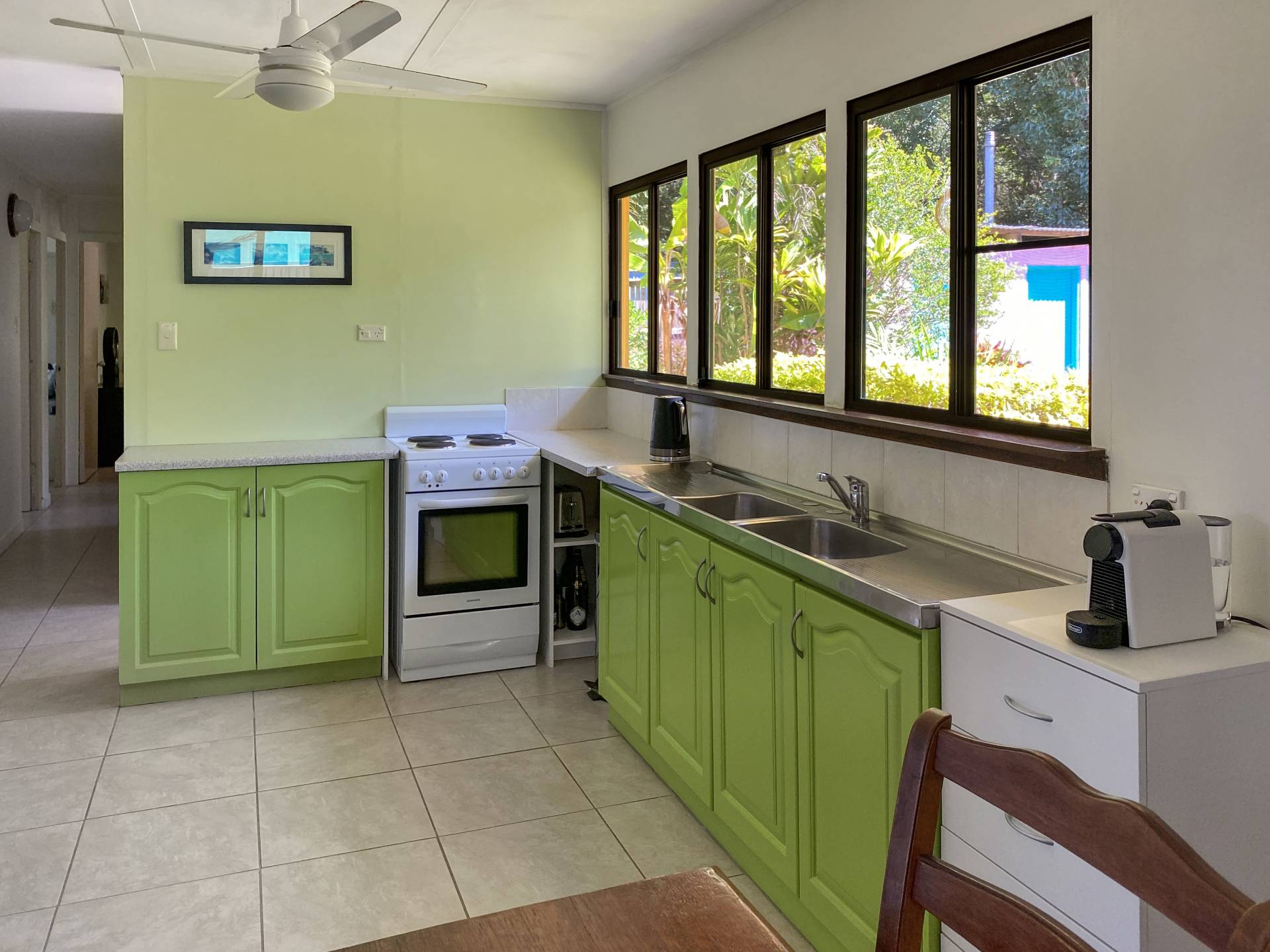 The covered front verandah is the ideal spot for a morning cuppa, with sliding doors and a formal front door opening into the living area. The kitchen enjoys a lovely view over the back garden, and whilst it's characteristic of an older Arcadia holiday home, it is perfectly neat and functional.