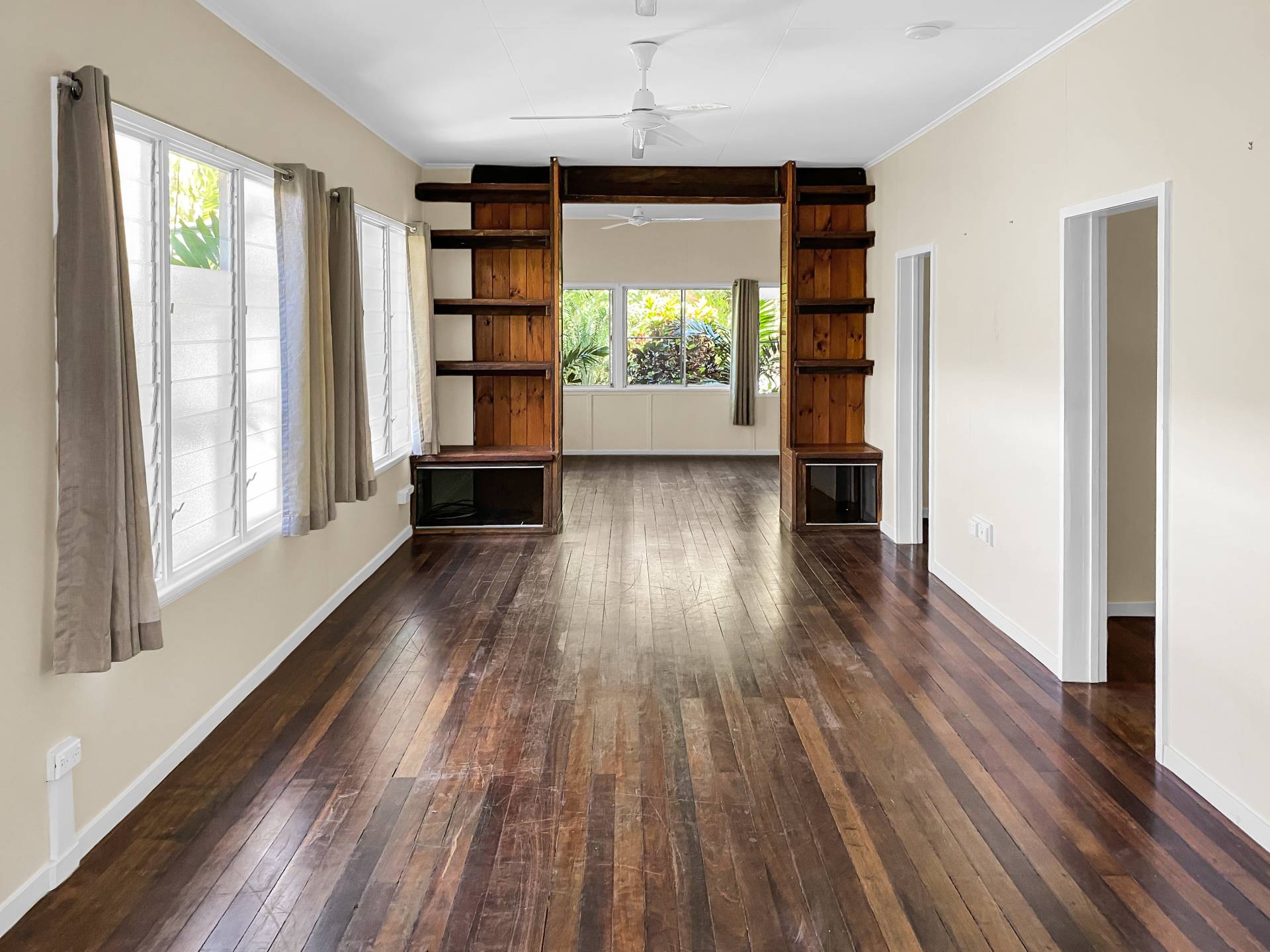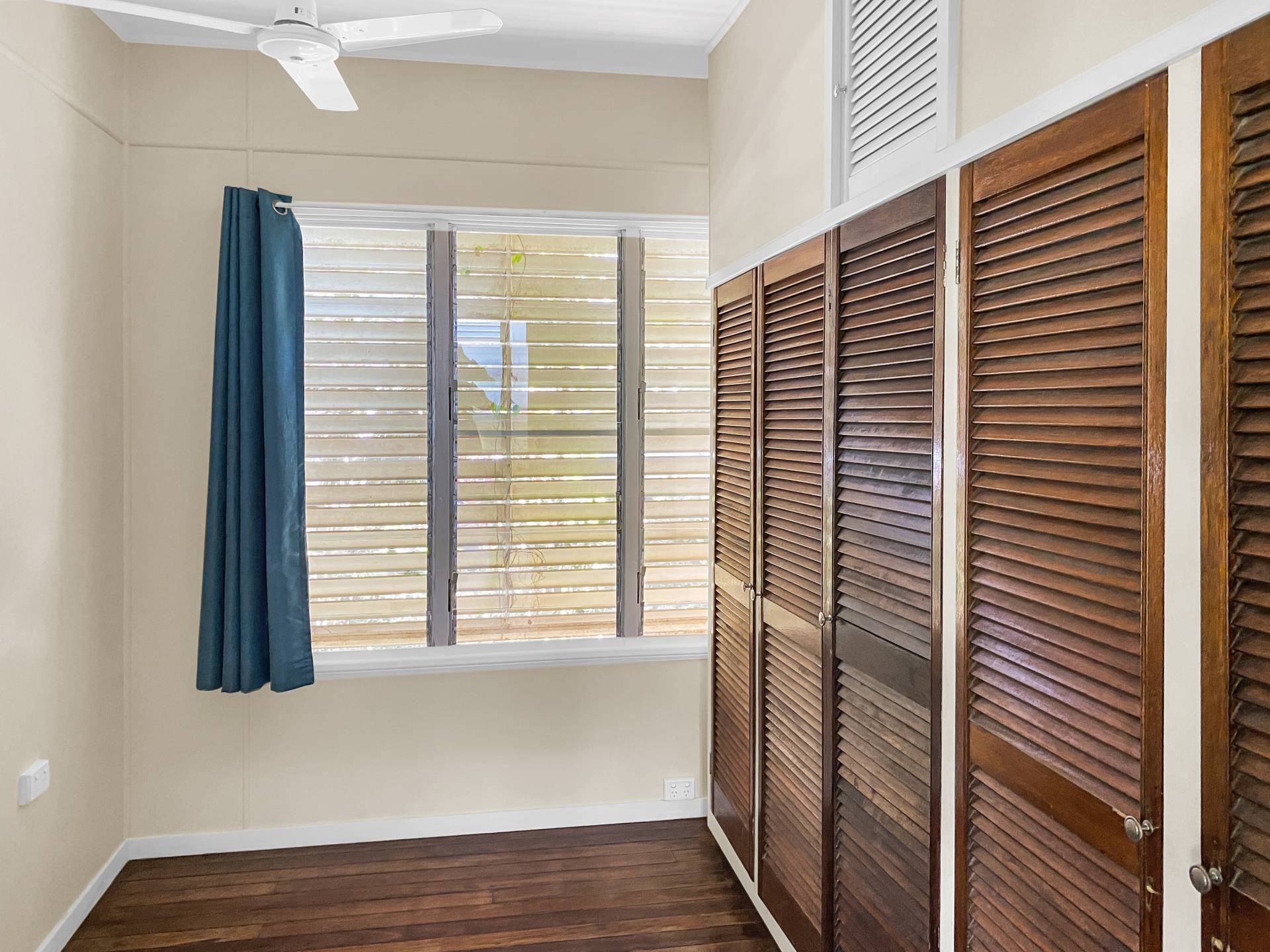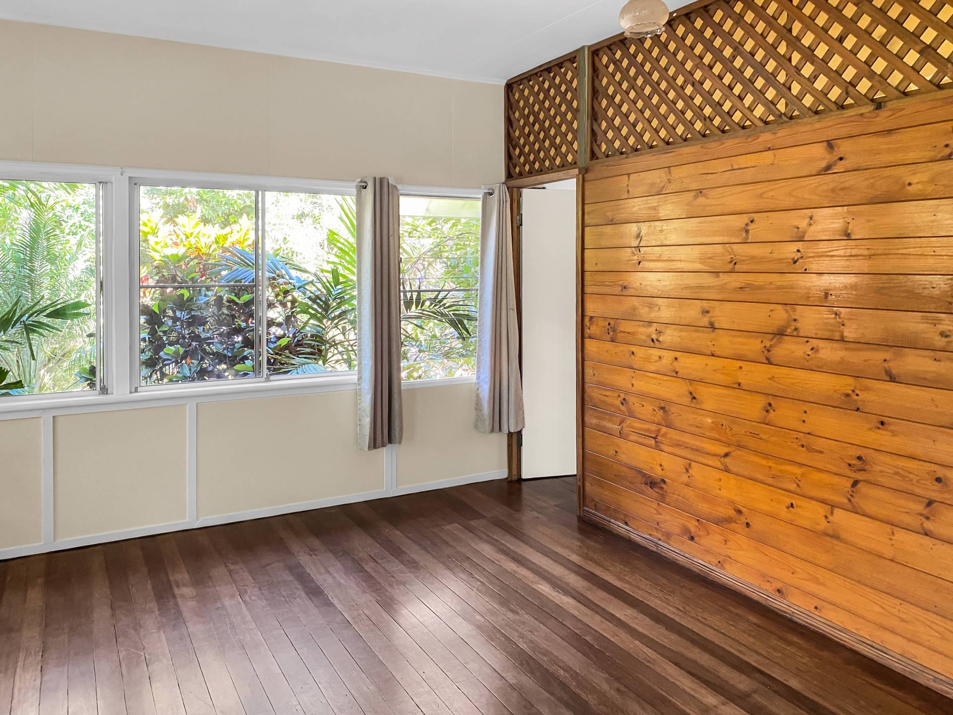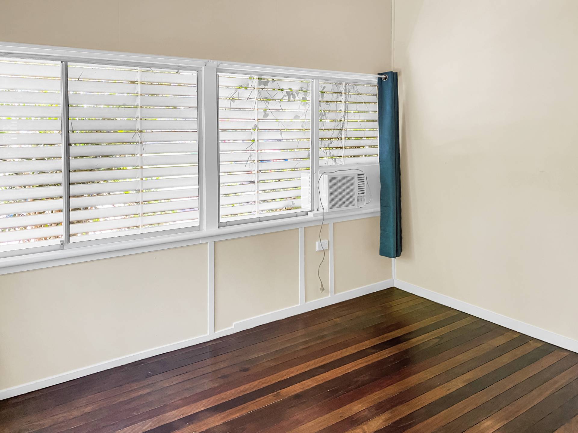 20 Picnic St is a 3 bedroom house with hardwood floors, high ceilings and lots of windows providing a light and airy feel. The main bedroom is large with a box air con, bedrooms 2 & 3 are on the small side, one due to large built-in-robes having been added. The living space is large with an additional area between the front door and main bedroom that would make a lovely home office or craft room with its nice outlook over the treed reserve across the road. The bathroom and laundry are at the back of the house which opens out into the back yard which has lots of potential, stepping down to a seasonal creek.
