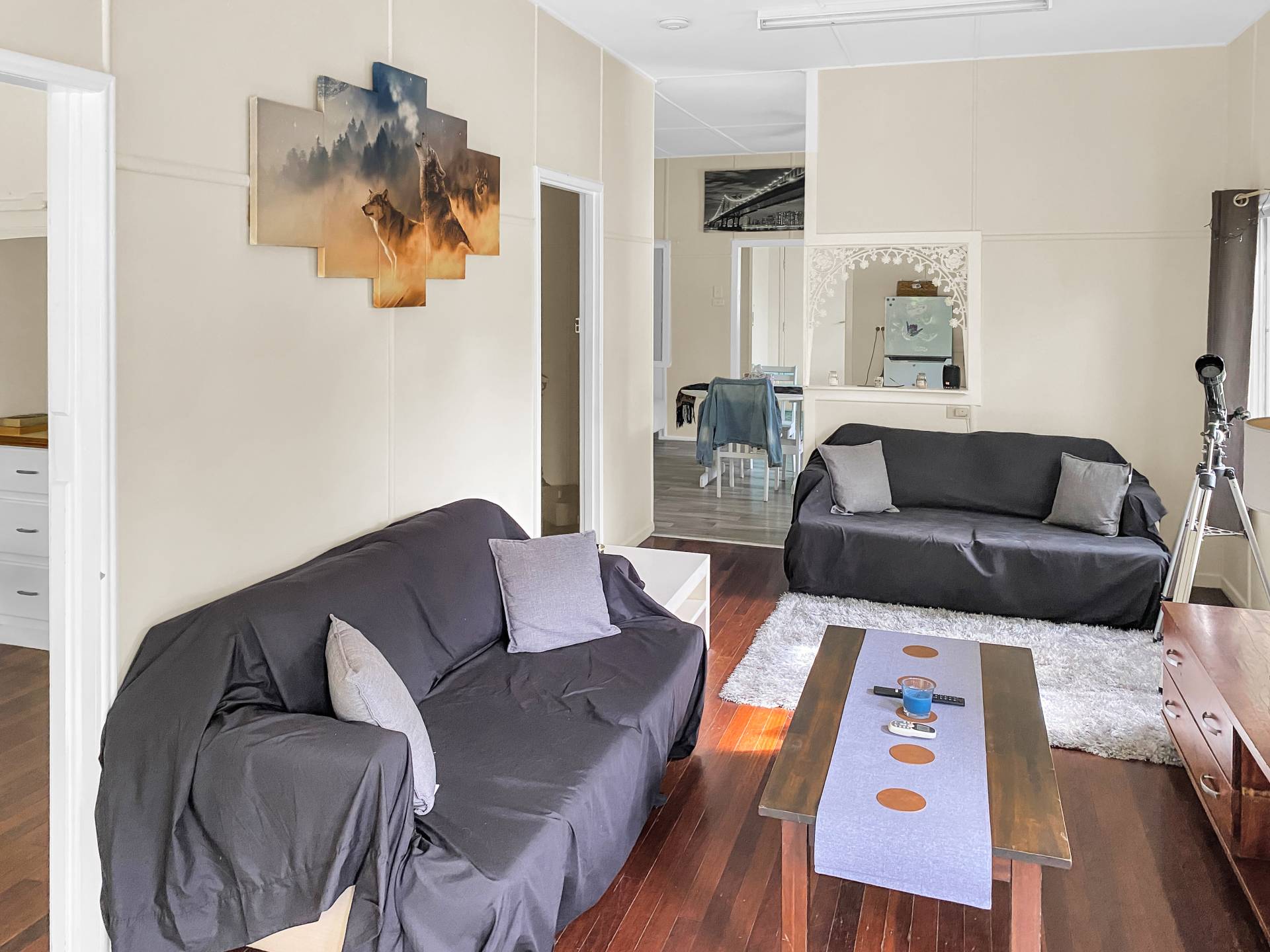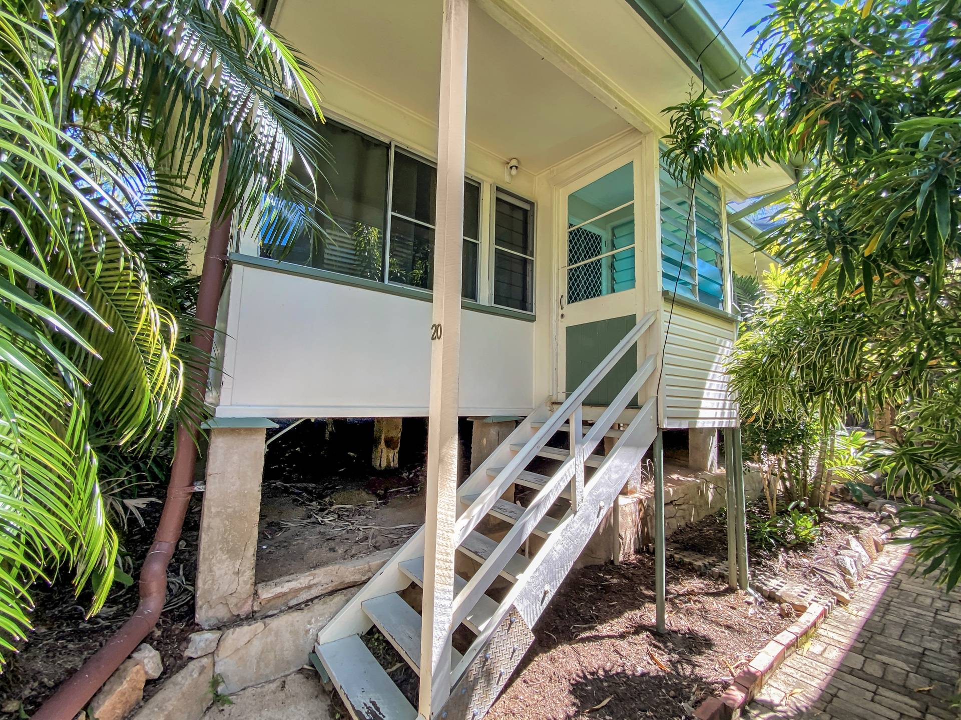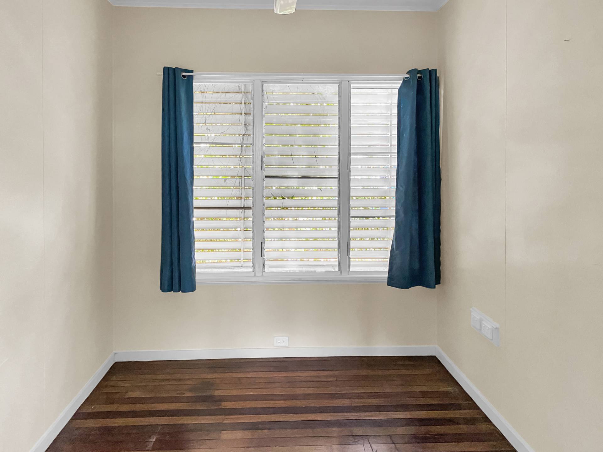 20 Picnic St is a 3 bedroom house with hardwood floors, high ceilings and lots of windows providing a light and airy feel. The main bedroom is large with a box air con, bedrooms 2 & 3 are on the small side, one due to large built-in-robes having been added. The living space is large with an additional area between the front door and main bedroom that would make a lovely home office or craft room with its nice outlook over the treed reserve across the road. The bathroom and laundry are at the back of the house which opens out into the back yard which has lots of potential, stepping down to a seasonal creek.
