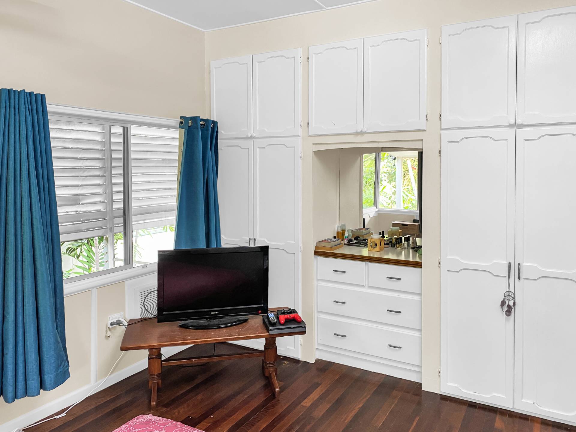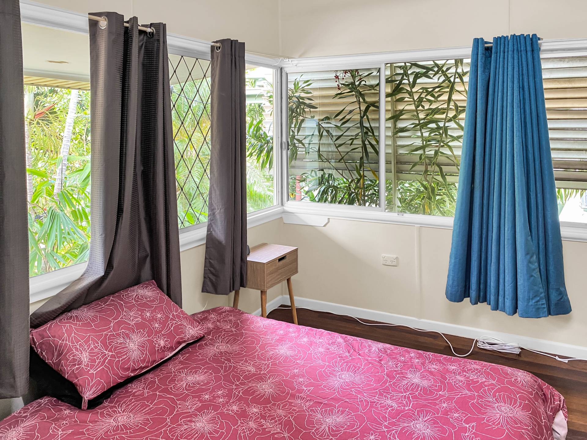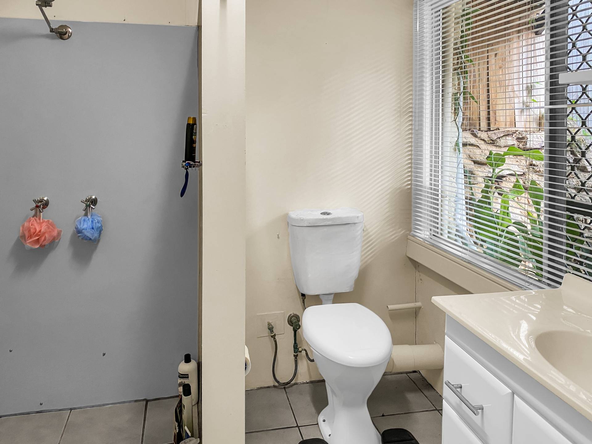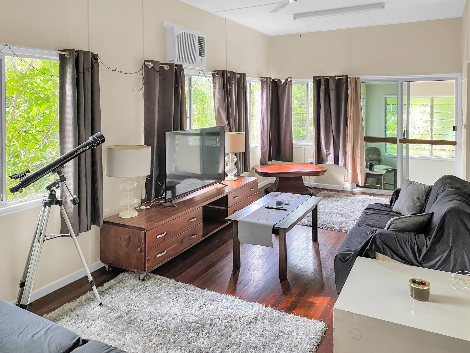 20 Picnic St is a 3 bedroom house with hardwood floors, high ceilings and lots of windows providing a light and airy feel. The main bedroom is large with a box air con, bedrooms 2 & 3 are on the small side, one due to large built-in-robes having been added. The living space is large with an additional area between the front door and main bedroom that would make a lovely home office or craft room with its nice outlook over the treed reserve across the road. The bathroom and laundry are at the back of the house which opens out into the back yard which has lots of potential, stepping down to a seasonal creek.