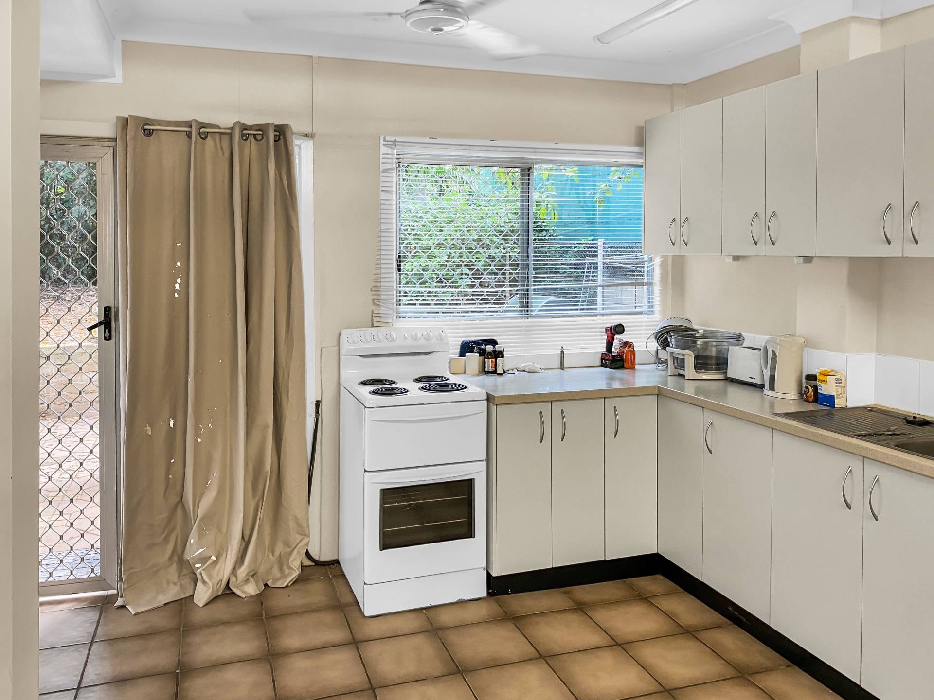 2/22 Picnic St is the downstairs unit, currently let at $320 per week to May 2023. This unit has three bedrooms, all with built-in-wardrobes, accessed straight off the living area which runs to the kitchen at the back of the unit off which is the bathroom. There's a good-sized back yard with a paved patio area.
