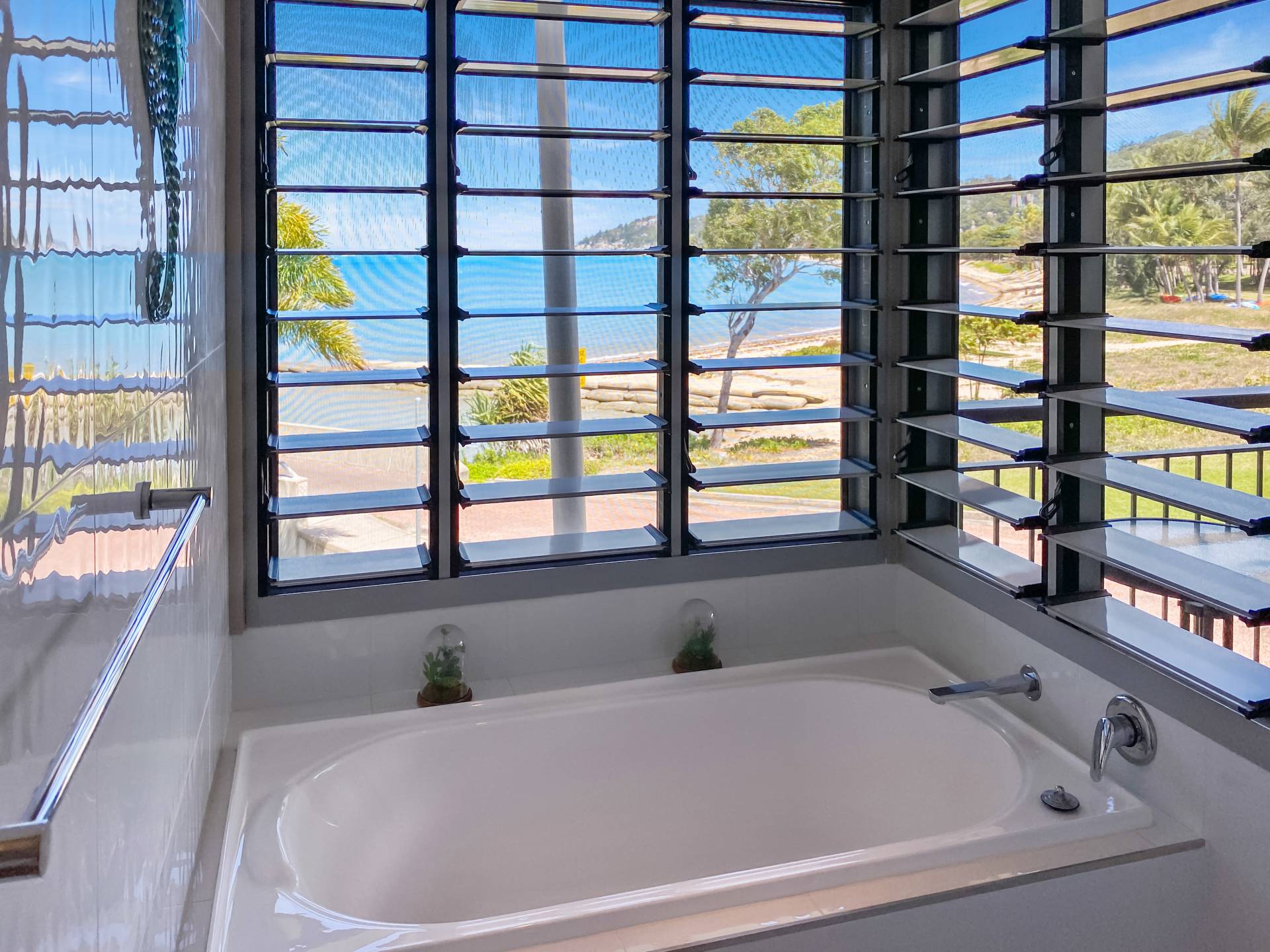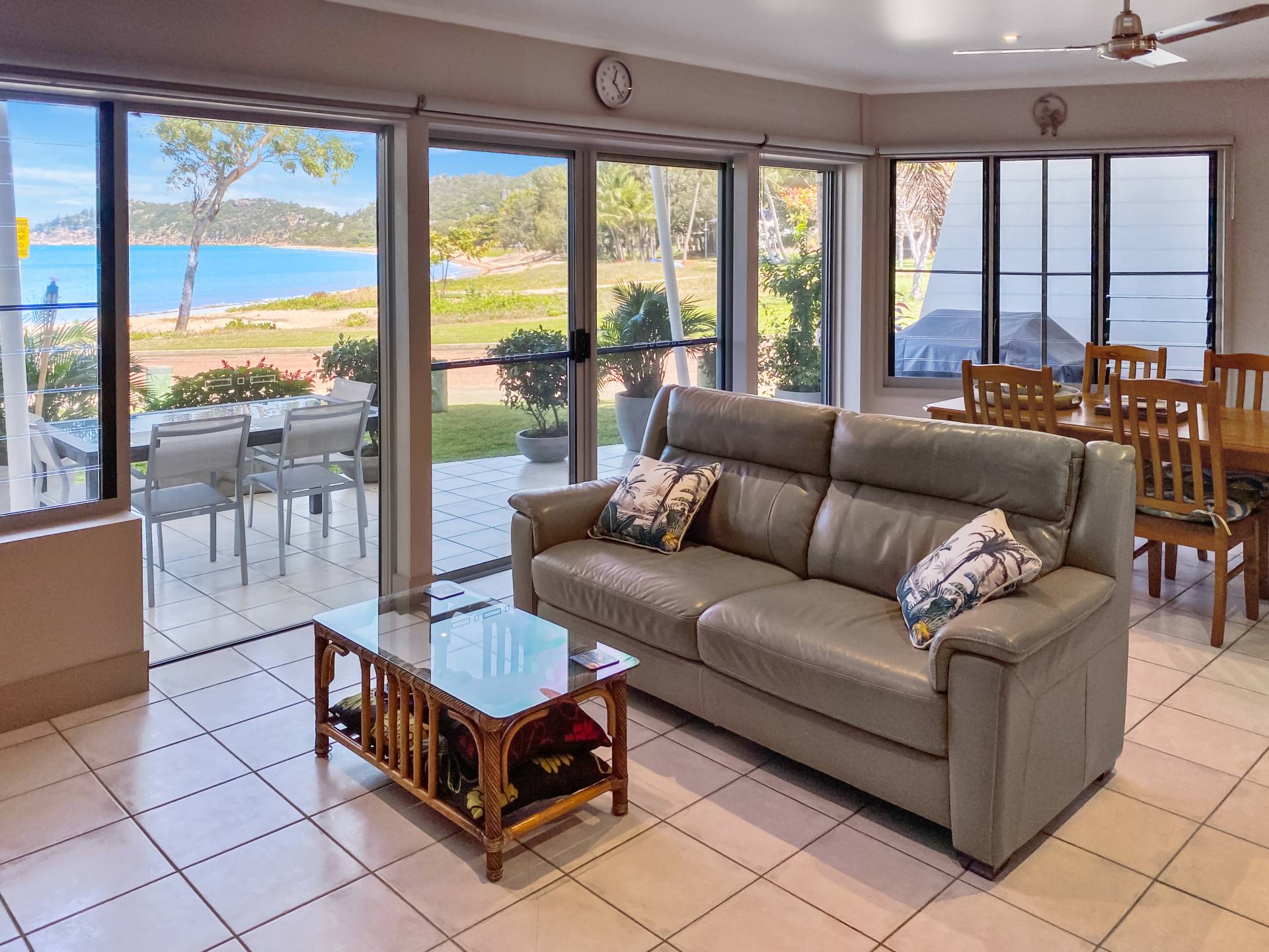 The tinted doors across the front of the living area allow you to enjoy the view all day long without people seeing in, and with a door and window to the rear as well, it catches just the right amount of breeze from all directions.