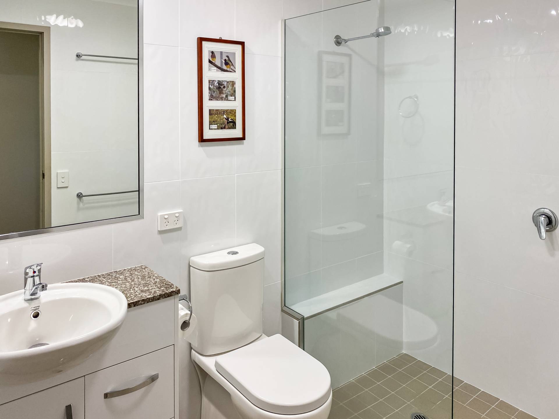 Upstairs, both bedrooms are extremely generous in size and the polished timber floors provide a warm homely feel. There's plenty of storage with built-in-robes in both and more in the hallway. Both the bathroom and the ensuite have been renovated recently so are in tip top condition. Each has a walk-in shower while the ensuite also has a bath with a view.  The balcony off the master bedroom has spectacular views to the ocean, beach & mountains - what a perfect start to the day!
