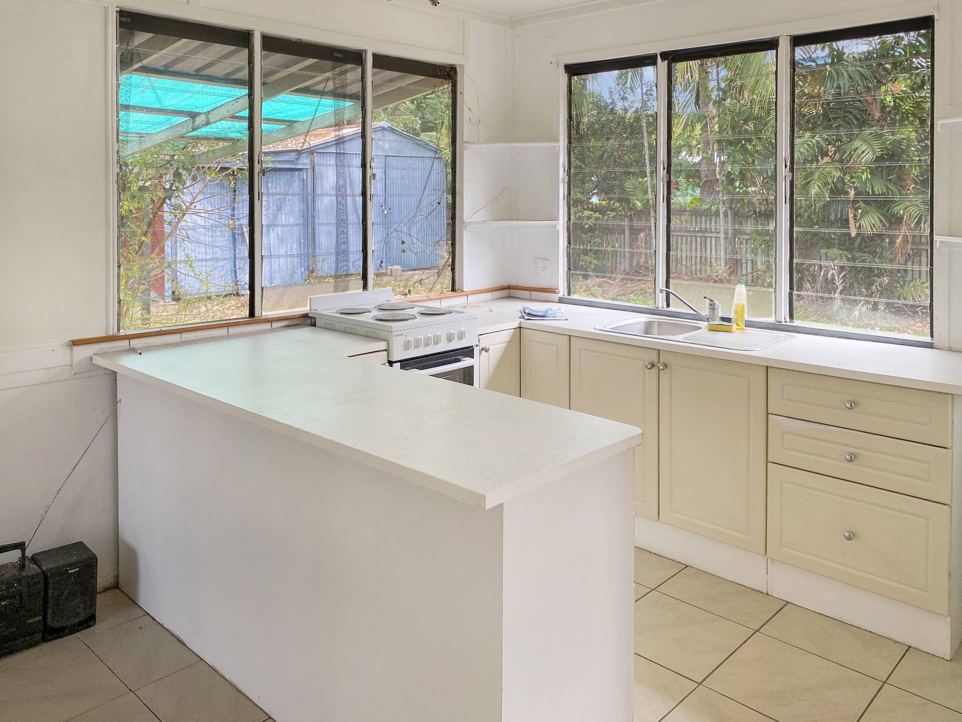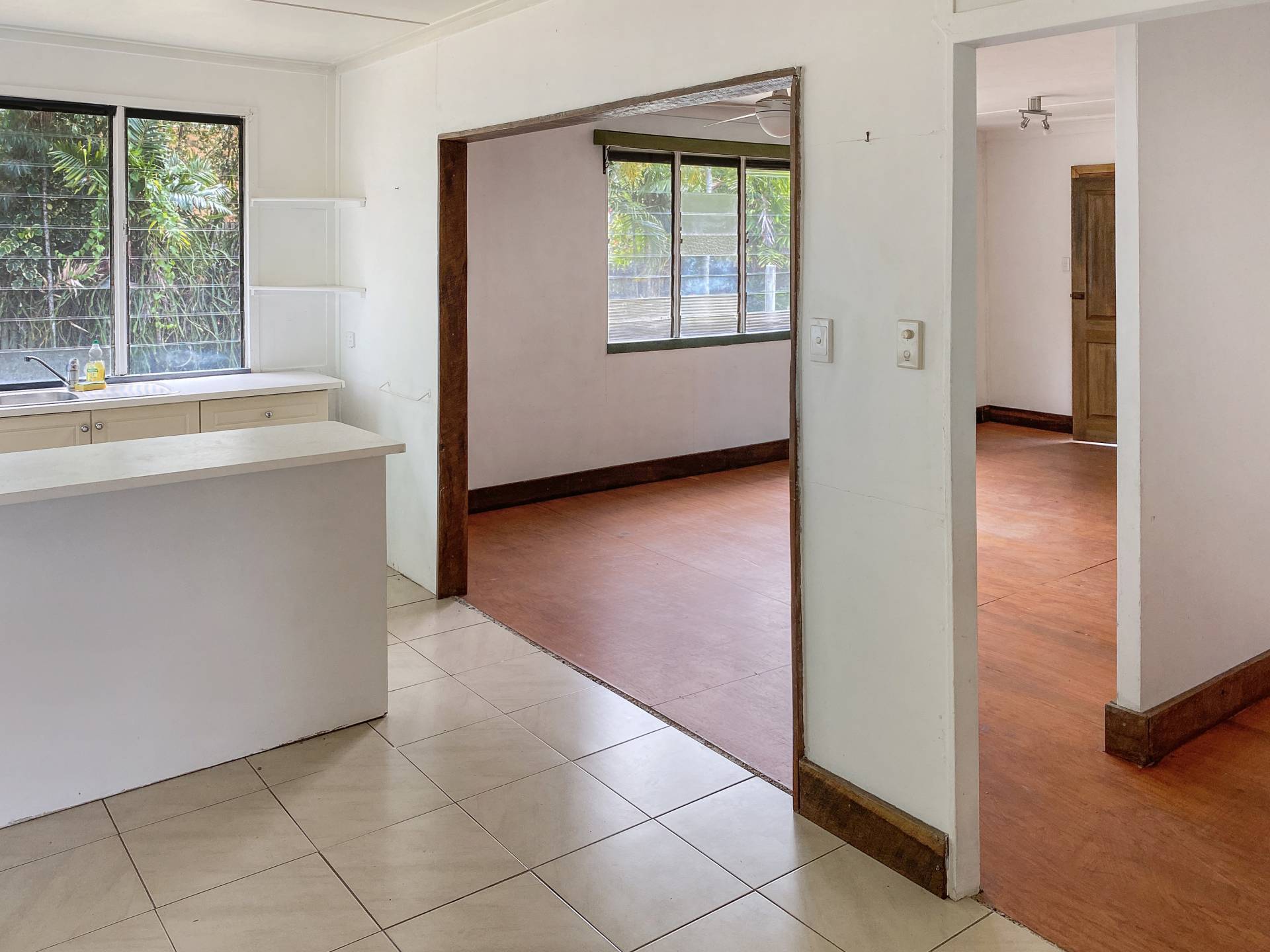 This prime location 1012m2 lot with 20m frontage to the main road offers a world of opportunities to prospective buyers. The cottage itself dates back to 1950 or earlier and was once part of a thriving pineapple farm. Internally, it comprises 3 bedrooms, the front room being the largest with timber floorboards and colourful casement windows. The living area is generous in size with a basic but functional kitchen towards the rear of the house, with a step down to the laundry, bathroom and back door leading to the back yard.