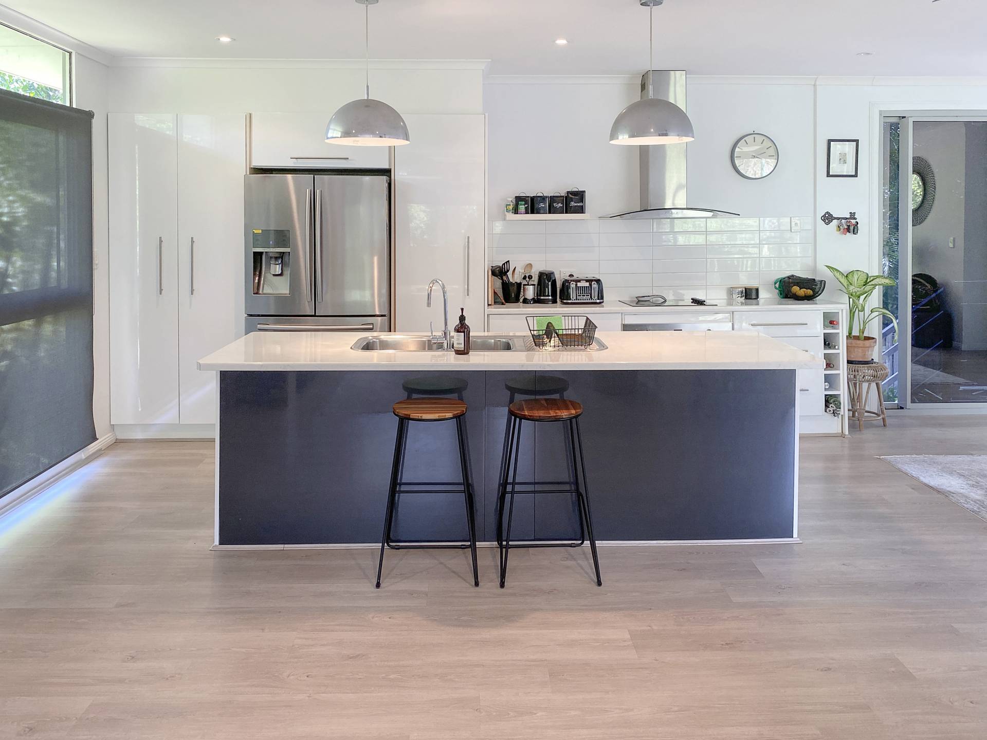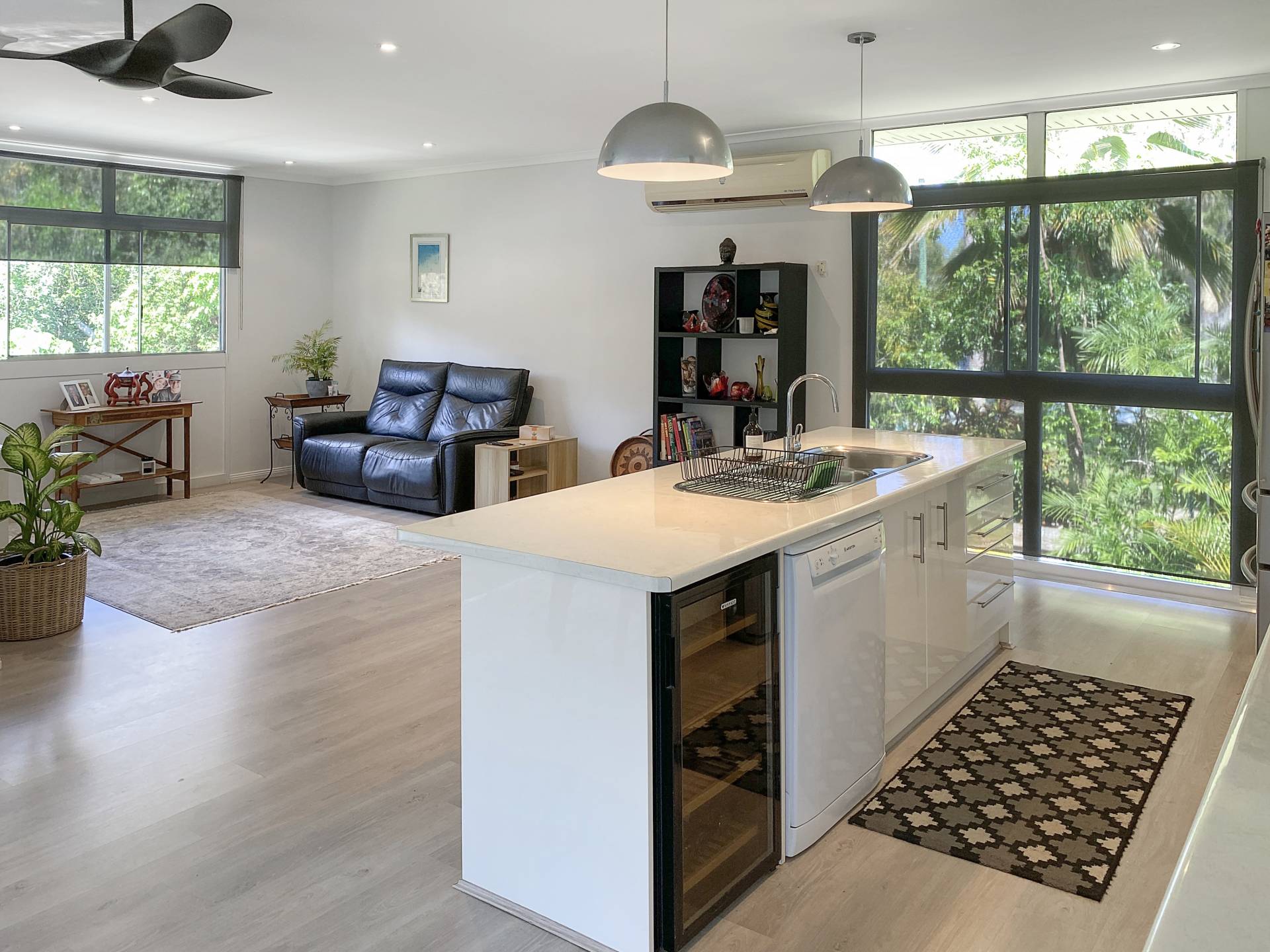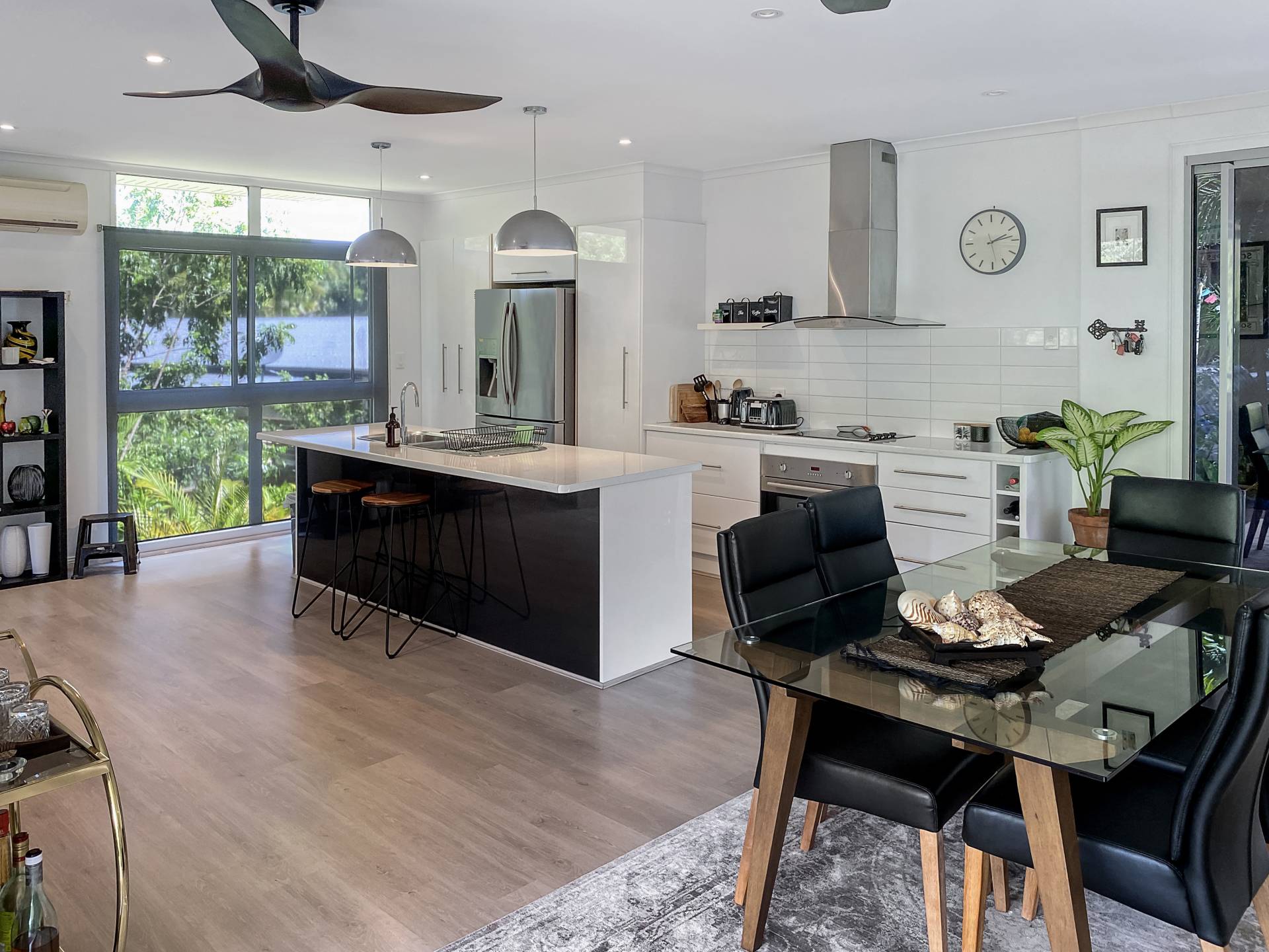 The kitchen is fresh and modern with a large island breakfast bar and is well-located for entertaining being open-plan onto the air-conditioned lounge and dining area.