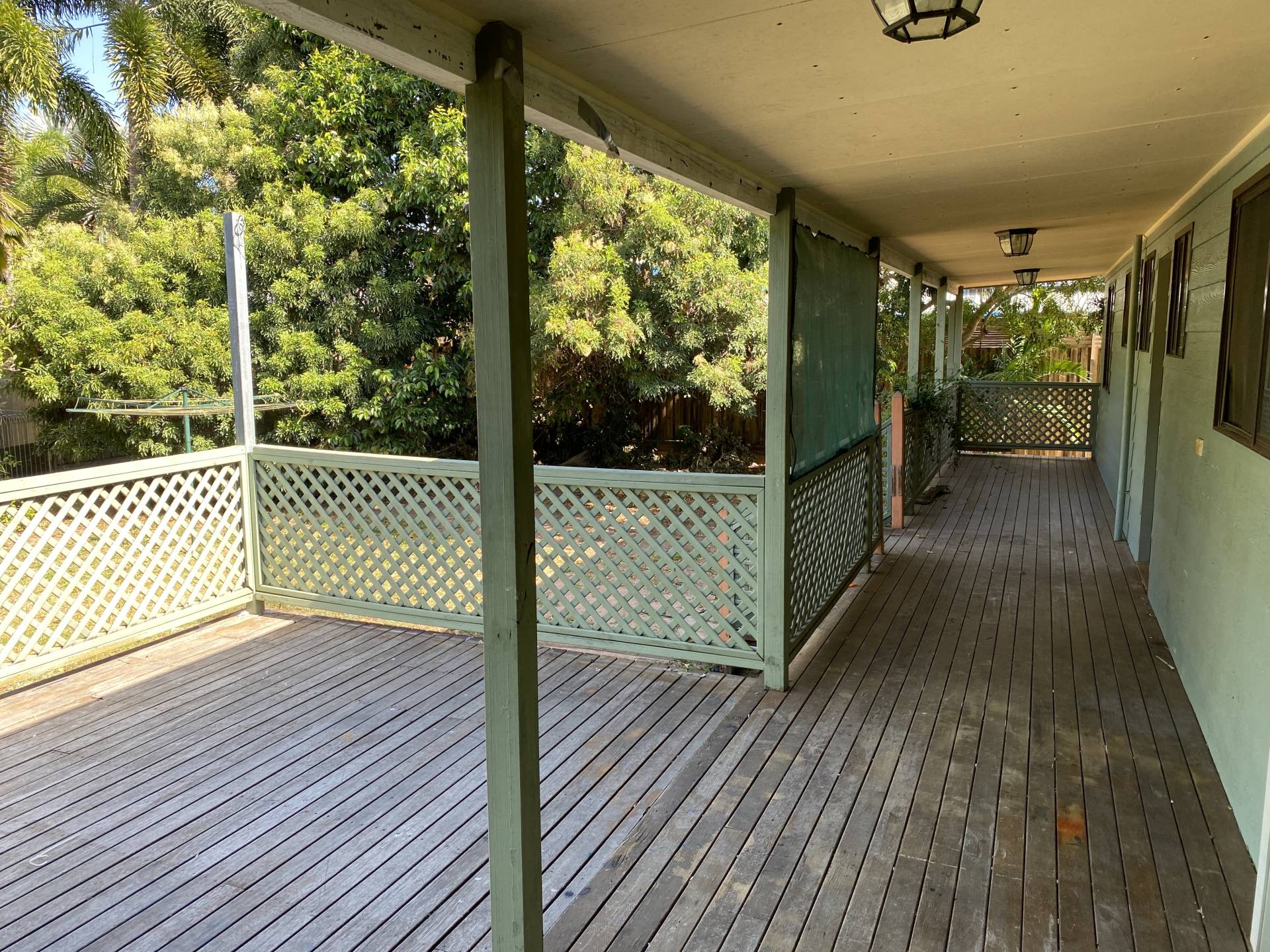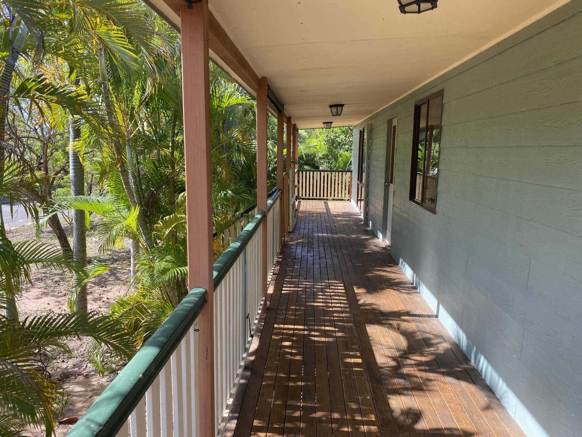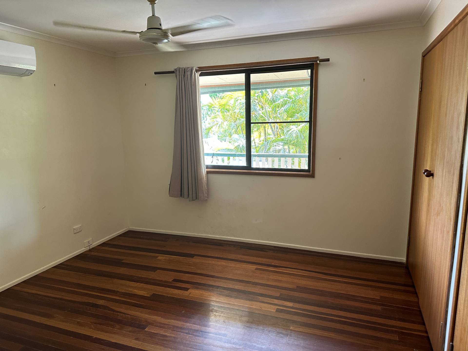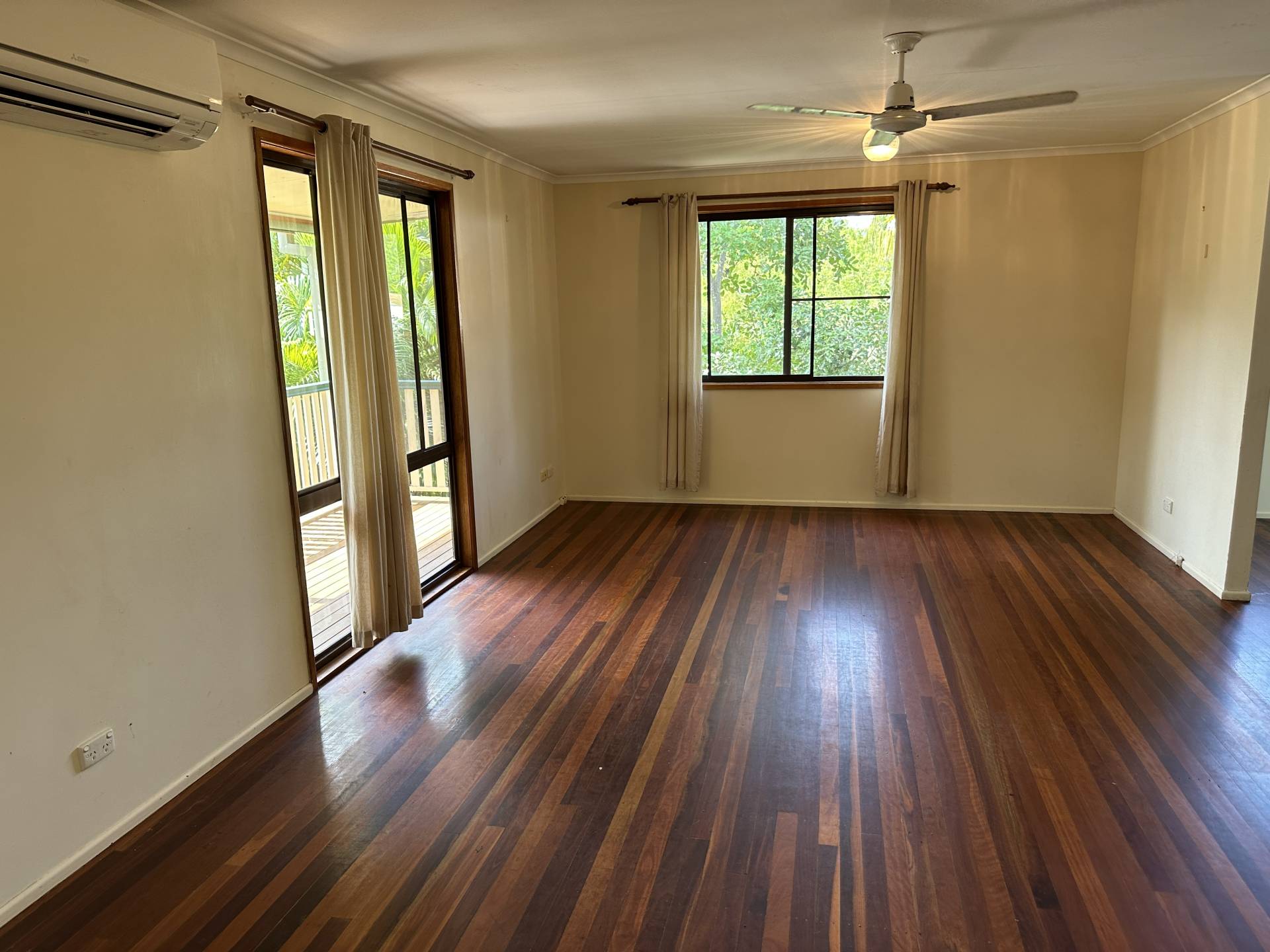 The front is well-screened by tropical palms for privacy and the front door opens into a small entry hall onto the open-plan living area which catches lovely cross-breezes and is light and bright with windows and doors opening on three sides. Polished wood floors are throughout the home, except wet areas which are tiled, giving it a really homely feel.