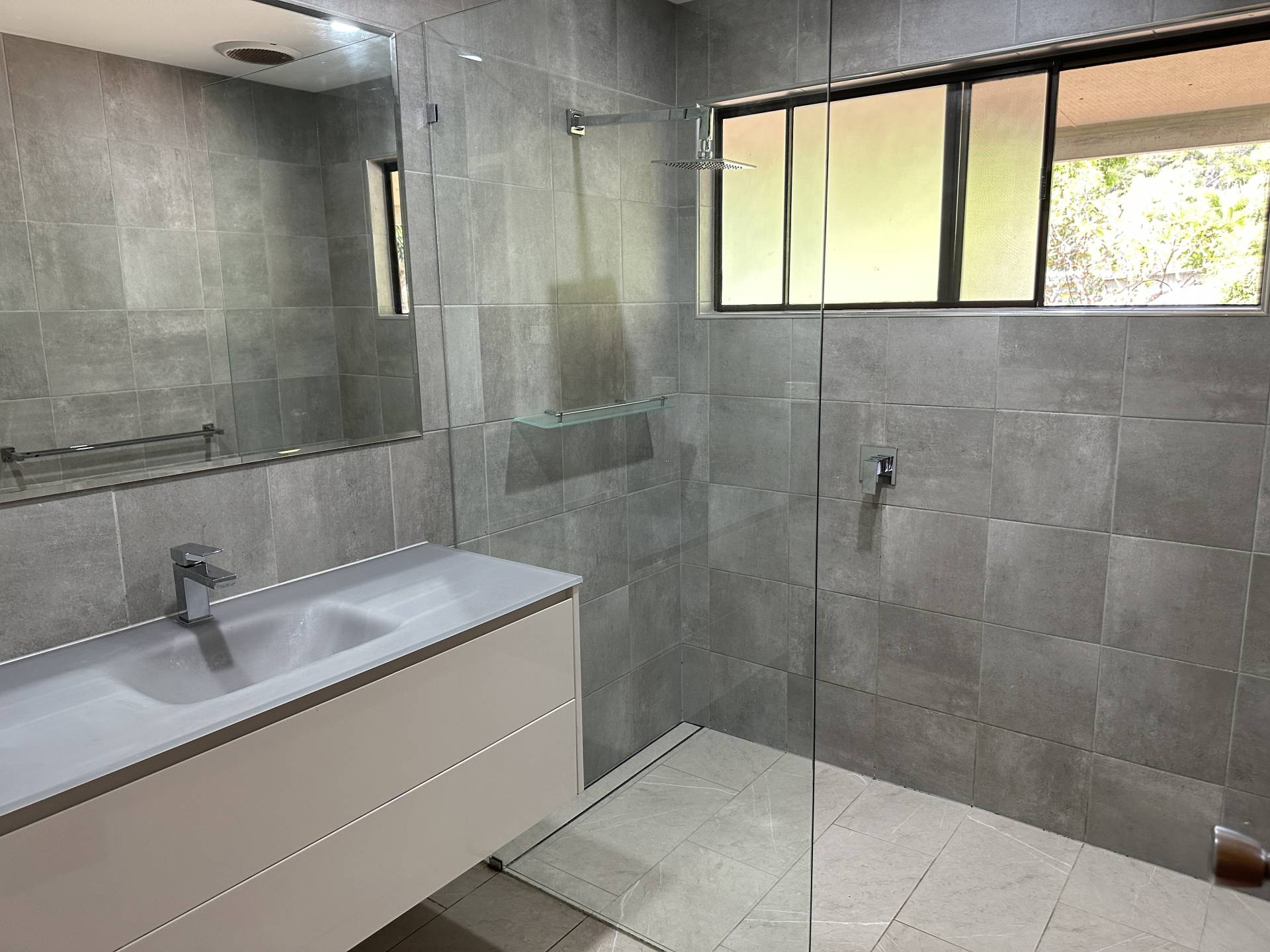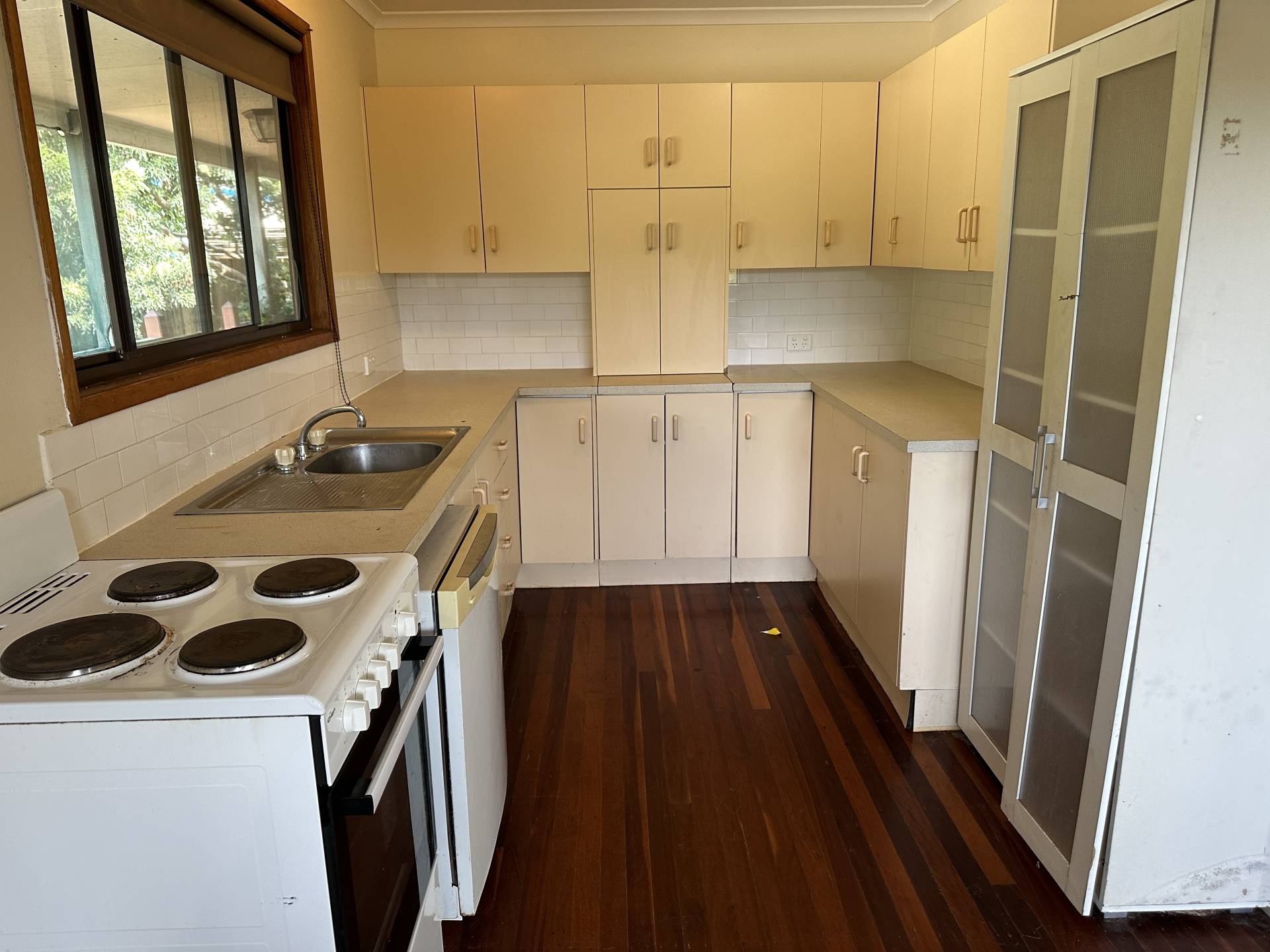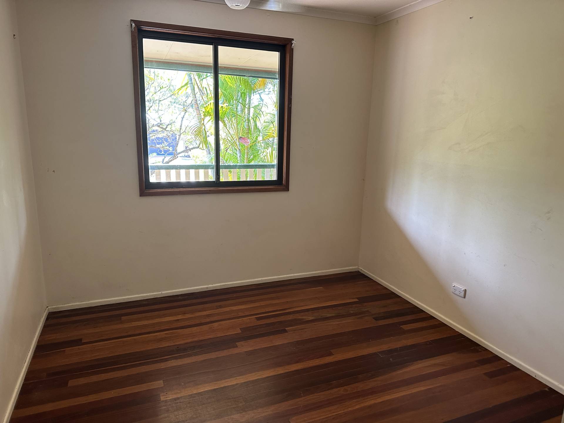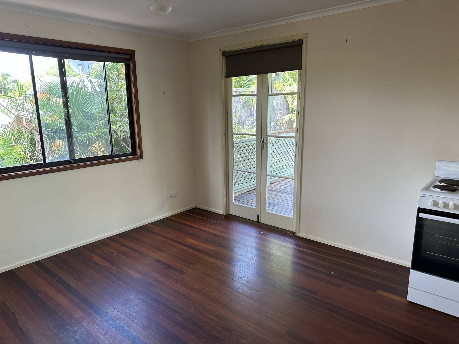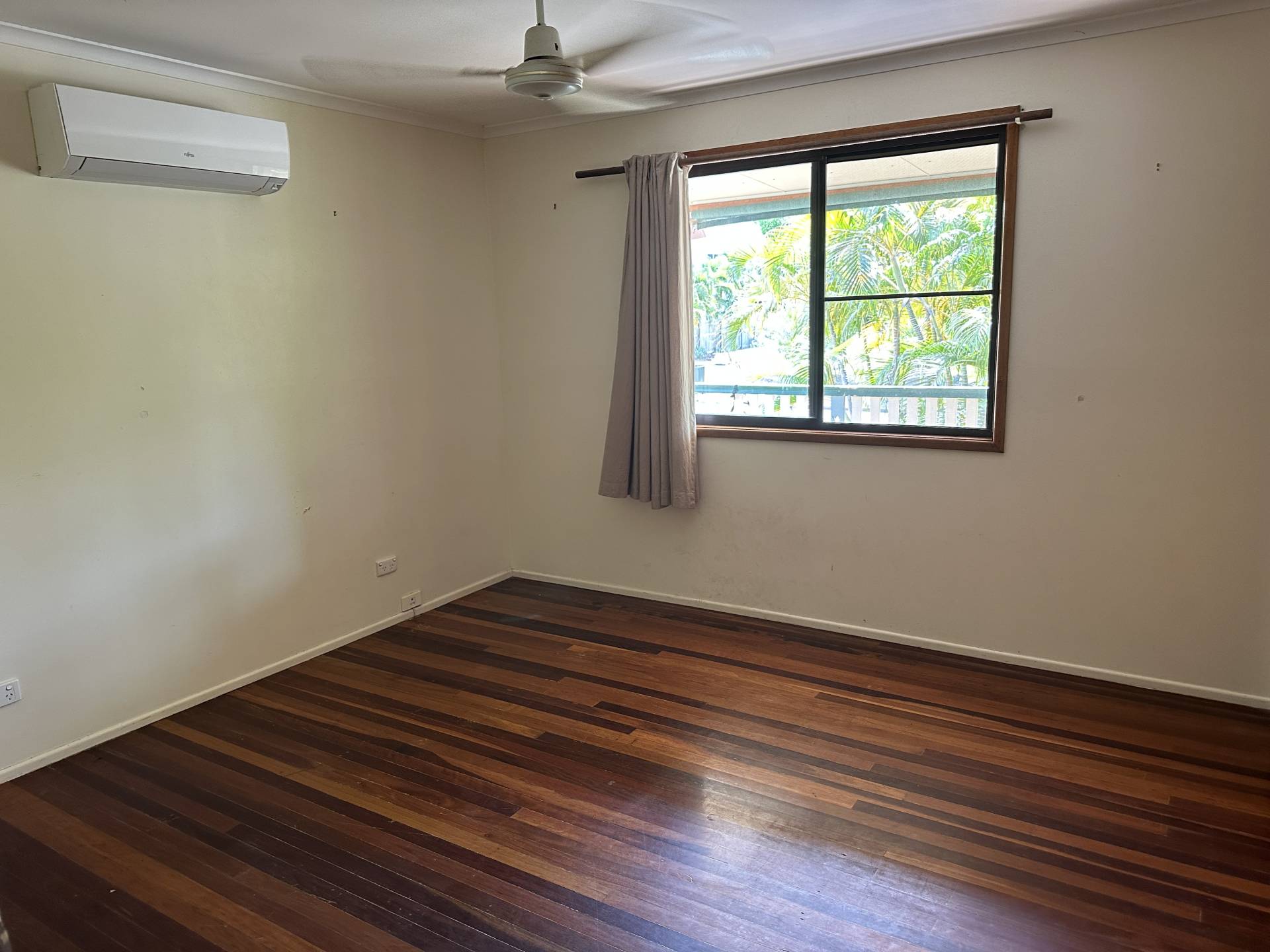 The front is well-screened by tropical palms for privacy and the front door opens into a small entry hall onto the open-plan living area which catches lovely cross-breezes and is light and bright with windows and doors opening on three sides. Polished wood floors are throughout the home, except wet areas which are tiled, giving it a really homely feel.
