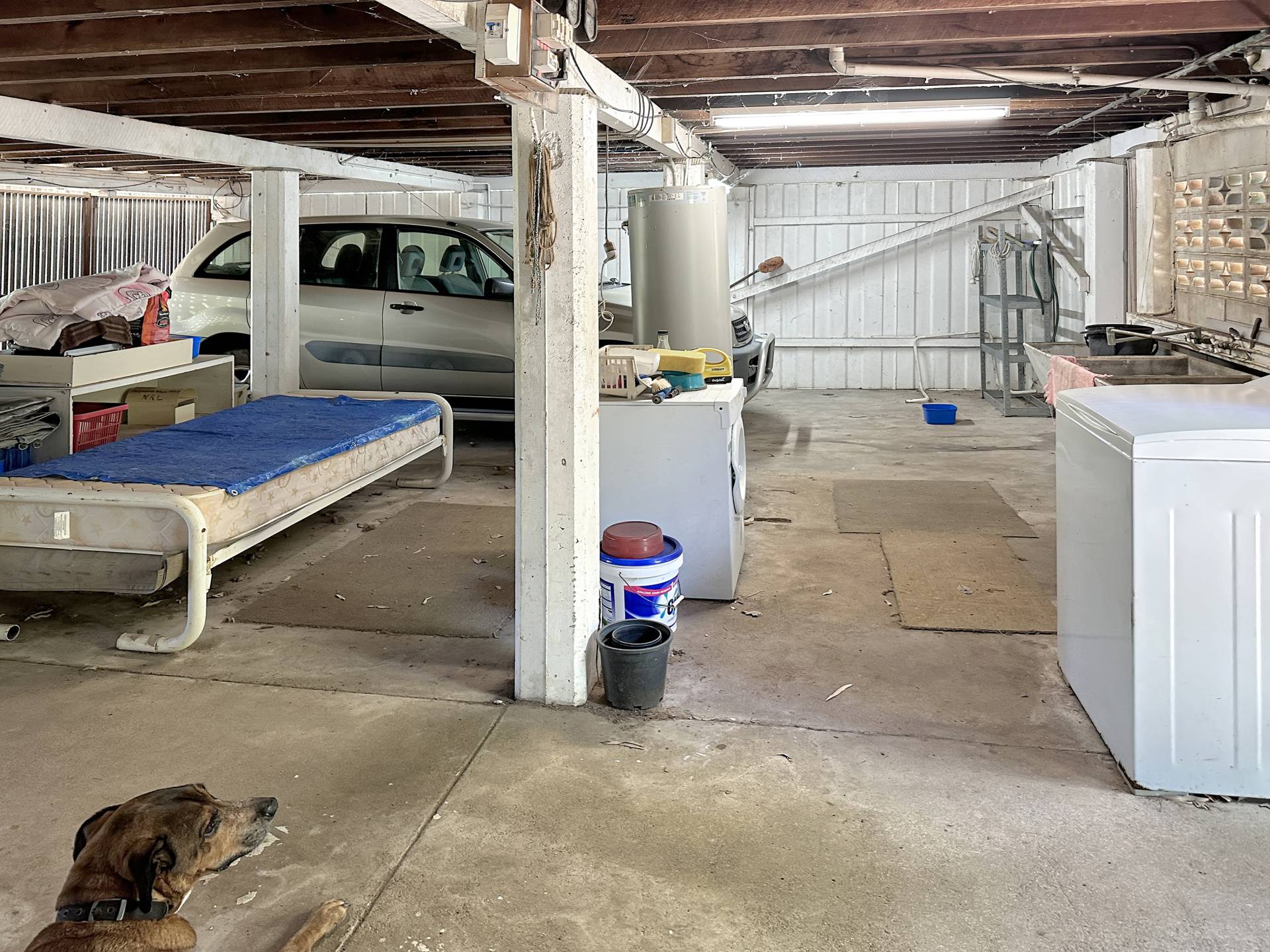 Underneath, the house is enclosed with room for parking, workshop, storage and there's even an old shower and toilet (connected).