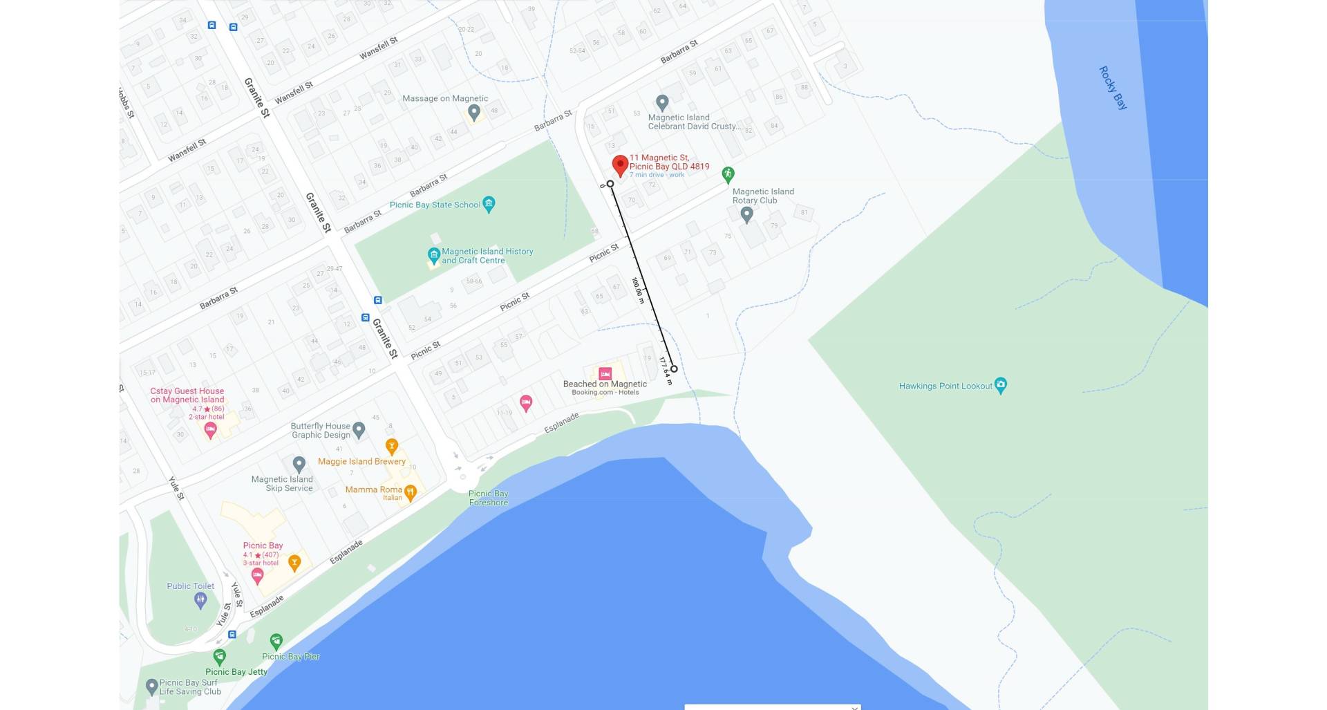 On a quiet street, just one block from the beach, this is an ideal spot to live if you're looking for peace and quiet within an easy walk of the beautiful sandy Picnic Bay beach and jetty, a great spot to catch a few fish. The golf club is just up the road and there's a selection of cafes and bars for some good food and drink.
