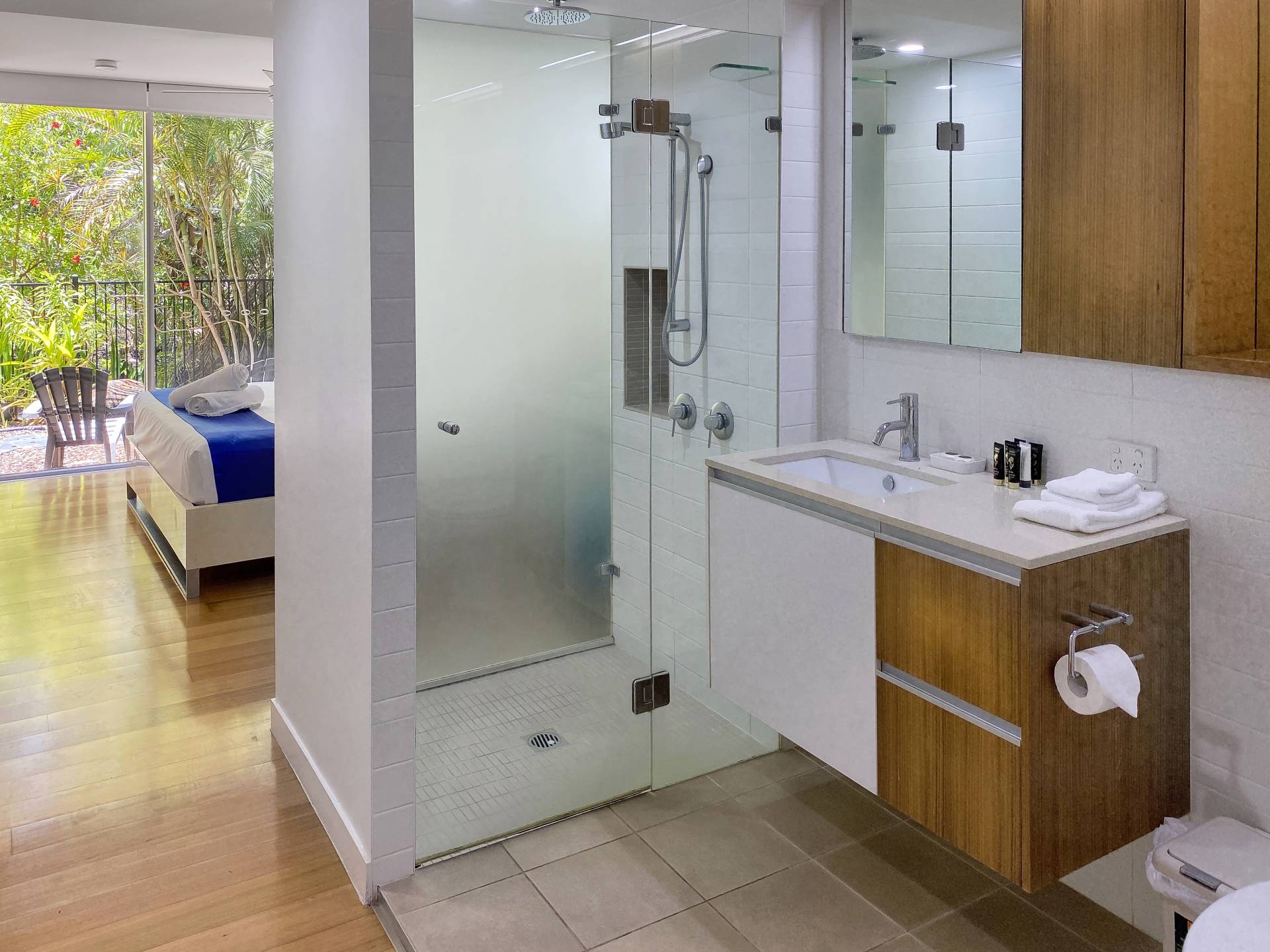 The master bedroom opens onto a peaceful paved patio in the garden, an ideal spot for a morning cuppa. With ensuite bathroom and a generous walk-in-wardrobe, this is a very liveable apartment should you be looking for a new home, or equally ideal as a winter escape. There's no need for a car as everything is just steps from the front door, yet you'll feel a world away from it all in your own private oasis.