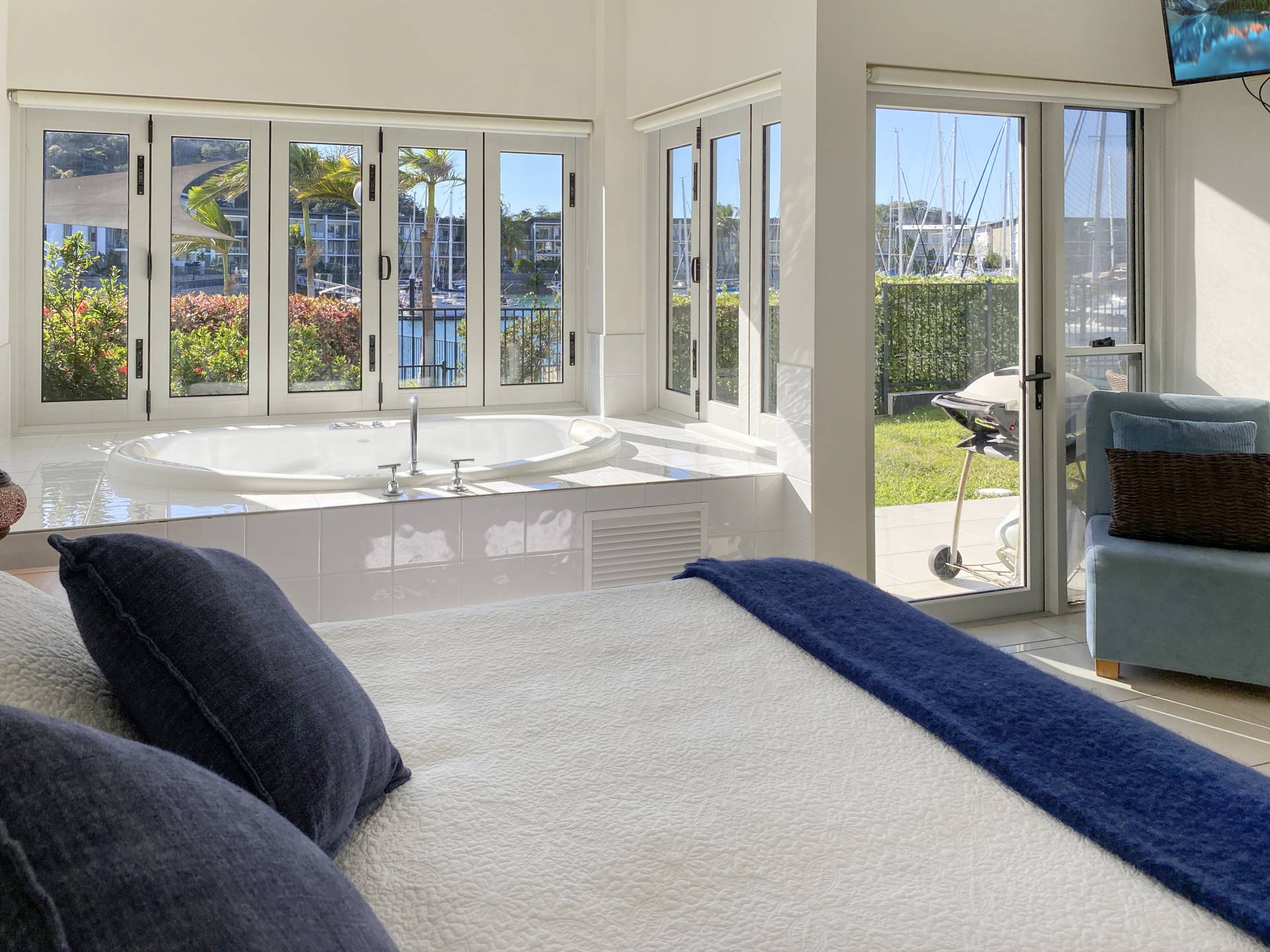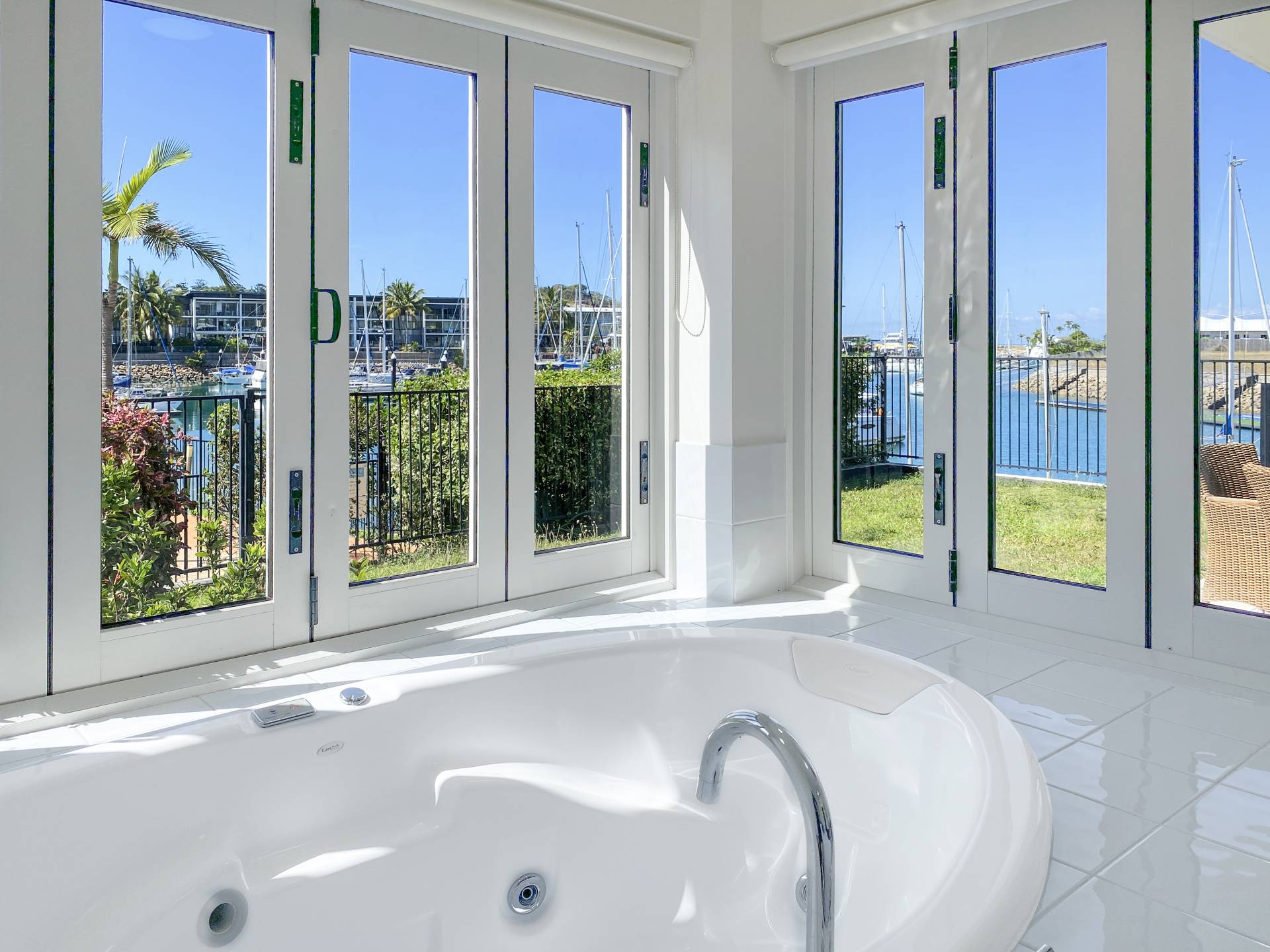 Wake up to beautiful sunrise hues on the sailboats in the marina from the enormous master bedroom with its luxurious spa bath, walk-in-wardrobe and ensuite bathroom.