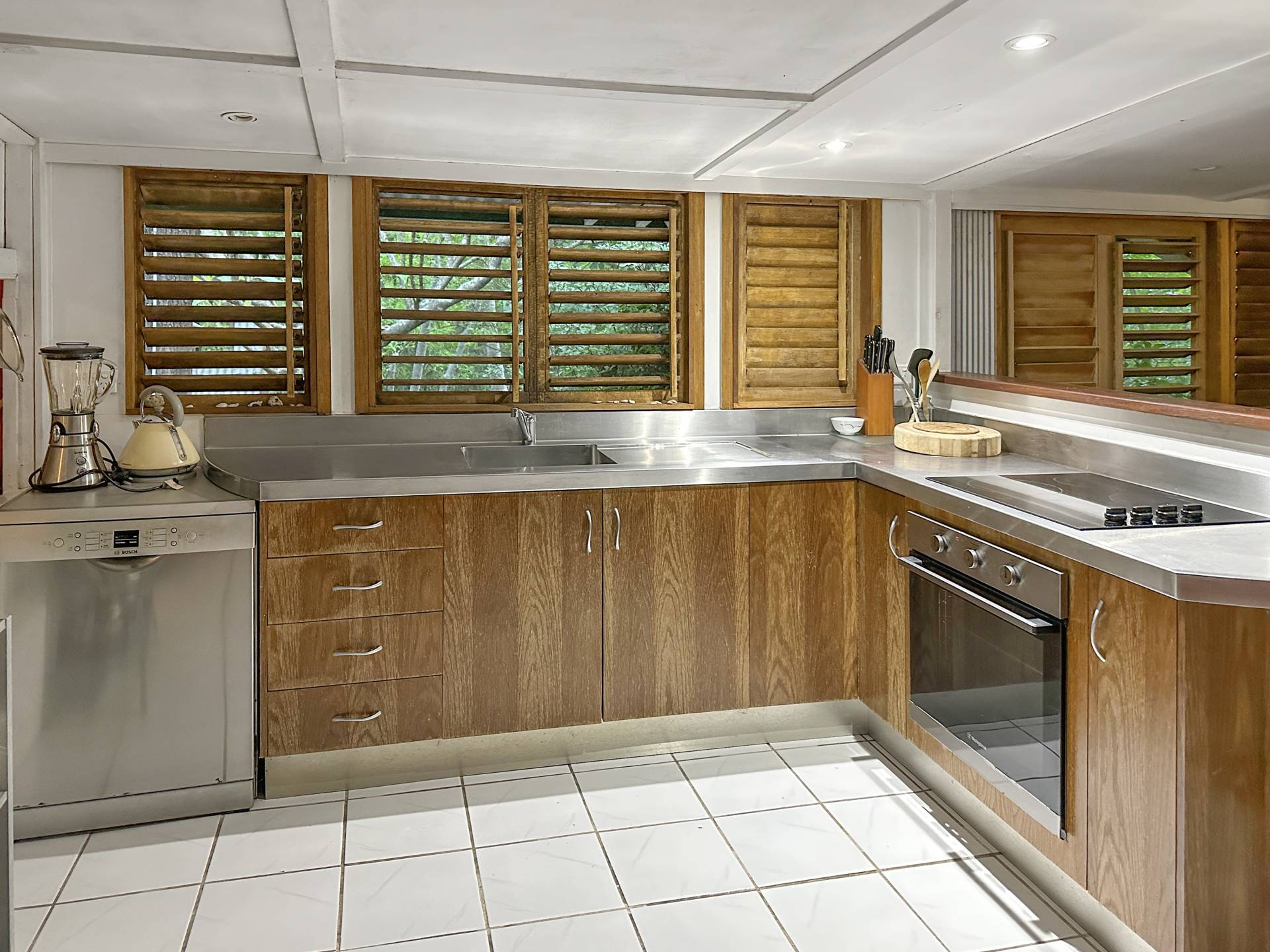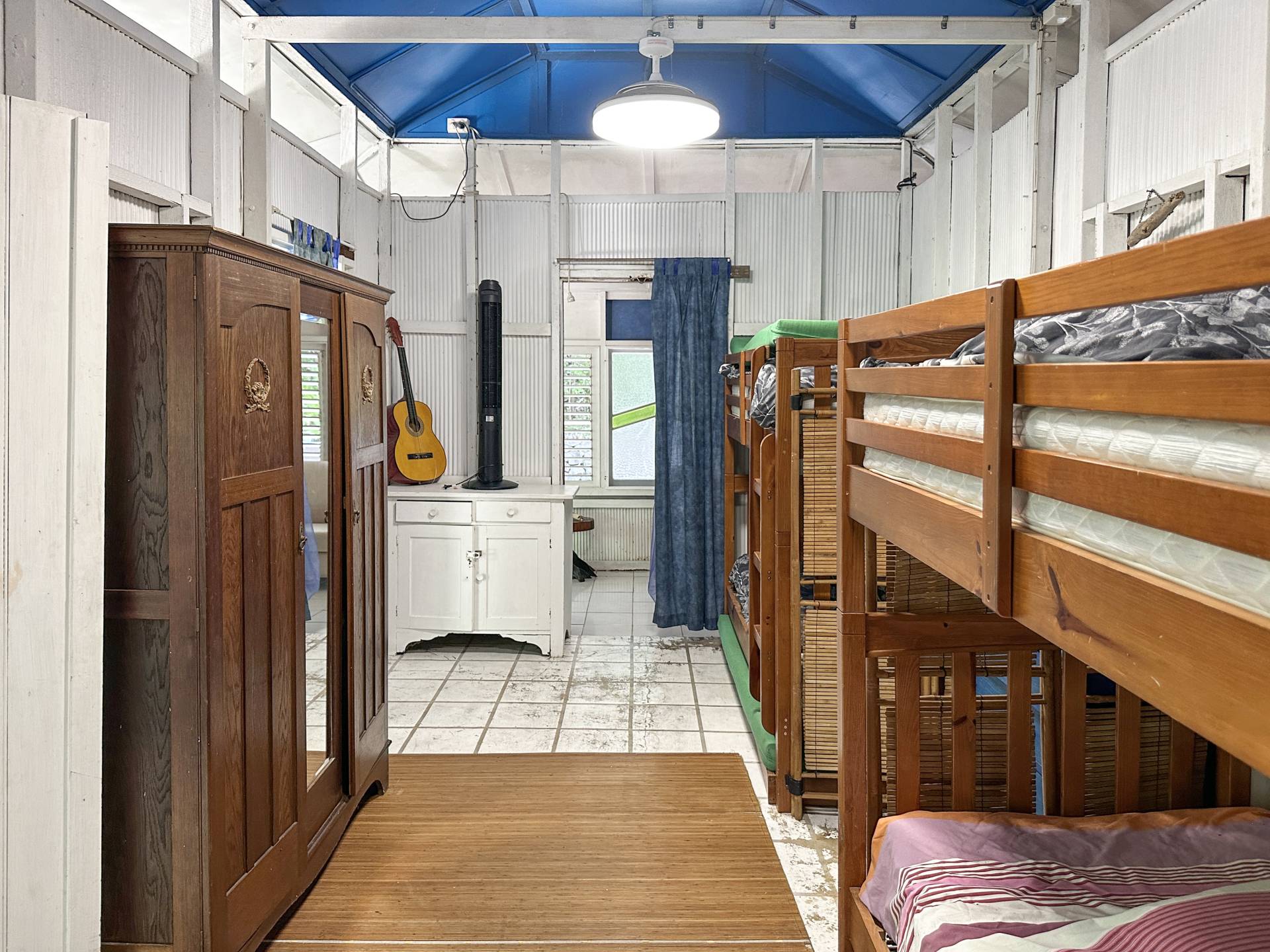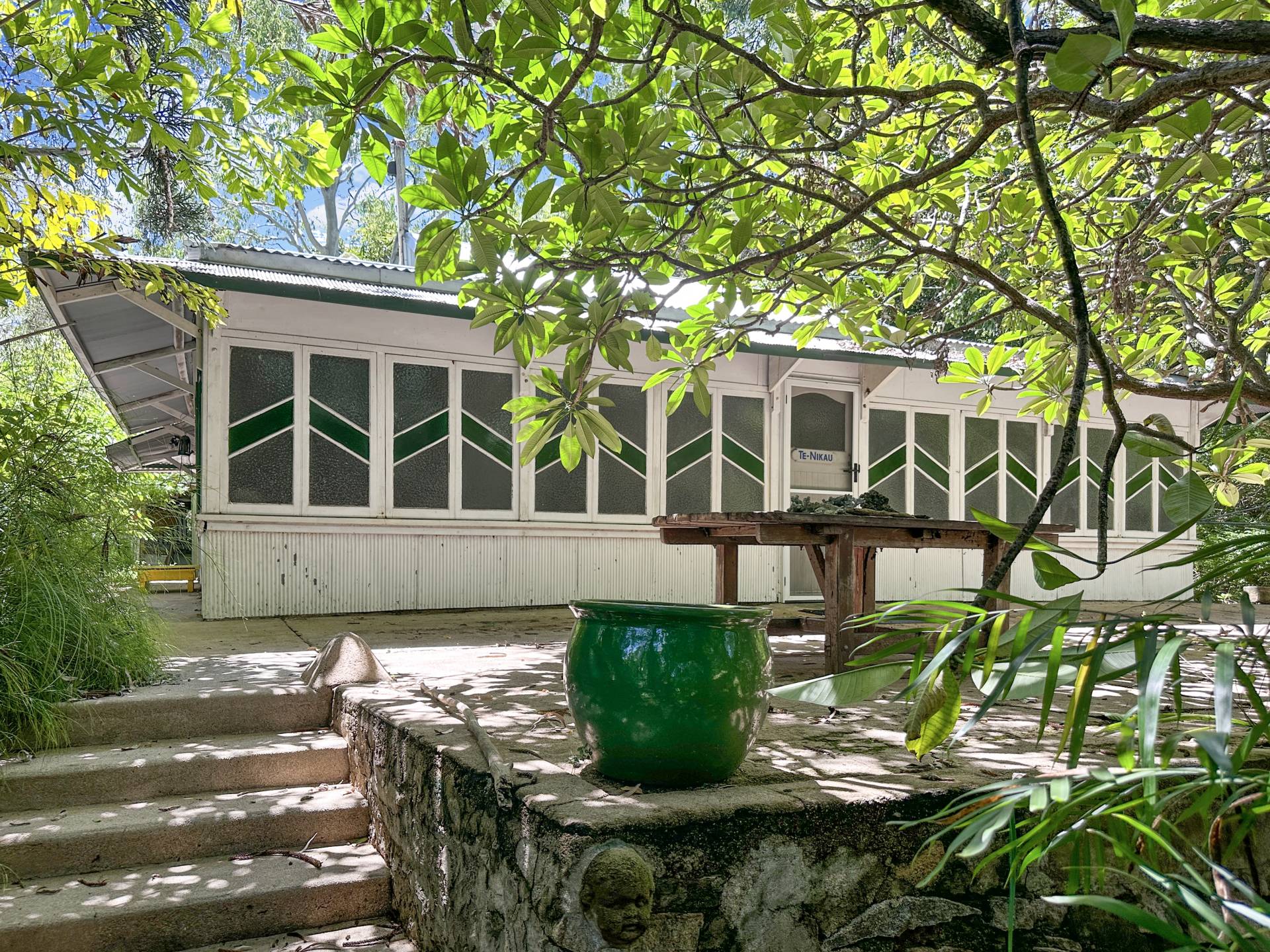 'Te Nikau' is one of the oldest homes on the island, with photos dating it back as far as the 1920s and character features such as timber louvres and colourful casement windows. The owners over the years track back through seafarers, artists and nature lovers, and the home shows this through their various contributions, improvements and additions. Lots of Knick-knacks cover the walls and shelves, creating a “shacky–chic” feel, blended with the creature comforts of a fully equipped stainless steel kitchen, wine fridge, Weber gas BBQ and flyscreens to all doors and windows.