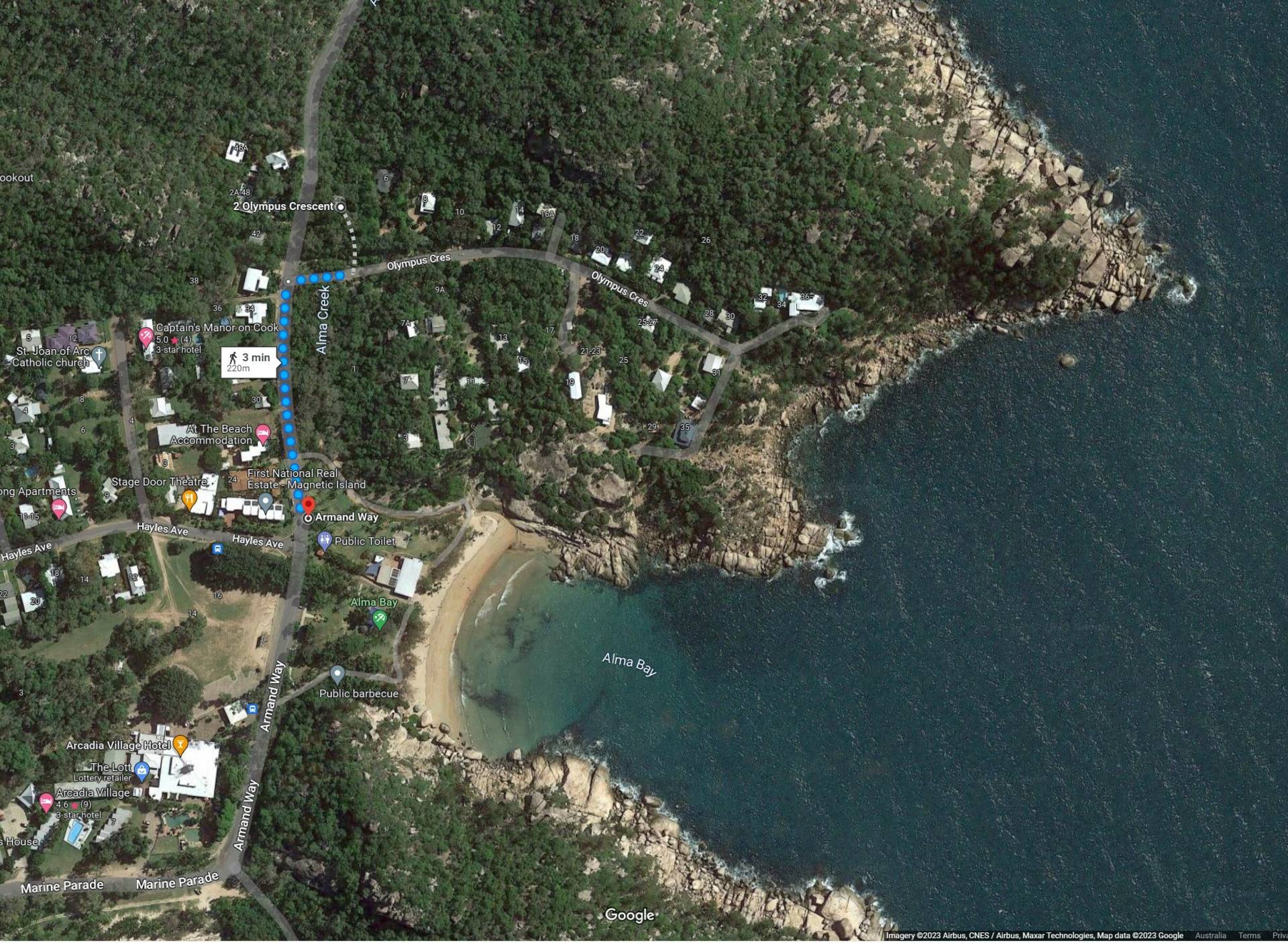 You'll spend most of your time outdoors though - go for a swim or snorkel at beautiful Alma Bay and then come back for a family gathering on the large patio or deck, enjoying the visiting wildlife courtesy of the neighbouring National Park. A seasonal creek flows through the large bush block, with an ornamental bridge on the scenic pathway access from the beach, whilst there is also access to park vehicles near the house just off Armand Way.