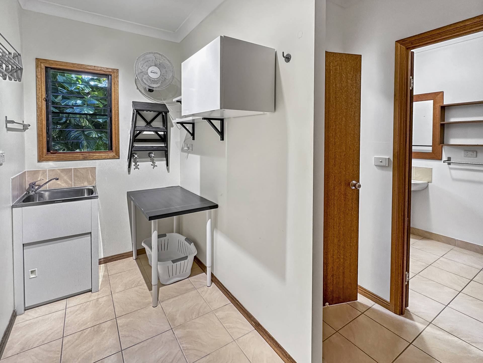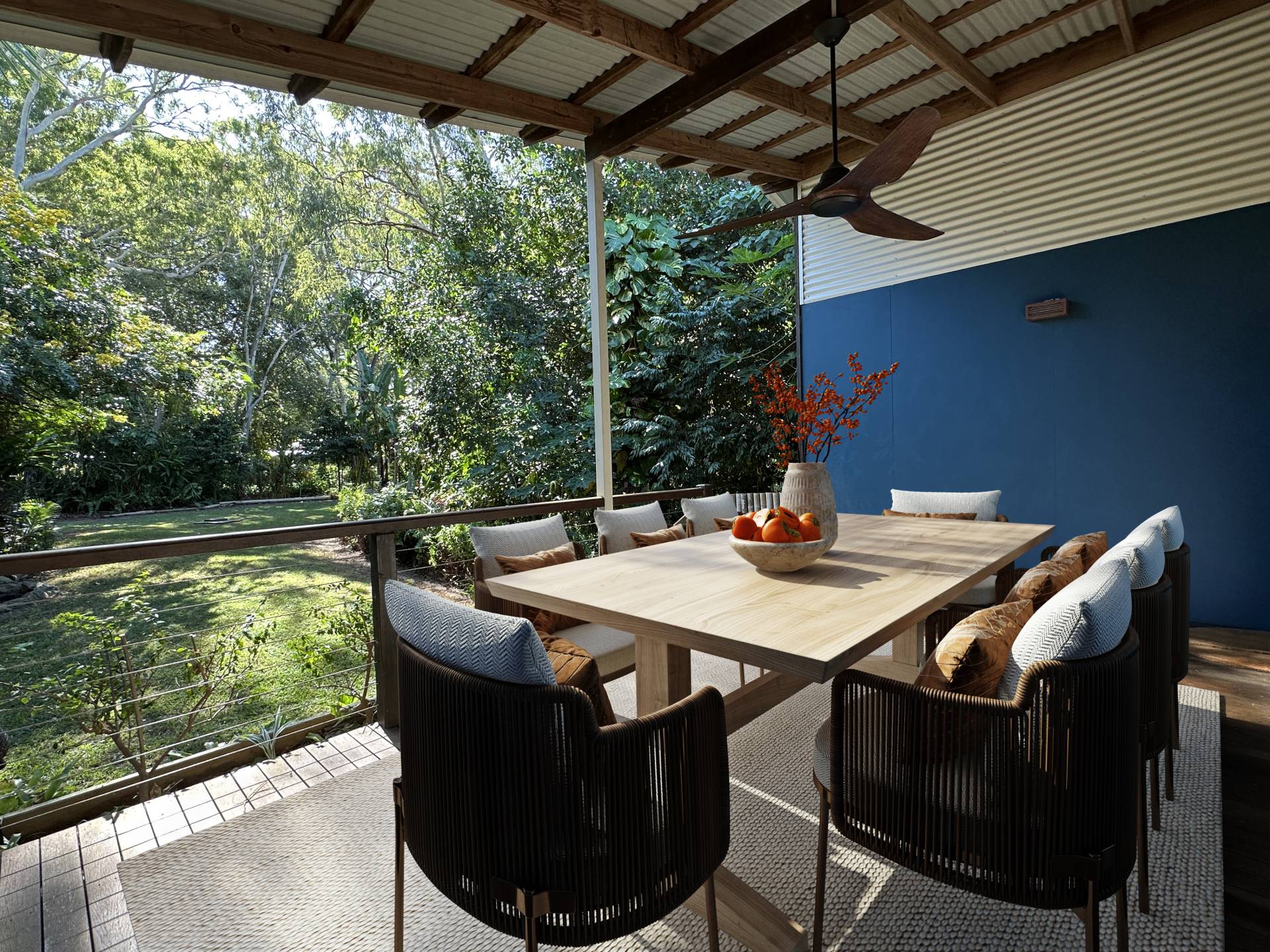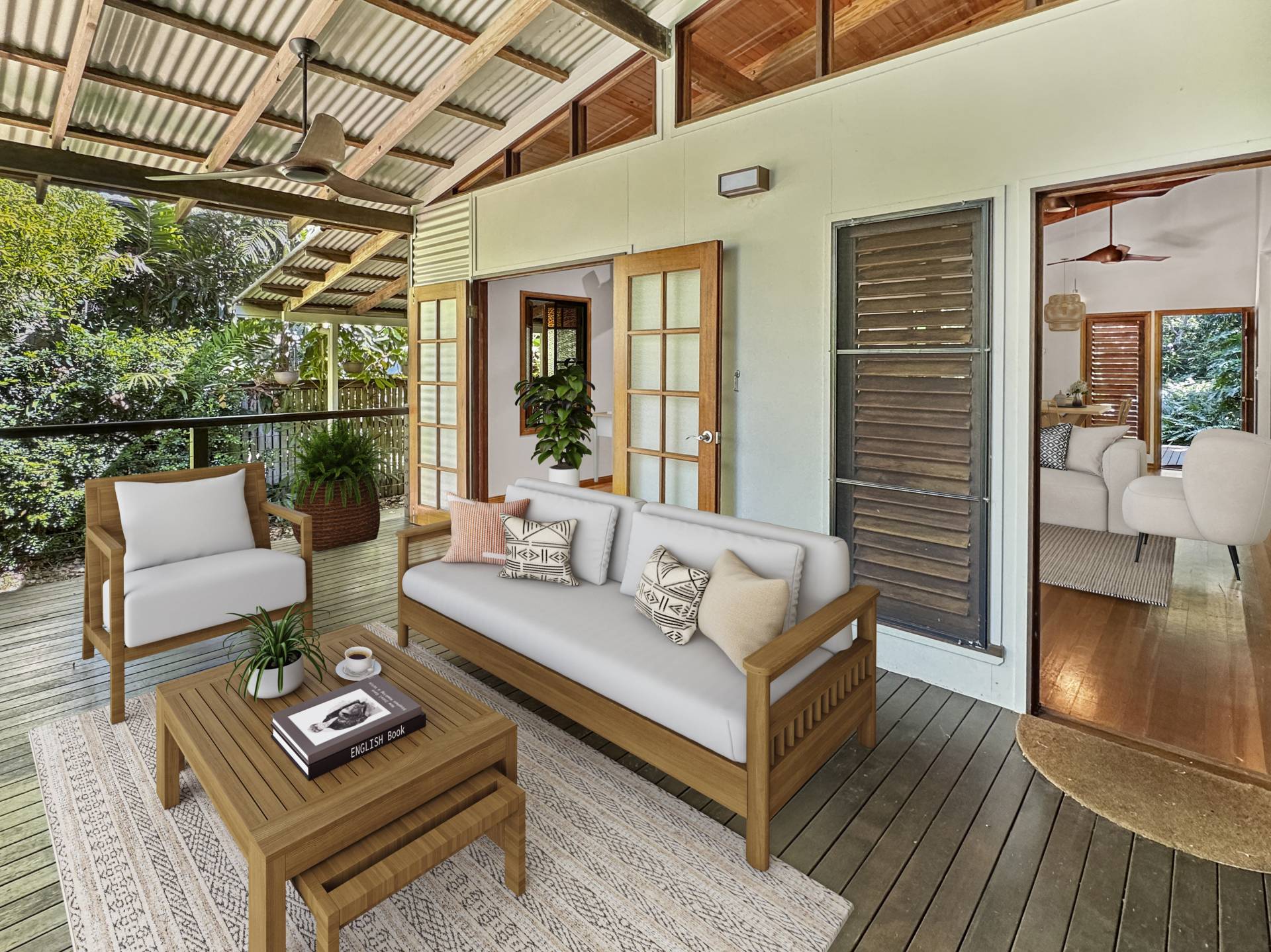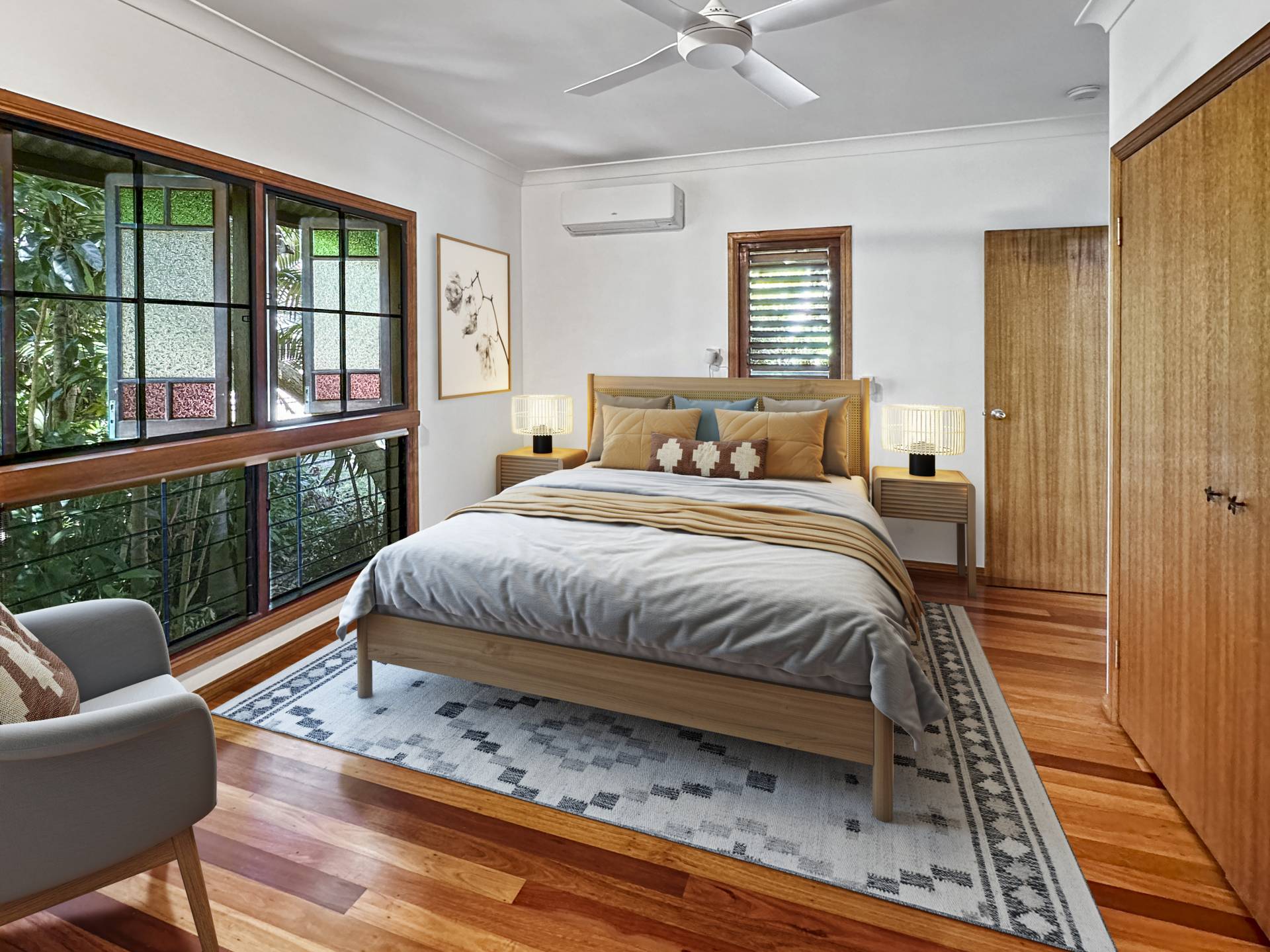 This stylish home is in a great location, just a couple of minutes walk to the marina, shops and restaurants, and tucked away at the end of a very quiet no-through street. Behind is a treed park reserve with gated access along the side boundary and in front is the clinic gardens so you really only have one neighbour. The 1012m2 block is beautifully landscaped at the front of the house and there is plenty of room in the neat back garden for kicking a football around, a shed, pool or whatever floats your boat! The home features covered decks front and back with lovely views in both directions. The open-plan living area has magnificent high timber ceilings and beautiful polished wood floors with beautiful coloured glass casement windows which feature throughout the home. Enjoy the luxurious spa bath in the ensuite of the spacious master bedroom which is also built for tropical living with maximum use of louvres to capture the cooling sea breezes. Serene views of the mature trees in the back of the property can be seen from the second bedroom which has a large built-in-wardrobe with all of the bedrooms sporting split system air-conditioners and ceiling fans. The family bathroom is conveniently located next to the laundry with a shower and separate WC and plenty of cupboard space for linen or personal effects. There's also a concreted store area under the house, ideal for shed/workshop use.  A beautiful home and a must to inspect - call today to arrange an inspection.