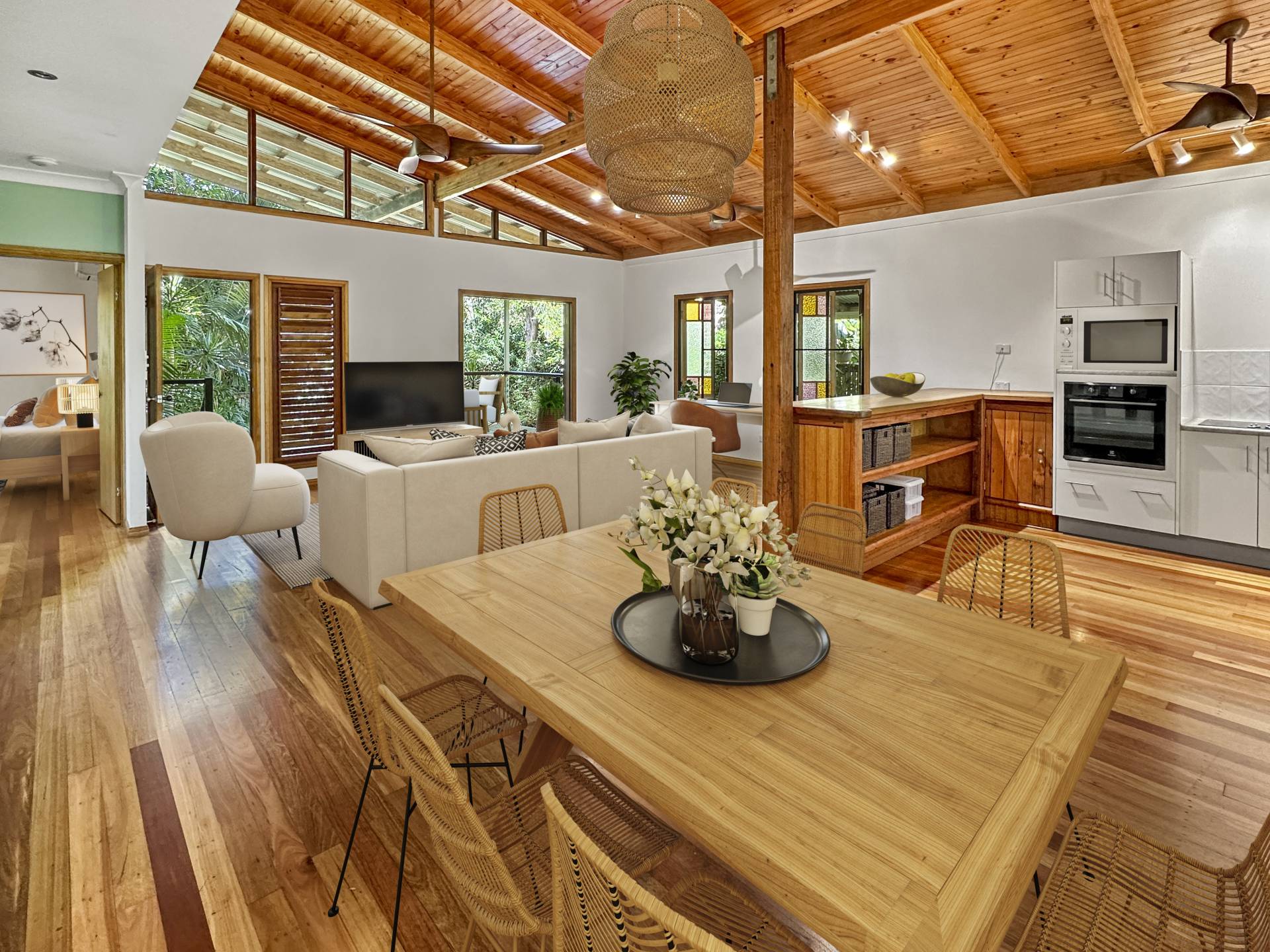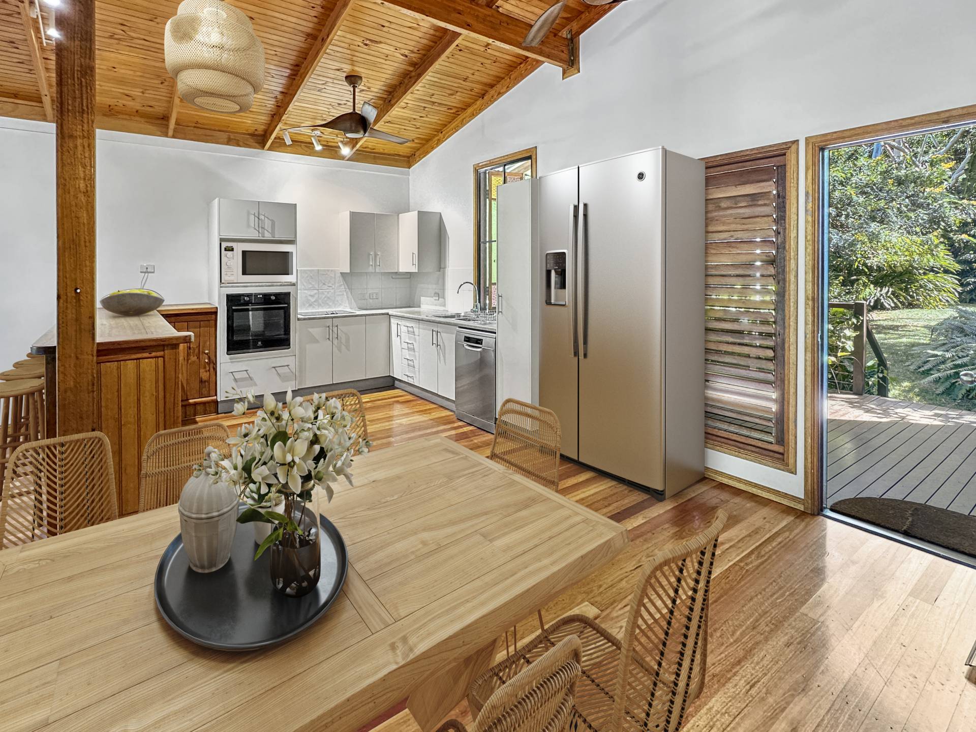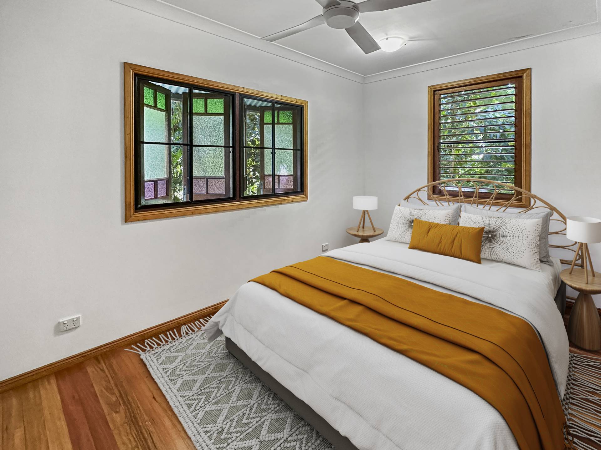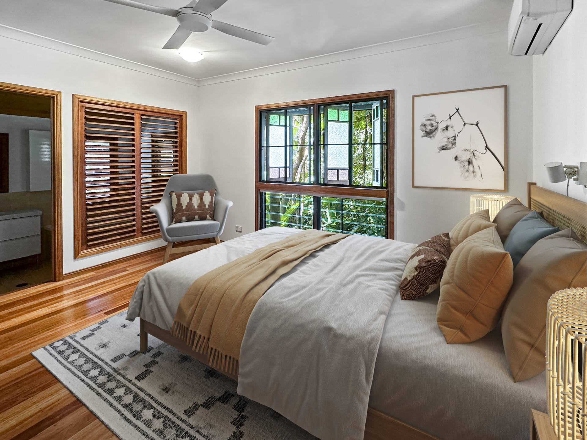 This stylish home is in a great location, just a couple of minutes walk to the marina, shops and restaurants, and tucked away at the end of a very quiet no-through street. Behind is a treed park reserve with gated access along the side boundary and in front is the clinic gardens so you really only have one neighbour. The 1012m2 block is beautifully landscaped at the front of the house and there is plenty of room in the neat back garden for kicking a football around, a shed, pool or whatever floats your boat! The home features covered decks front and back with lovely views in both directions. The open-plan living area has magnificent high timber ceilings and beautiful polished wood floors with beautiful coloured glass casement windows which feature throughout the home. Enjoy the luxurious spa bath in the ensuite of the spacious master bedroom which is also built for tropical living with maximum use of louvres to capture the cooling sea breezes. Serene views of the mature trees in the back of the property can be seen from the second bedroom which has a large built-in-wardrobe with all of the bedrooms sporting split system air-conditioners and ceiling fans. The family bathroom is conveniently located next to the laundry with a shower and separate WC and plenty of cupboard space for linen or personal effects. There's also a concreted store area under the house, ideal for shed/workshop use.  A beautiful home and a must to inspect - call today to arrange an inspection.