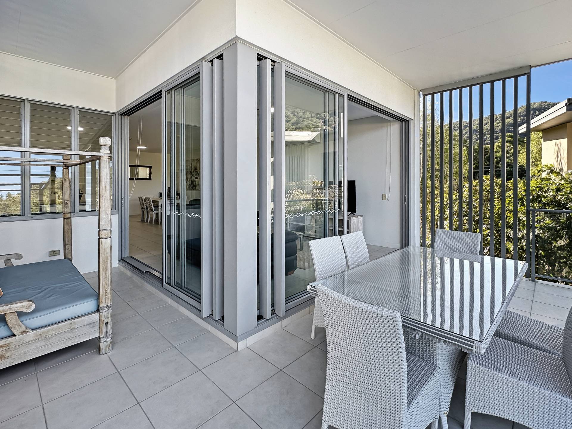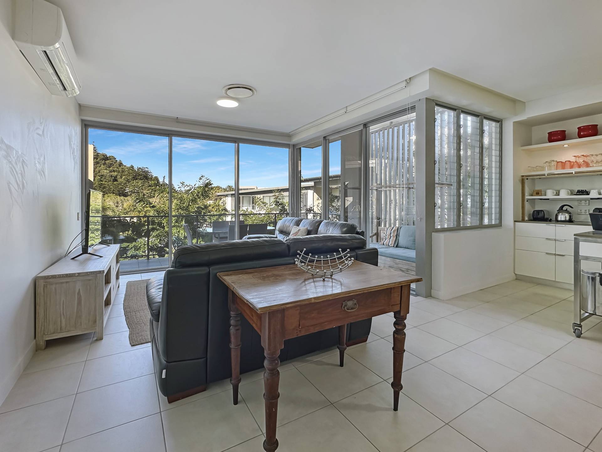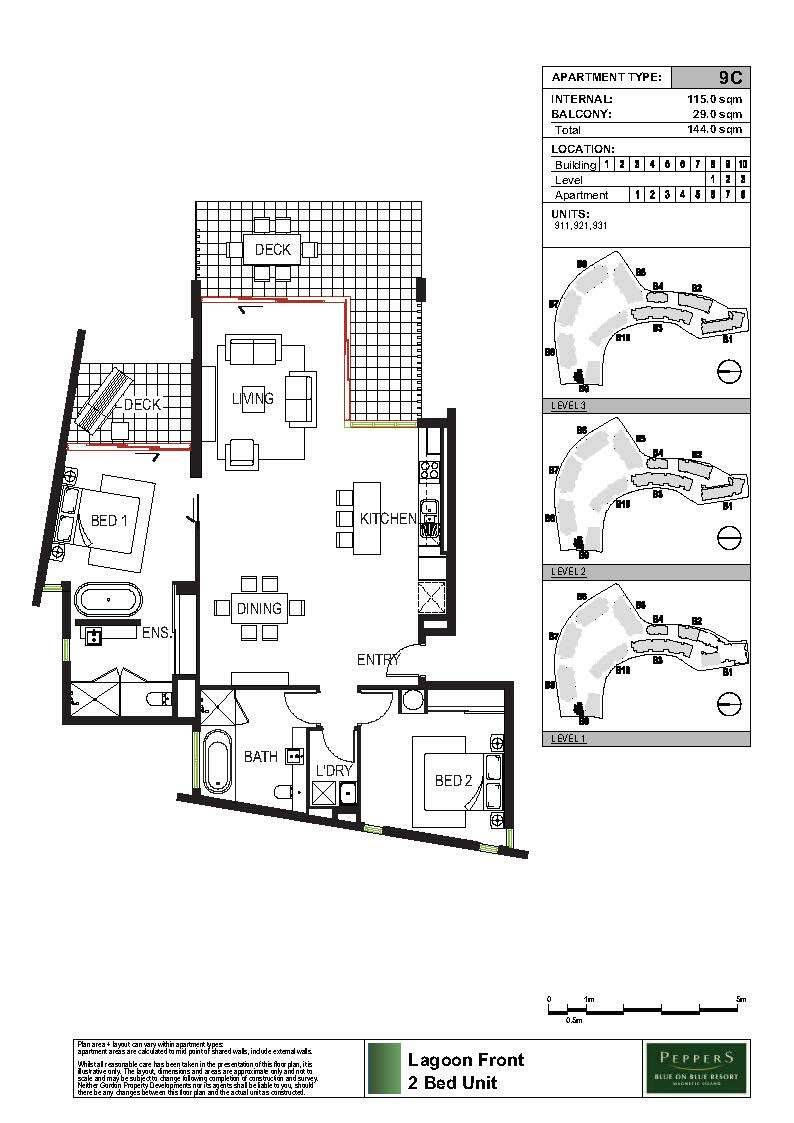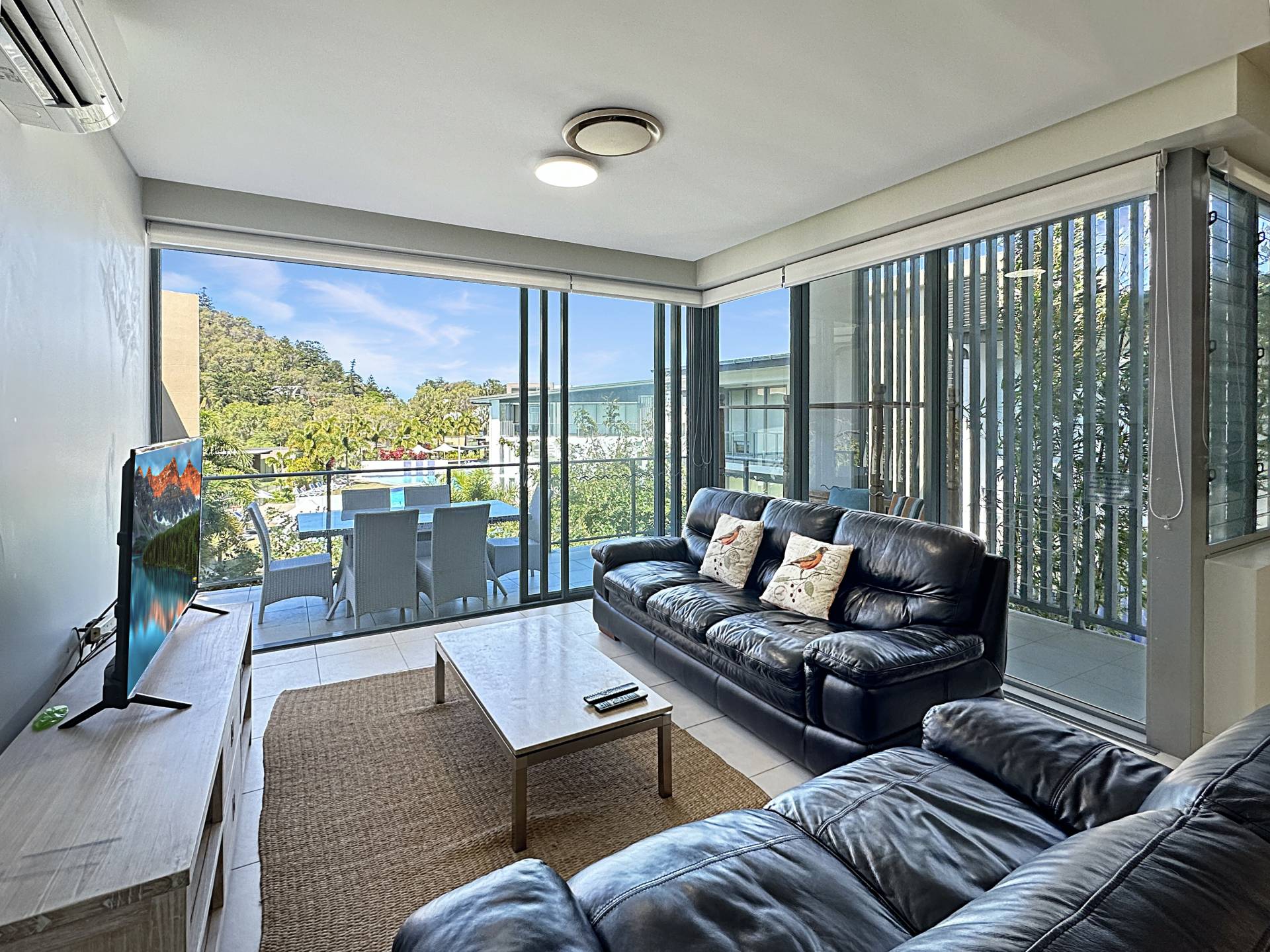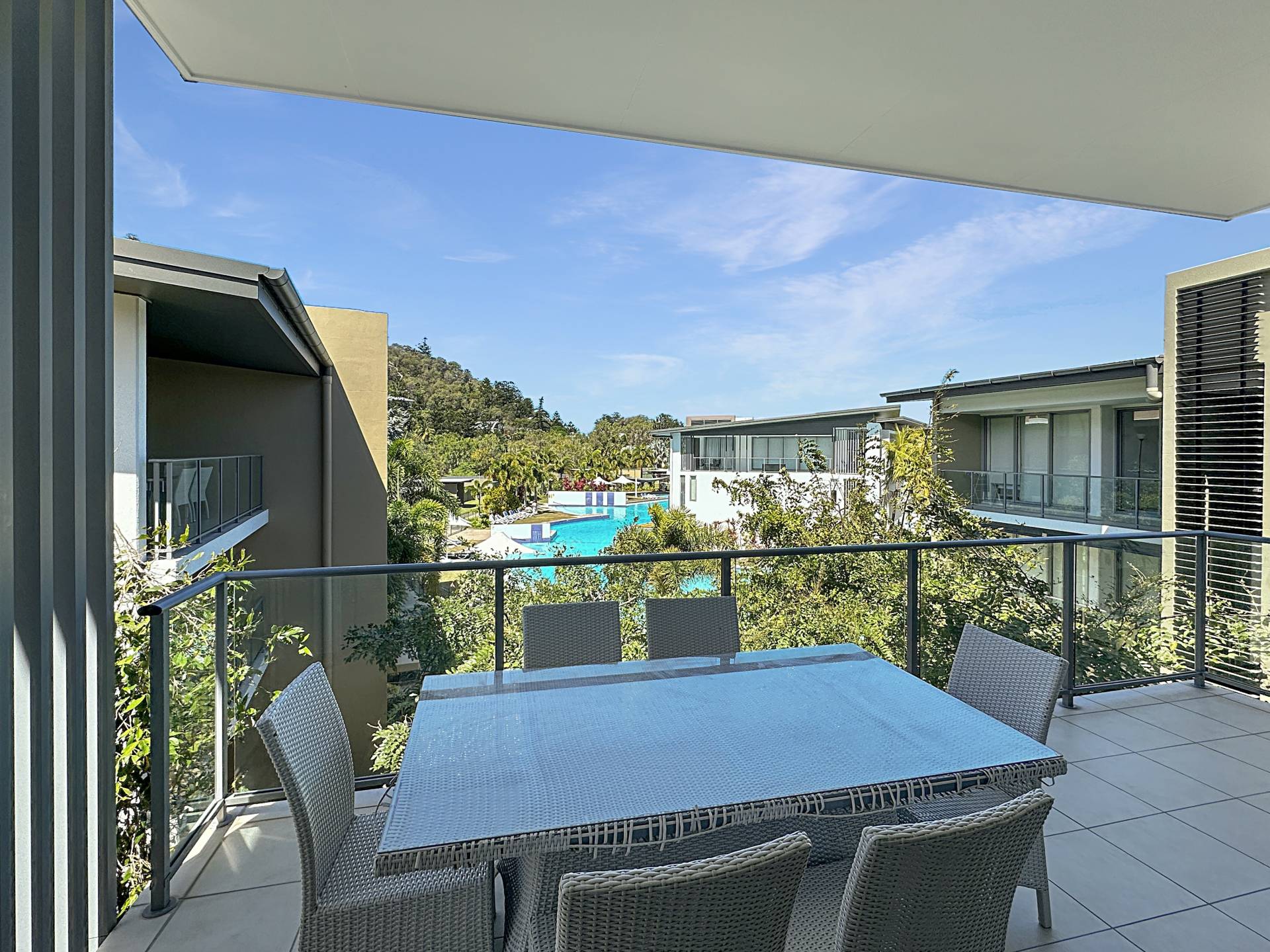 This top floor apartment is significantly larger than other other two bedroom apartments in the 'Blue on Blue' complex at 144m2 - almost the size of a three bedroom, and receiving returns equivalent to a three bedroom apartment in the Peppers letting pool (details available on request). Tucked away amongst gardens, it is peaceful and private but just steps from the magnificent lagoon pool. The covered L-shaped terrace catches a little morning sun but avoids the hot westerly afternoon sun so it is pleasant any time of year. The huge open-plan living area catches the breeze beautifully although the apartment is fully air-conditioned if that is what you prefer.