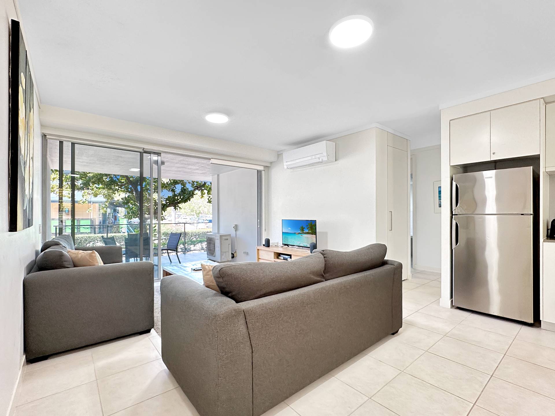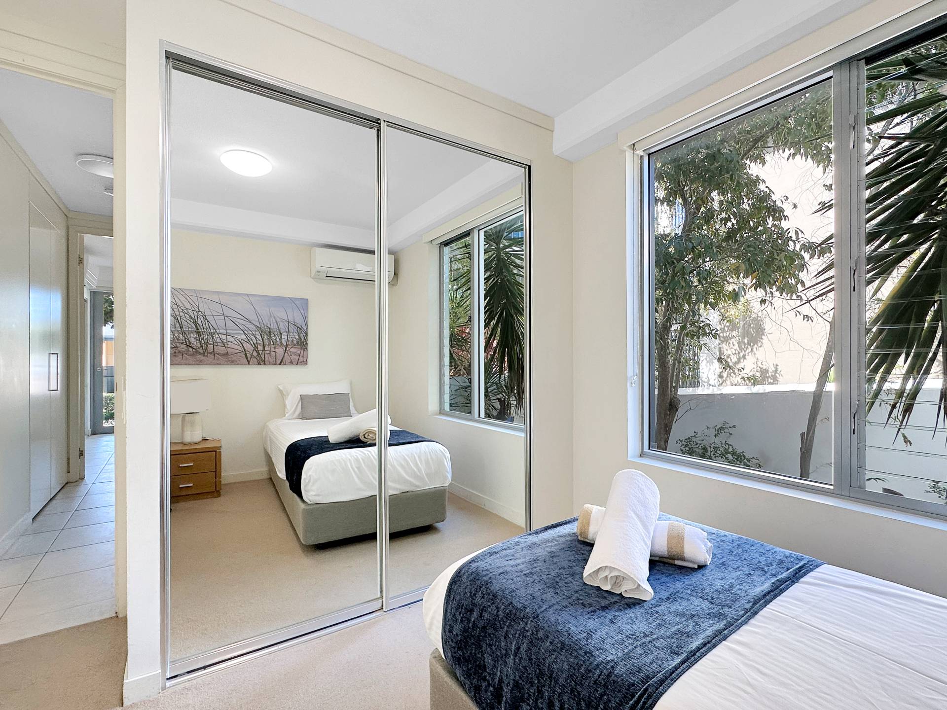 * Both bedrooms feature built-in-wardrobes and are air-conditioned, as is the living area.