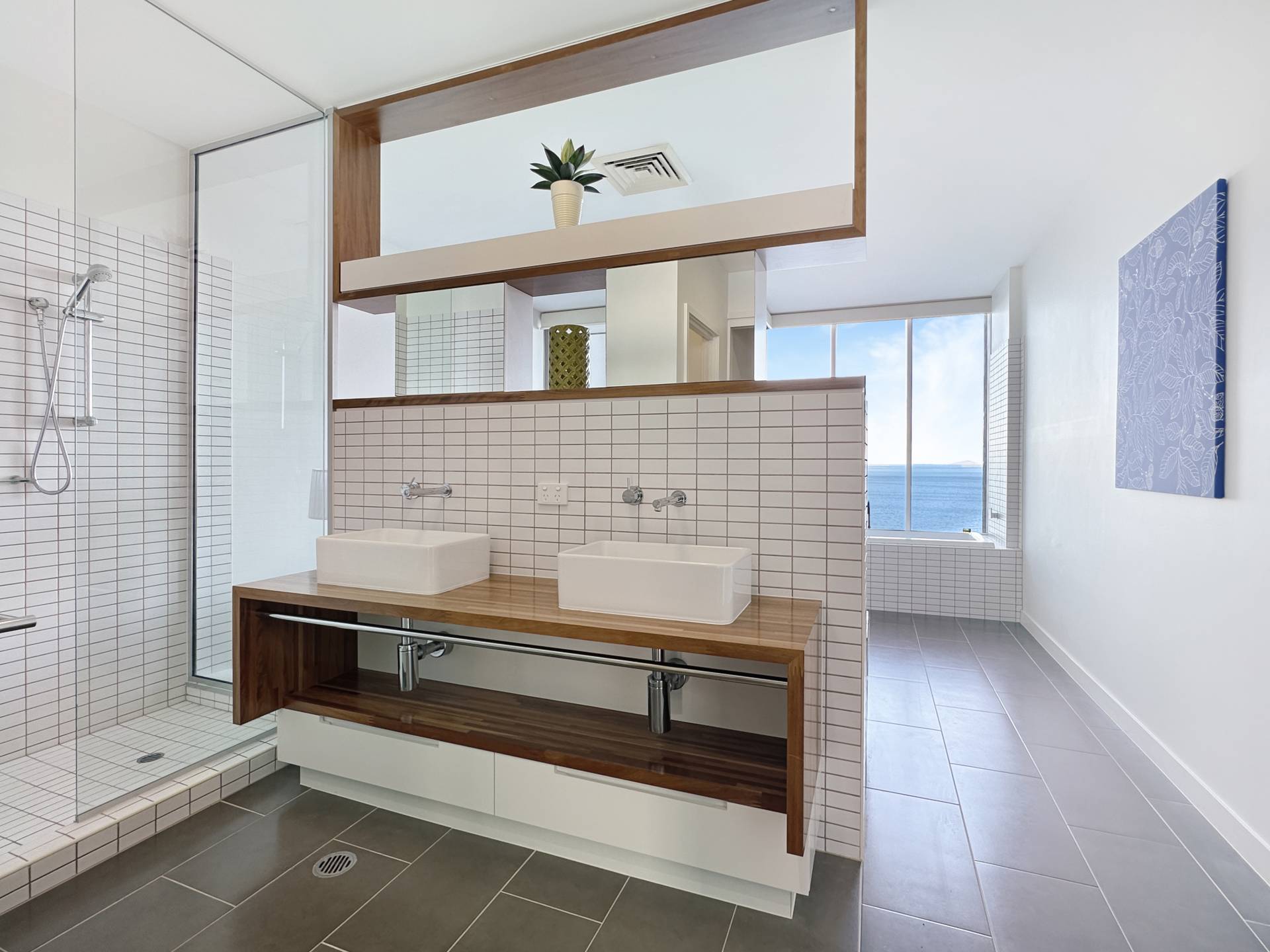 Just a few steps from the ferry terminal, there is secure access to the complex and undercover parking. Lift access brings you to the front door and upon entering the apartment your eyes are instantly drawn to the azure blue of the ocean through the floor-to-ceiling glass doors which open up to offer seamless indoor-outdoor living.