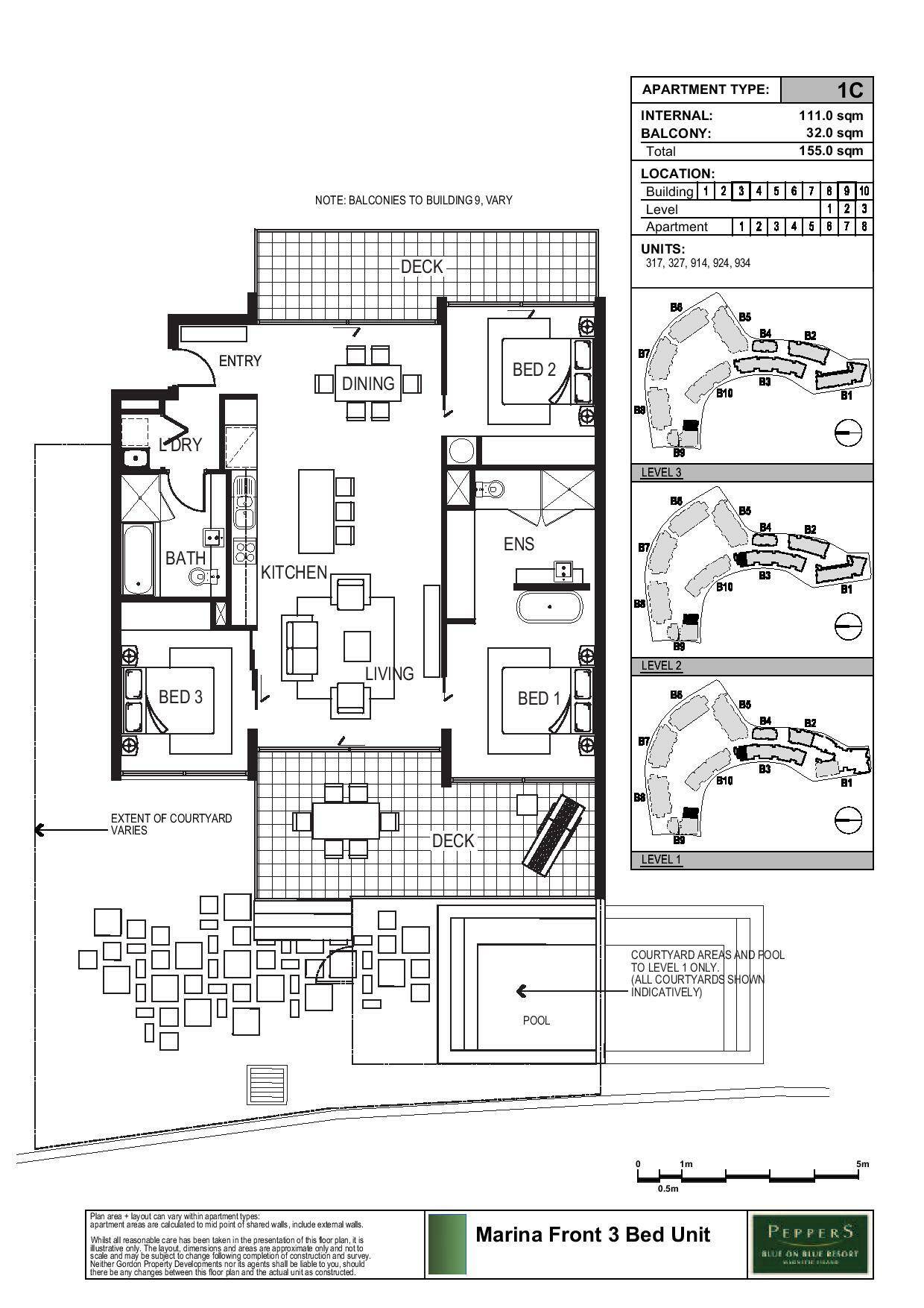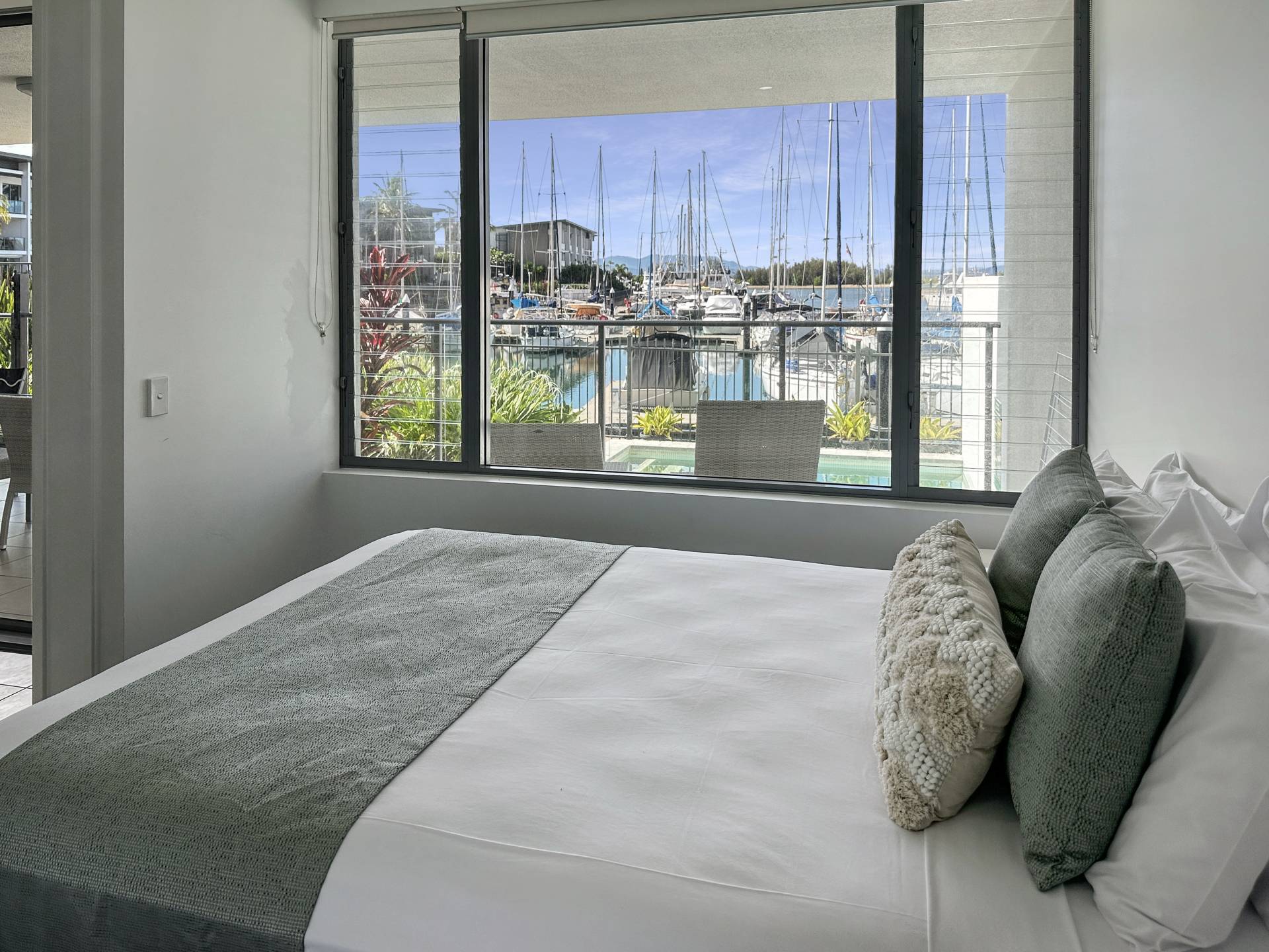 The second bedroom also looks onto the marina, whilst the third bedroom opens onto the back patio, with built-in-wardrobes to all.