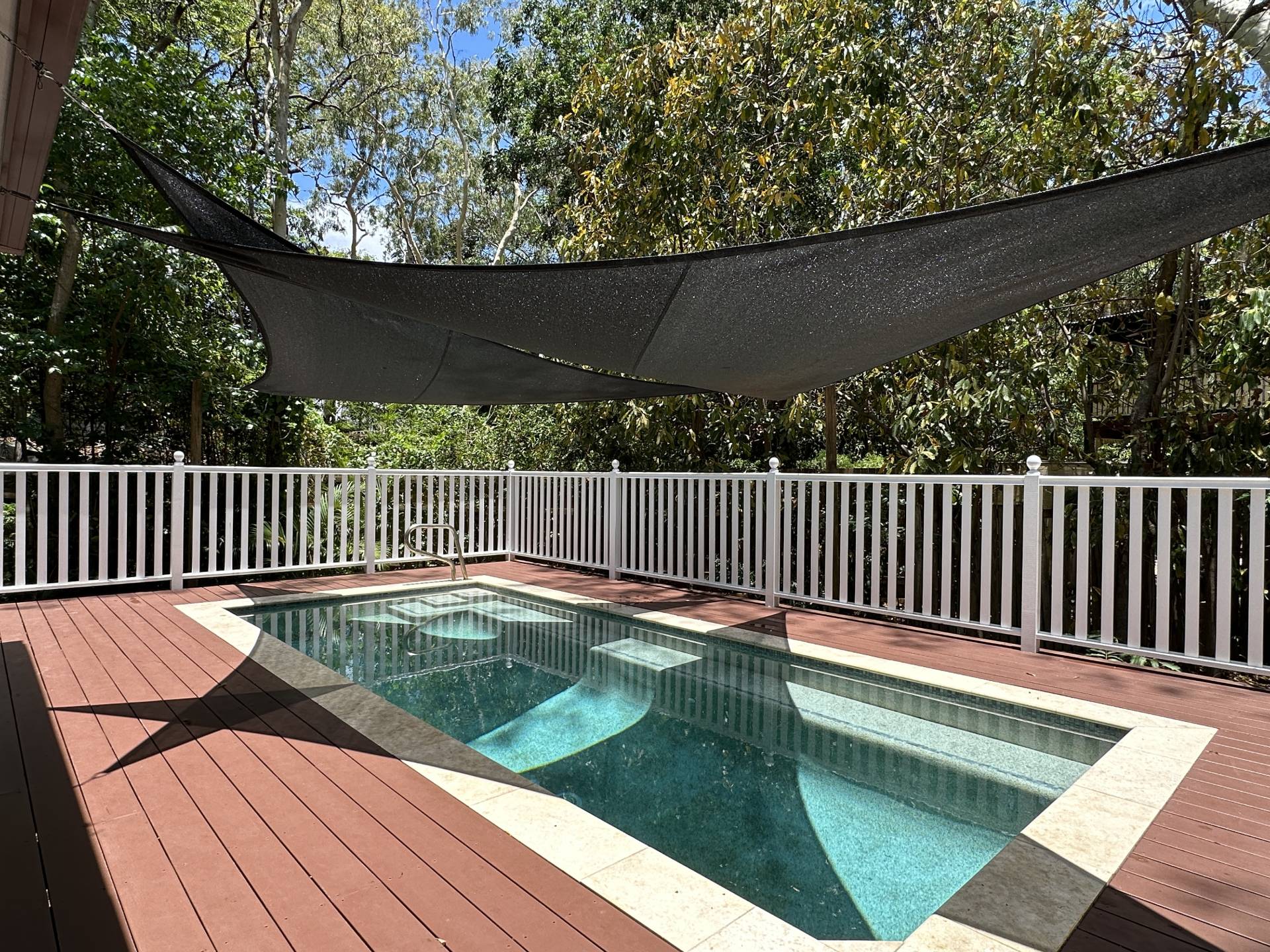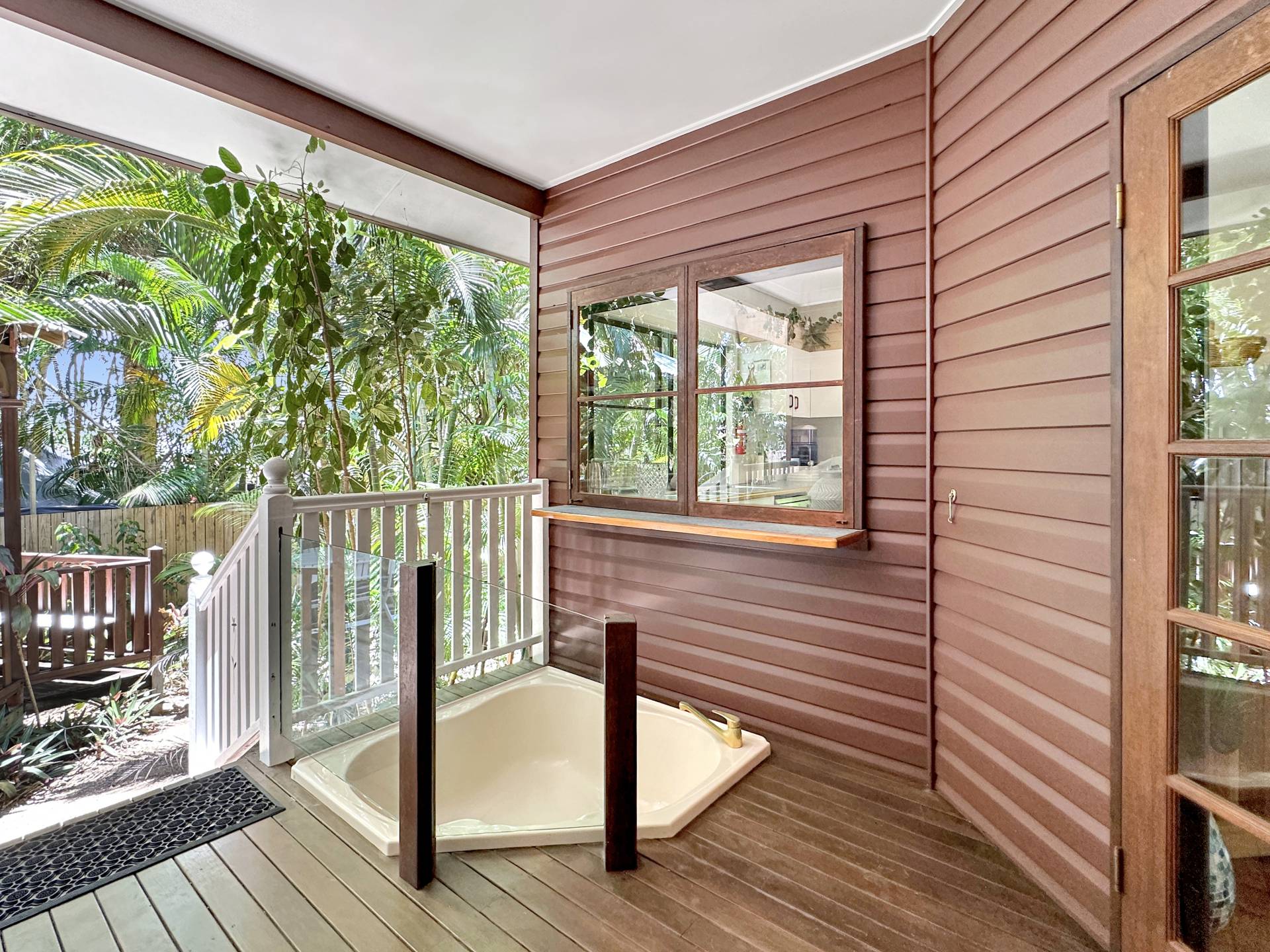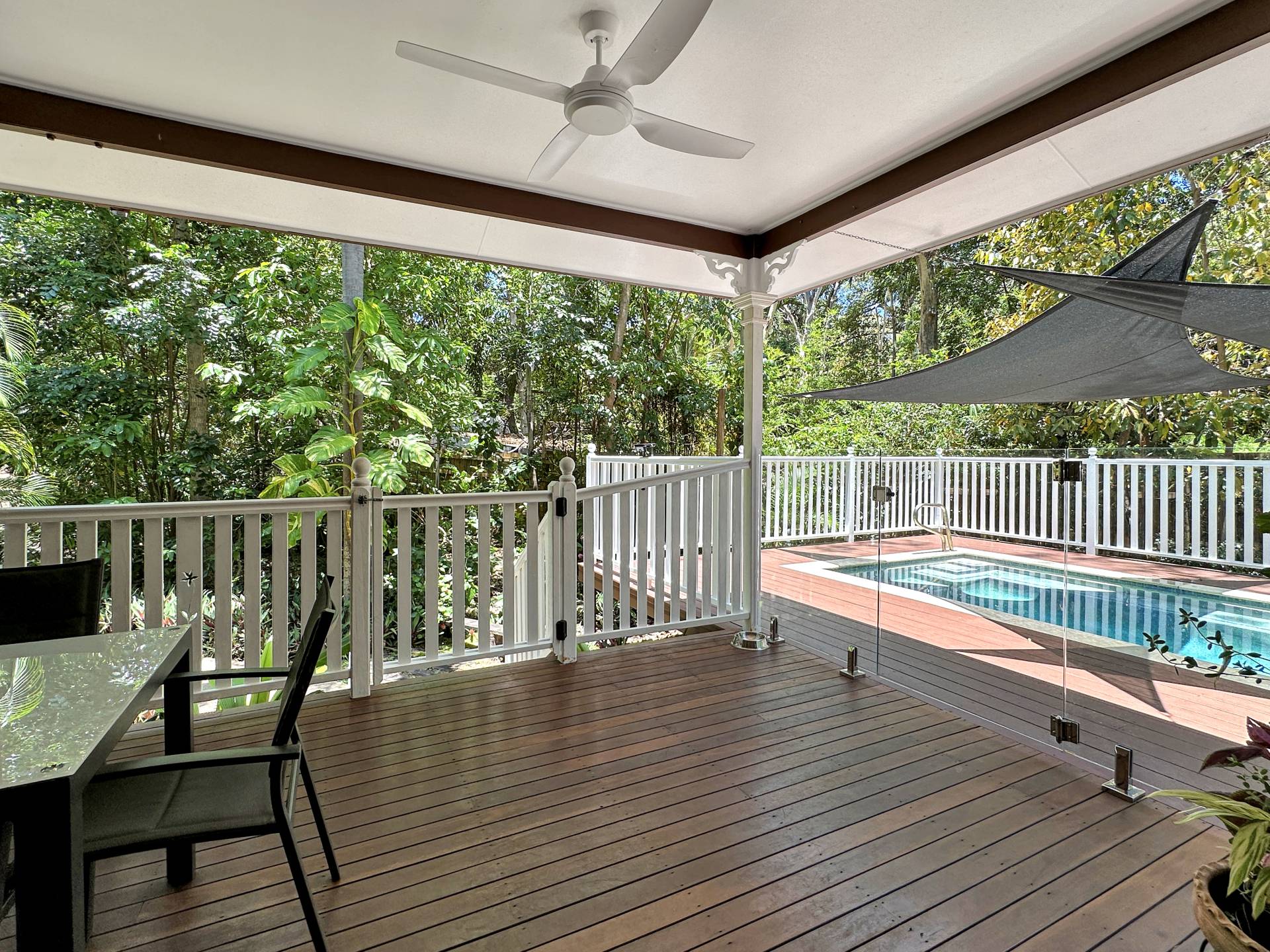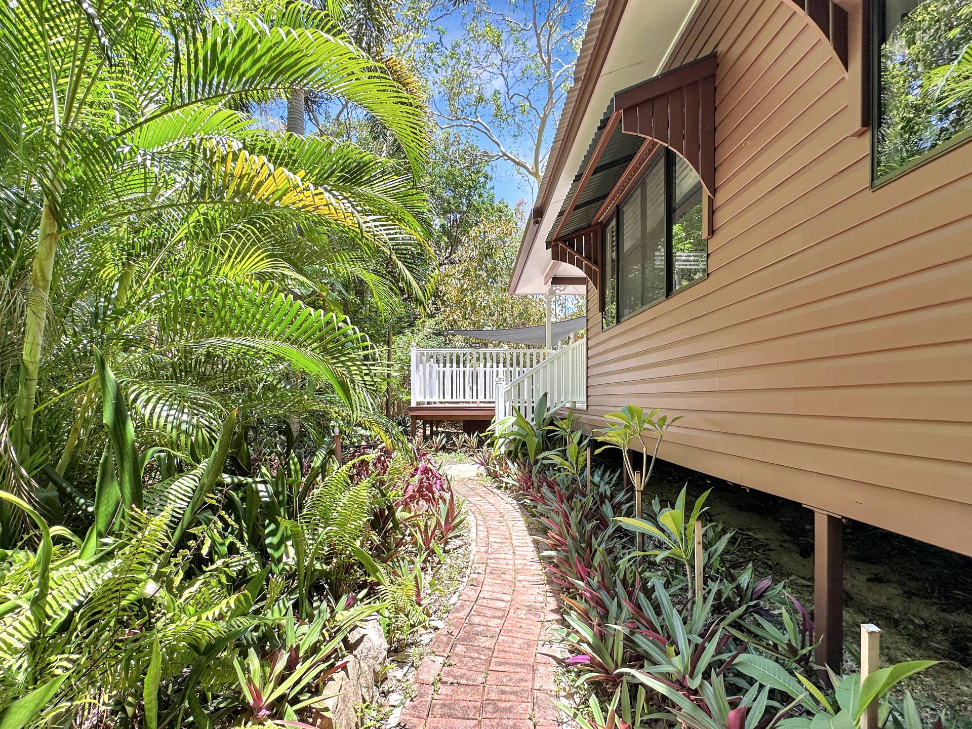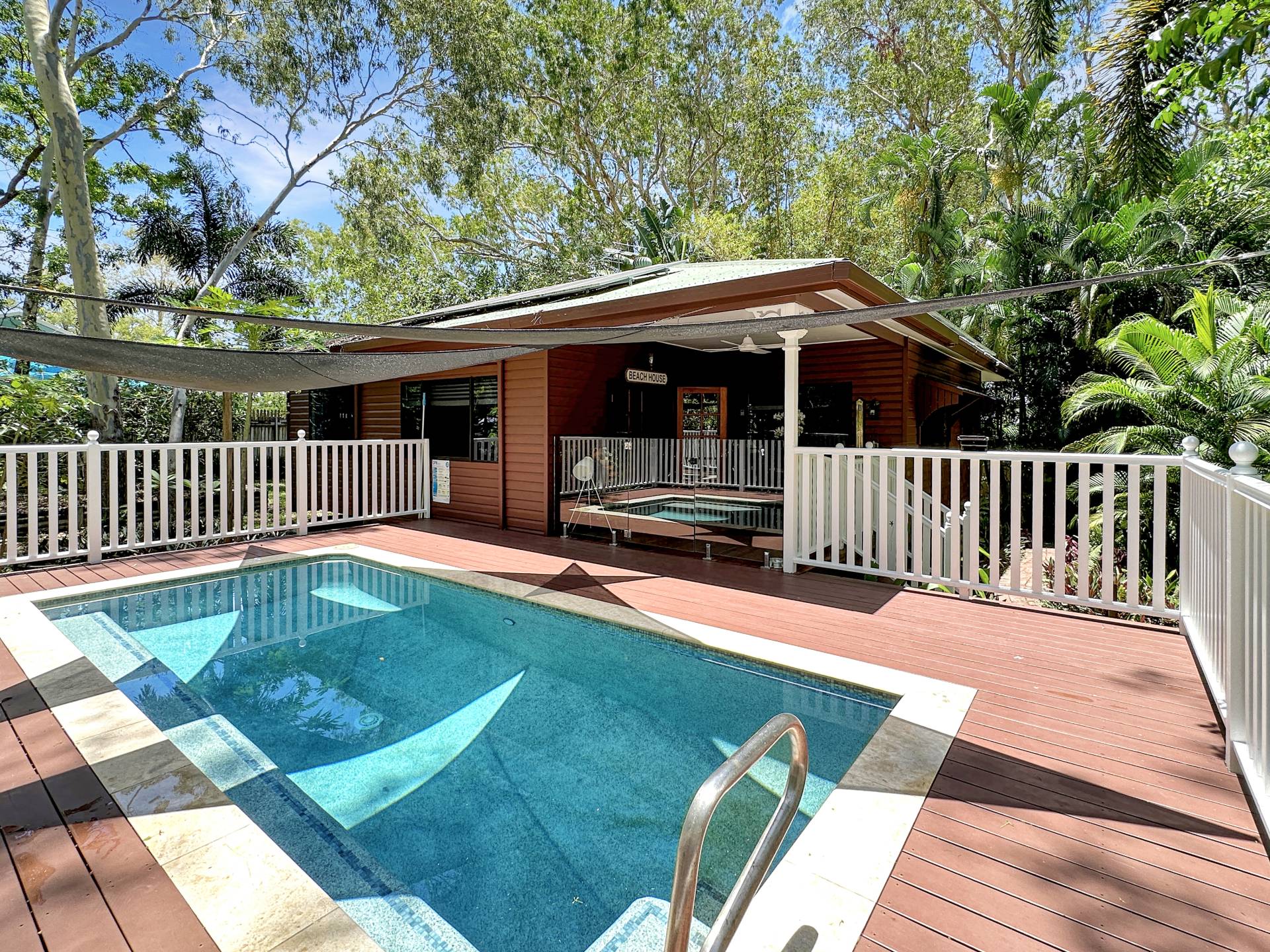 Built by master builder Benny Kalsgaard circa 2000, the property features beautiful polished hard wood floors and 2700mm high ceilings and hardwood cladding, features that are rare in more recent builds due to the high costs of this type of construction. The house is set well back on the 1055m2 block with a shaded area for car parking to the front and meandering garden path through tropical gardens providing privacy brings you up to the front deck and pool. There's good access all round the house with plenty of room to add to the existing house directly or with a separate pavilion should you wish to expand.