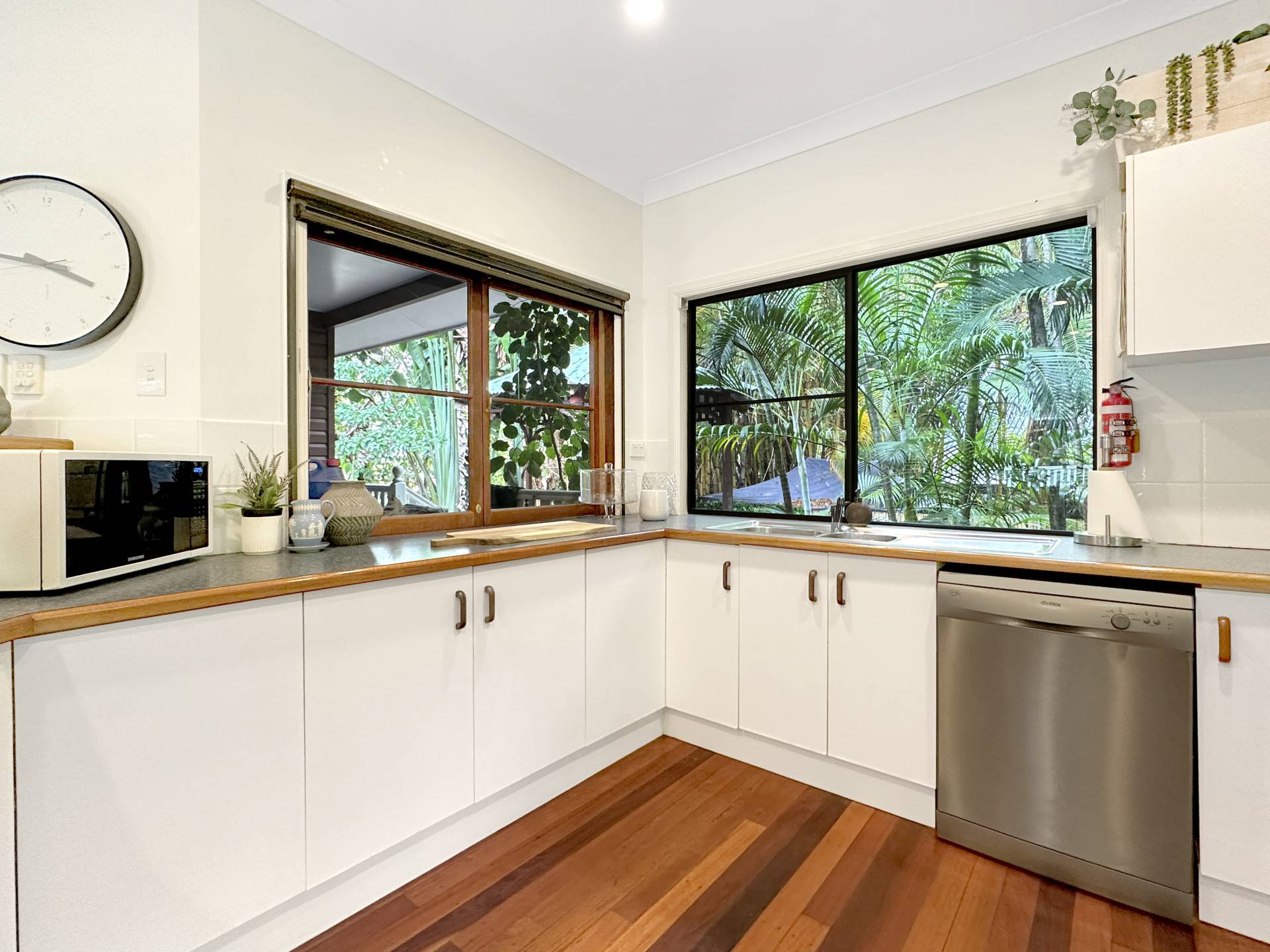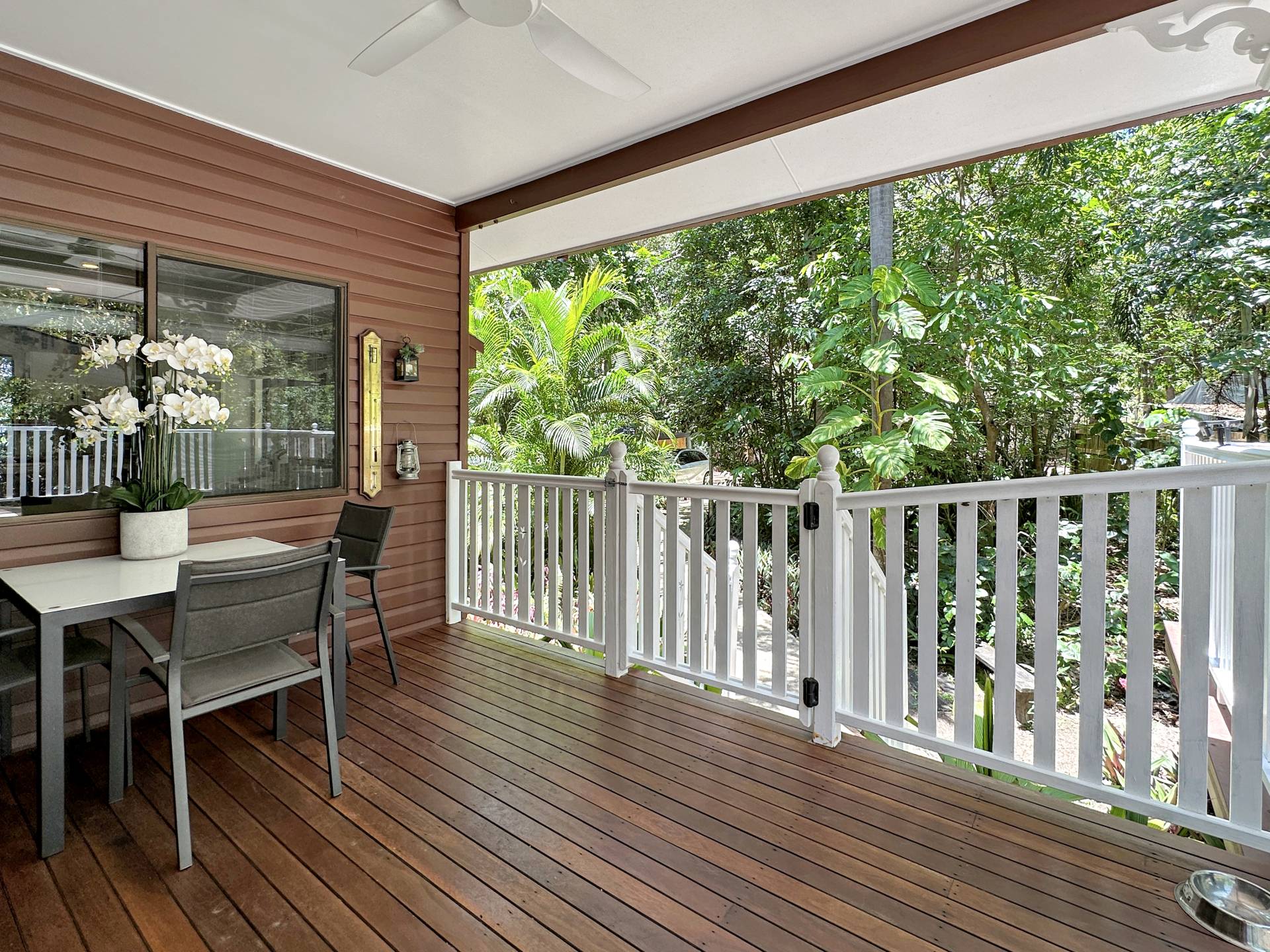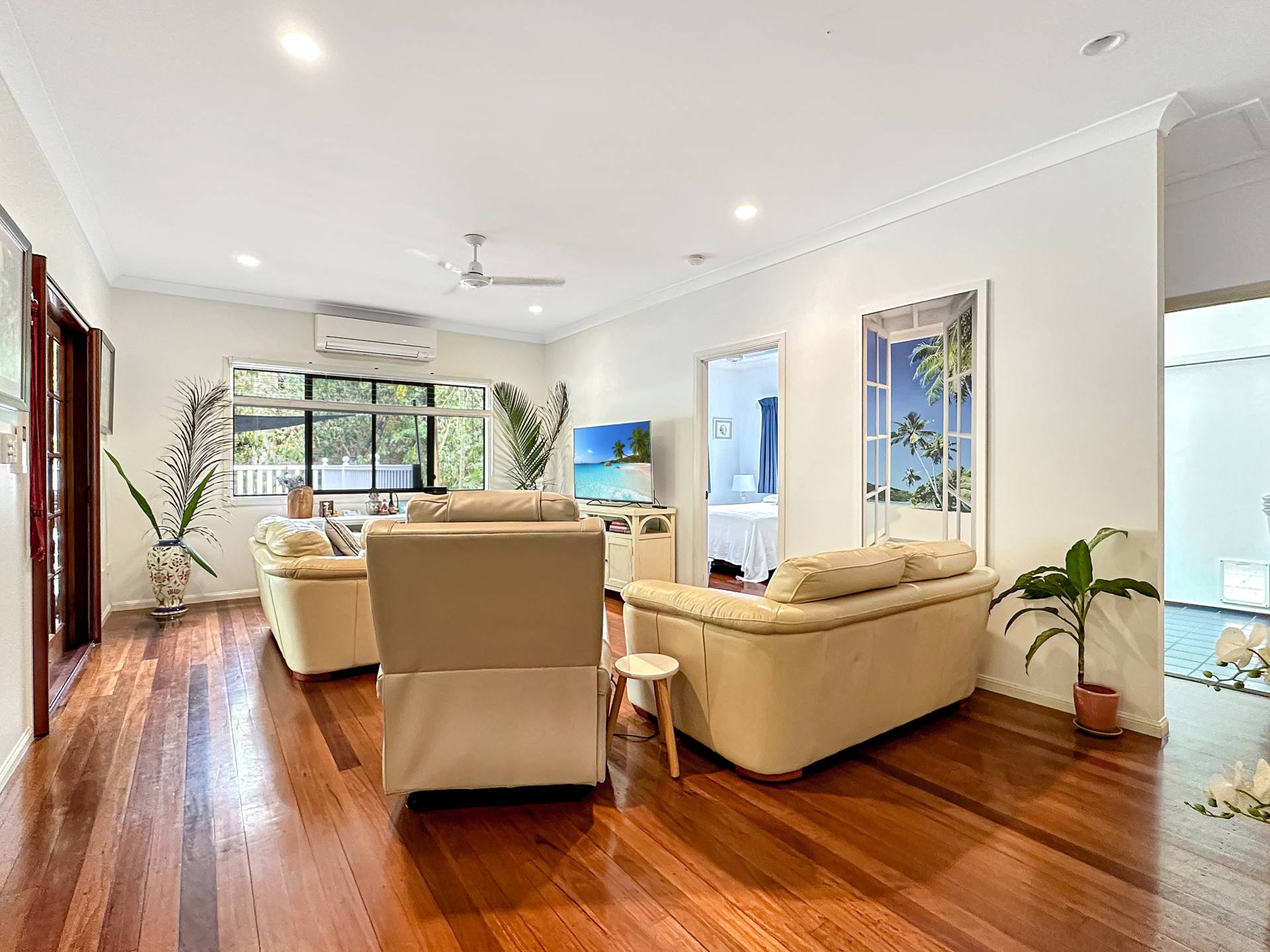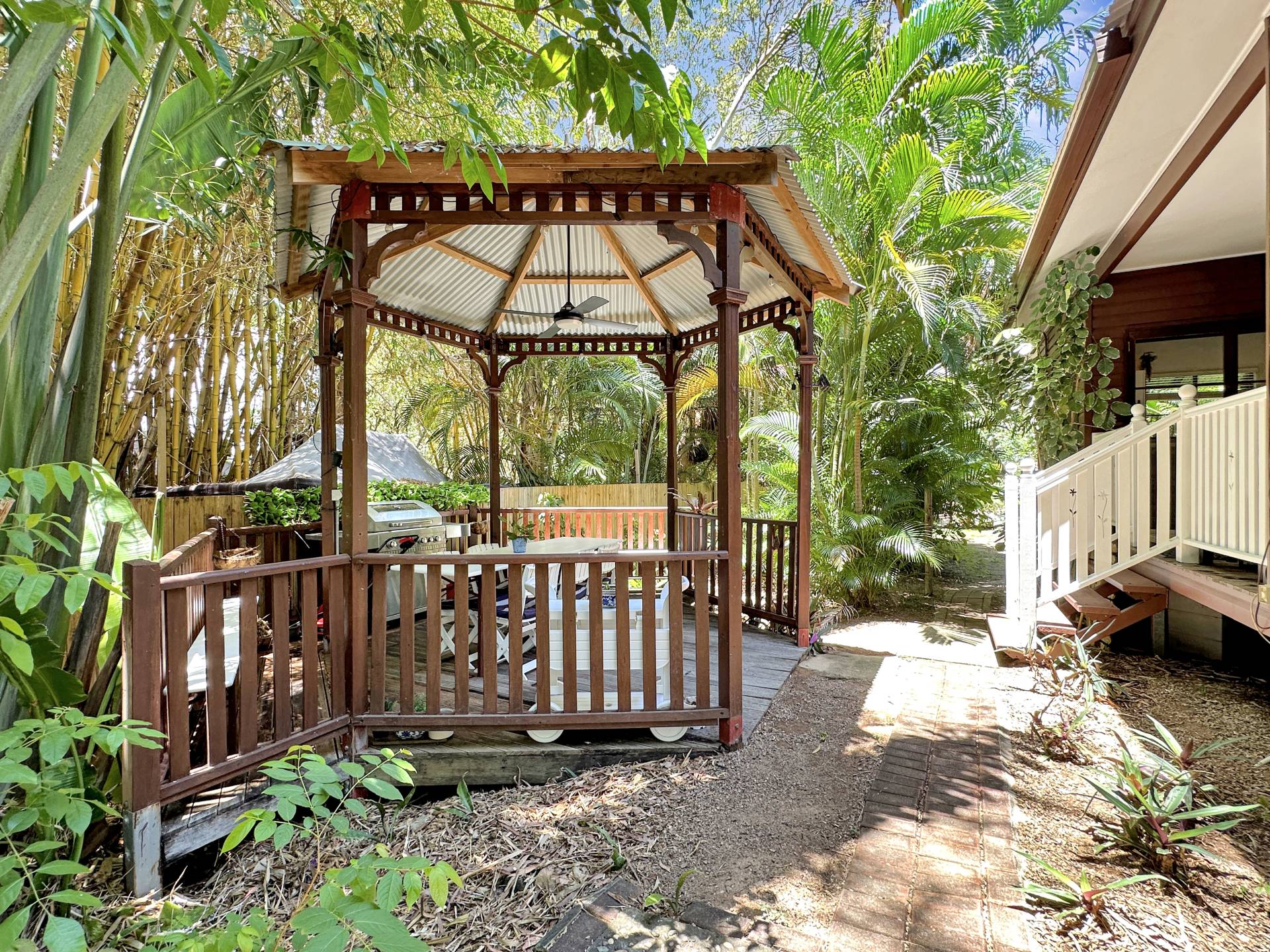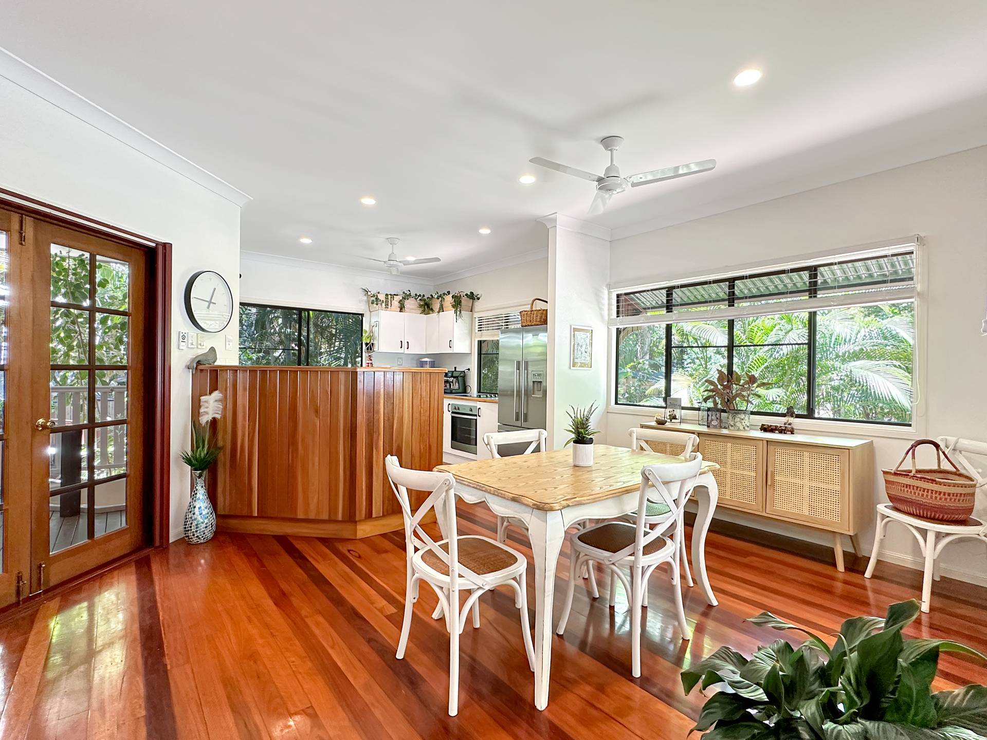 Built by master builder Benny Kalsgaard circa 2000, the property features beautiful polished hard wood floors and 2700mm high ceilings and hardwood cladding, features that are rare in more recent builds due to the high costs of this type of construction. The house is set well back on the 1055m2 block with a shaded area for car parking to the front and meandering garden path through tropical gardens providing privacy brings you up to the front deck and pool. There's good access all round the house with plenty of room to add to the existing house directly or with a separate pavilion should you wish to expand.
