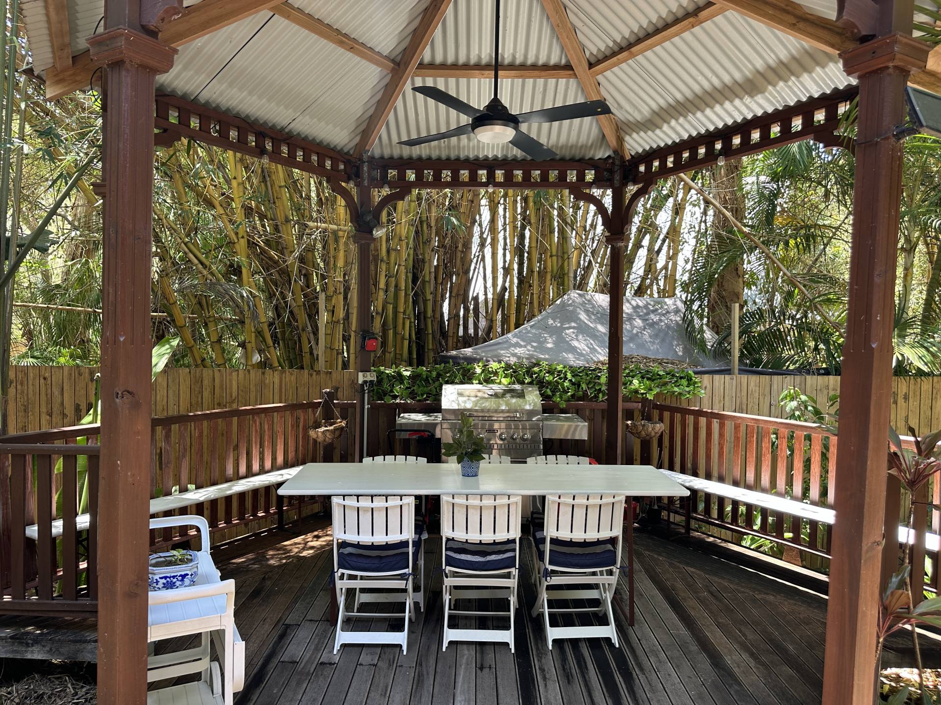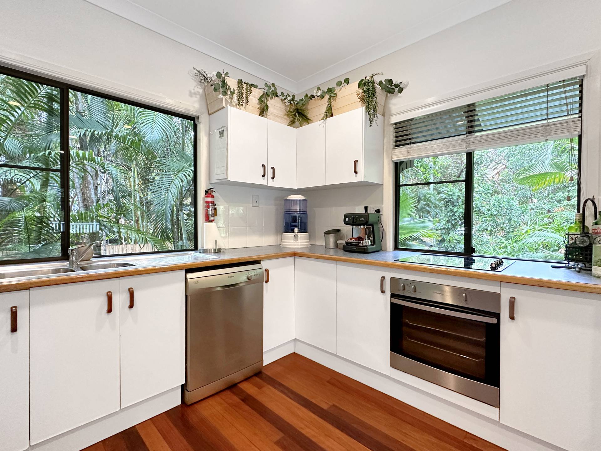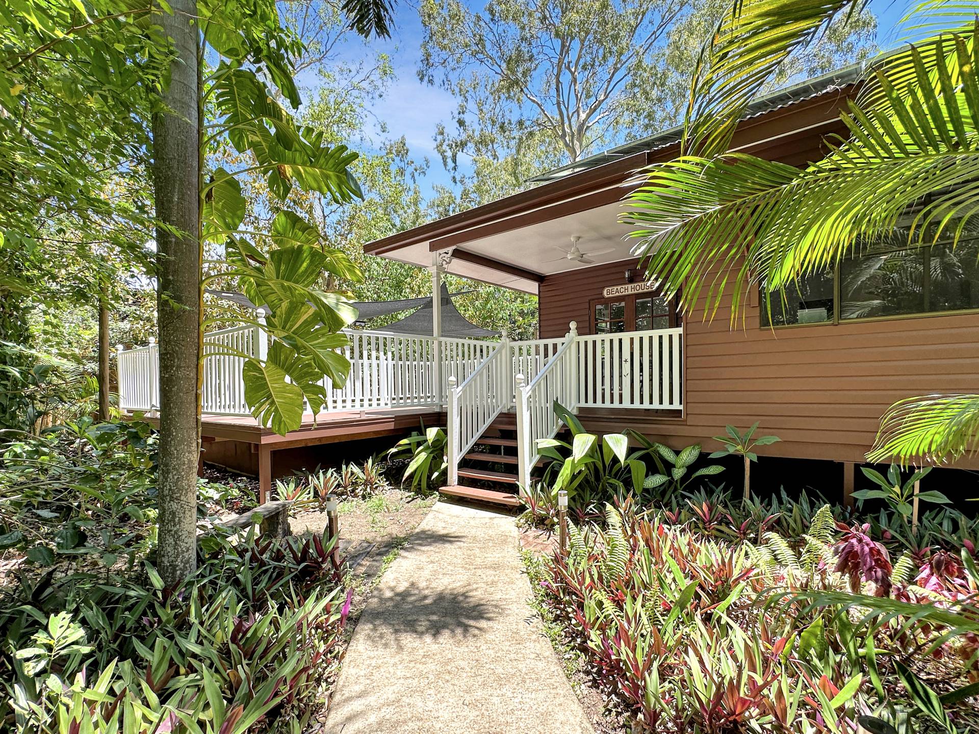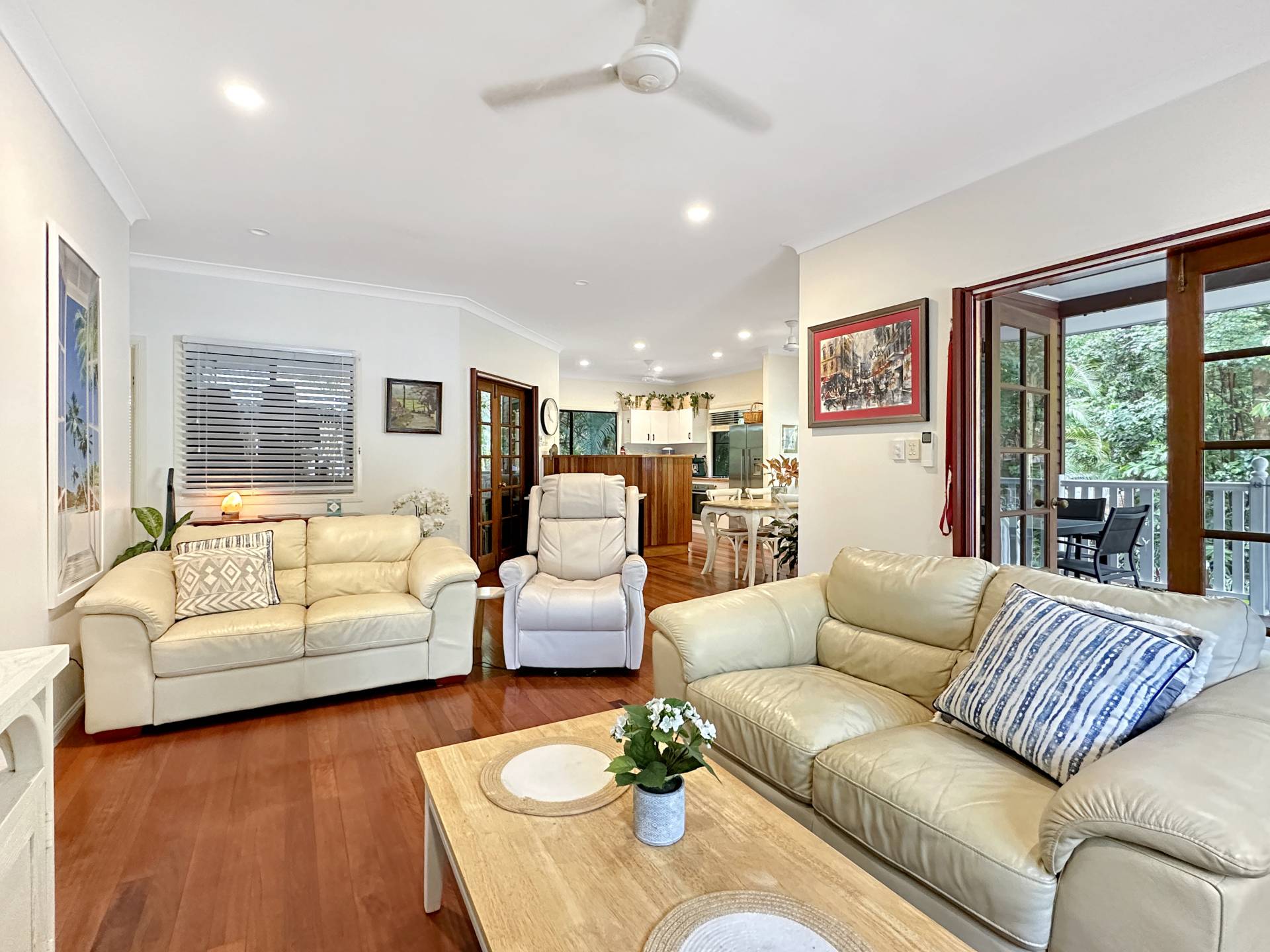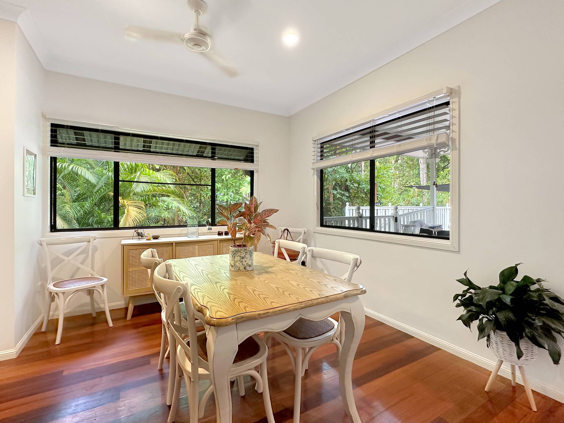 Built by master builder Benny Kalsgaard circa 2000, the property features beautiful polished hard wood floors and 2700mm high ceilings and hardwood cladding, features that are rare in more recent builds due to the high costs of this type of construction. The house is set well back on the 1055m2 block with a shaded area for car parking to the front and meandering garden path through tropical gardens providing privacy brings you up to the front deck and pool. There's good access all round the house with plenty of room to add to the existing house directly or with a separate pavilion should you wish to expand.