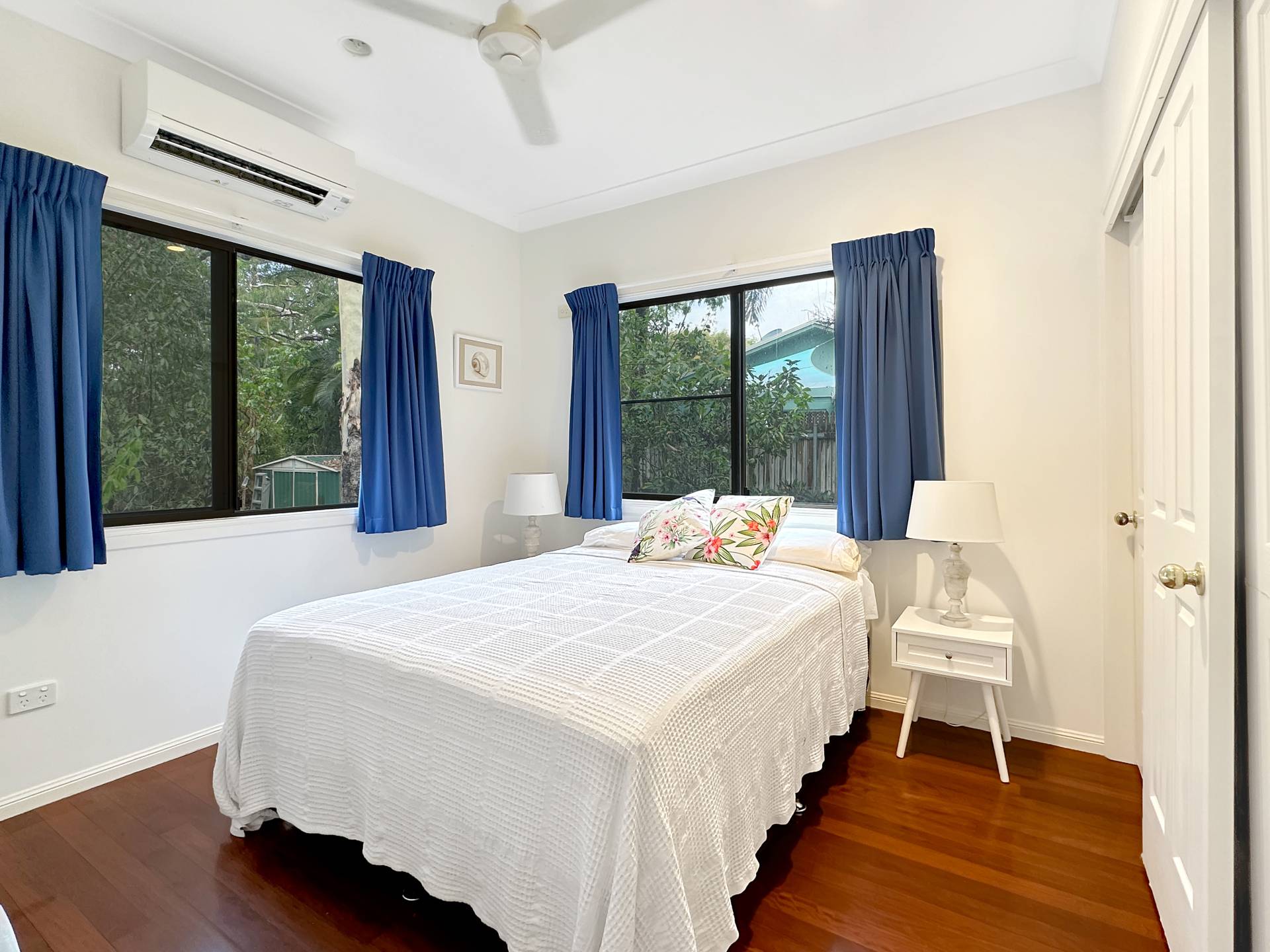 French doors bring you into the living area which is well lit and captures breezes from all directions, keeping the home cool year round, with lots of windows and doors. The home is also fully screened with 3 new split system air conditioners recently installed.