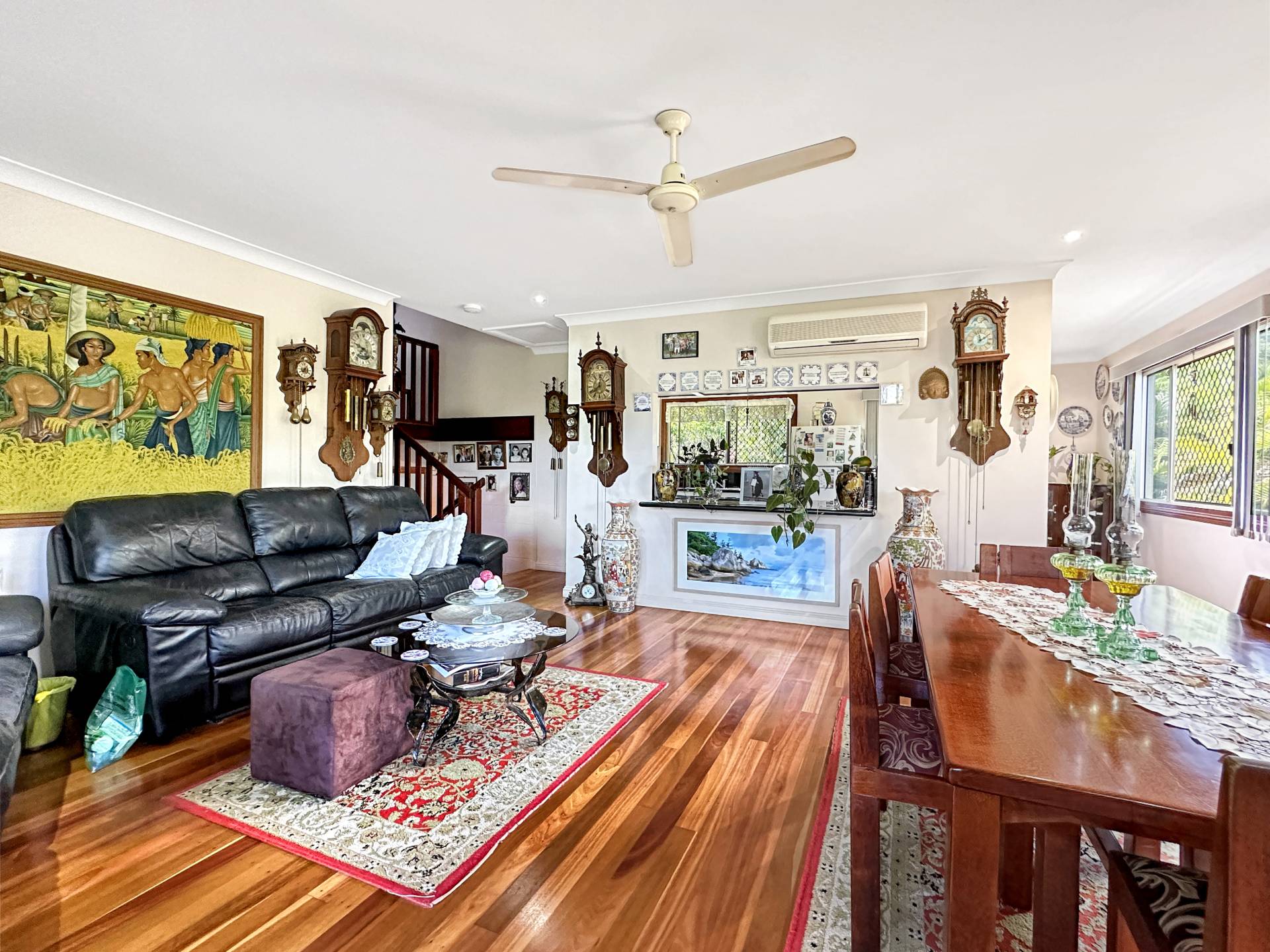 The home is split-level with the main living level in the middle, with beautiful polished hardwood floors and new split system a/c, opening onto the covered back deck. The kitchen has a large servery to the living/dining area, stone benchtops, 900mm gas stove, loads of storage space, double sink, room for a large fridge and even room for a breakfast table.