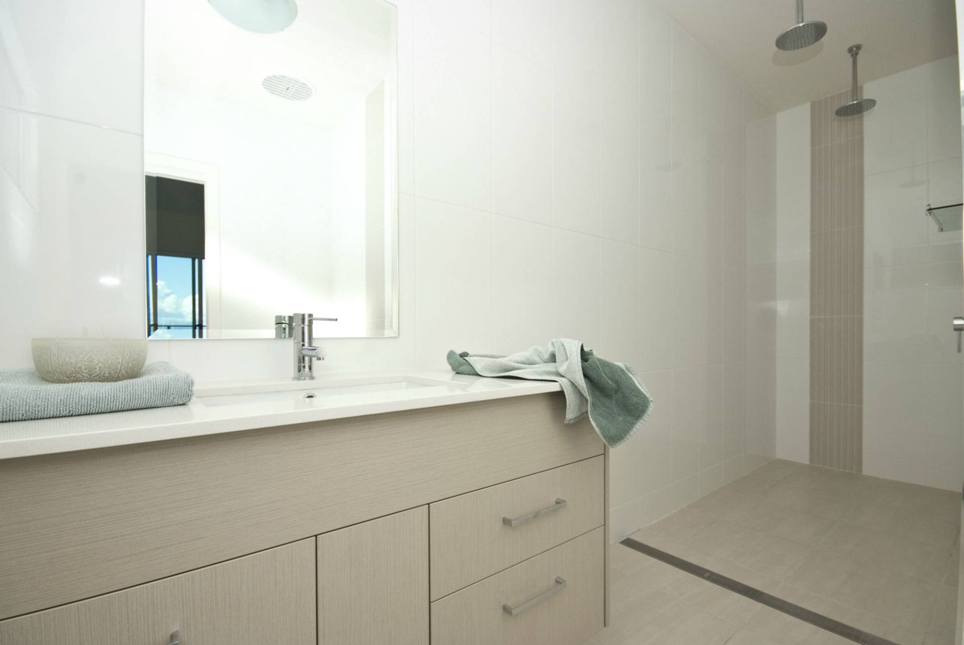* The spacious master bedroom suite also opens onto the deck and enjoys stunning water views. The well-appointed ensuite bathroom features a large walk-in shower with double rainhead shower and the walk-in-wardrobe will be appreciated by all