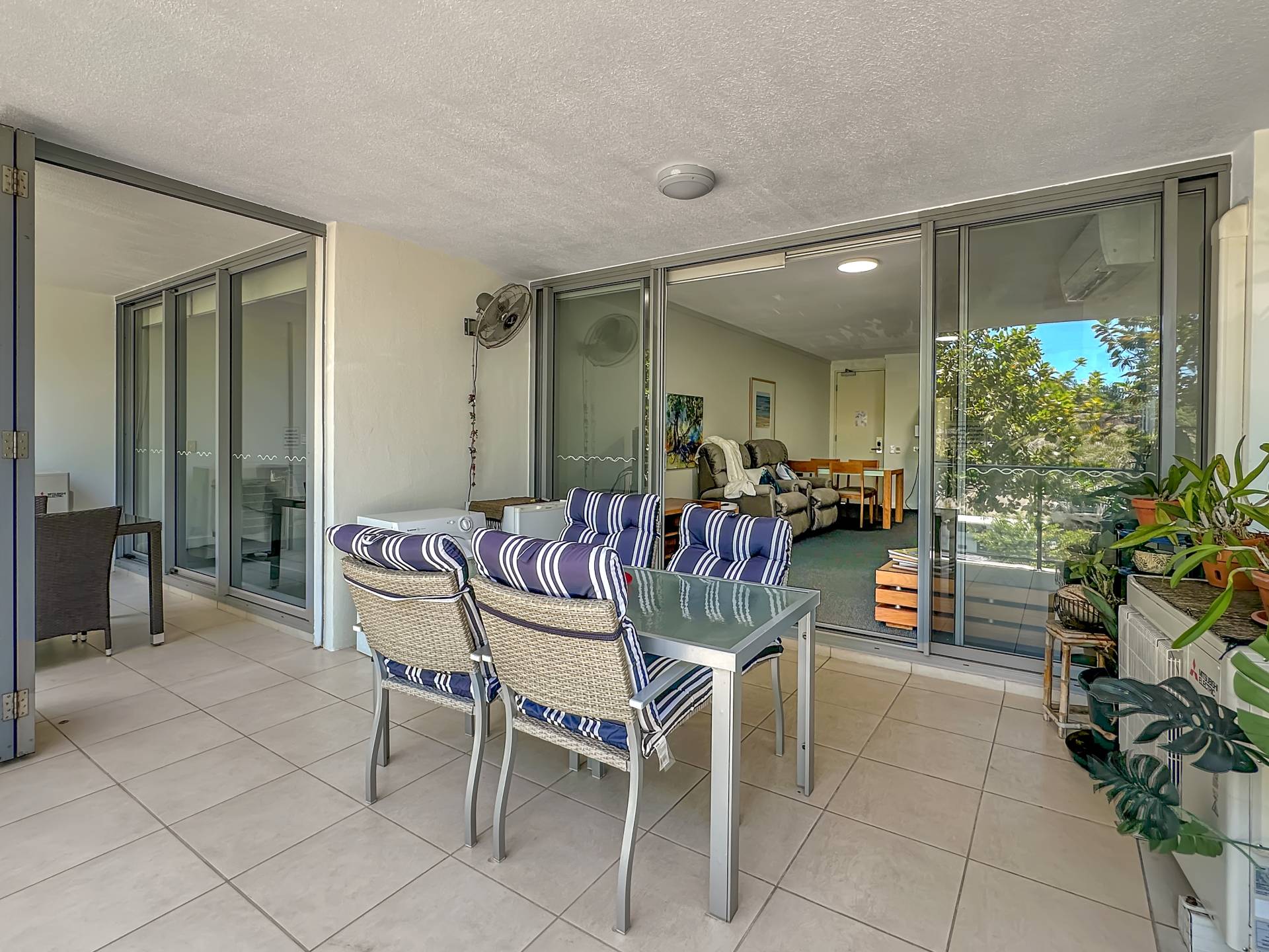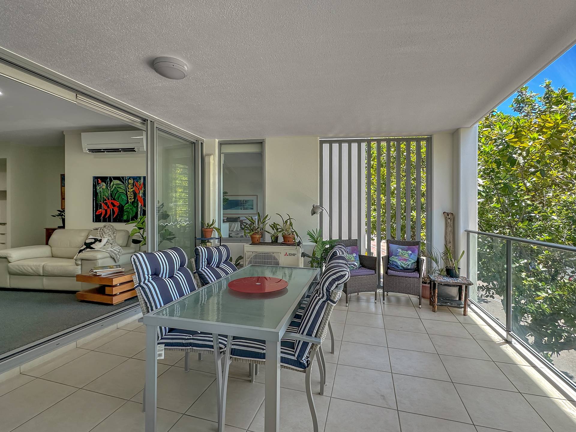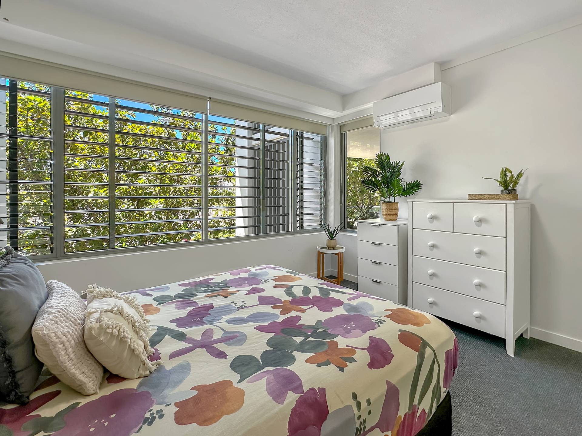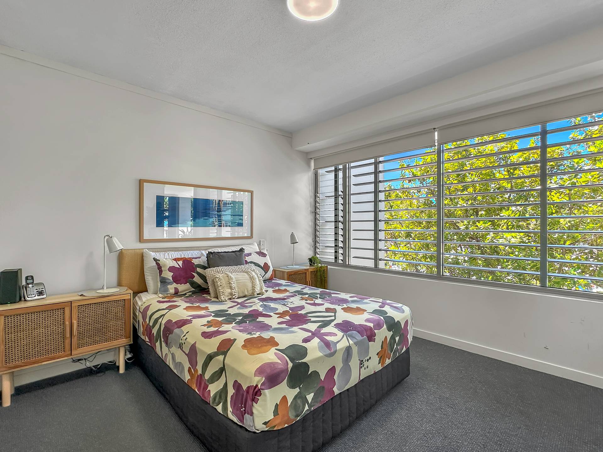 Adjacent is the studio unit, which is hotel room style with separate bathroom and bedroom/lounge combined opening onto a small covered balcony. This is ideal for short stays or can be let out for income whilst you stay or live in the apartment. Open up the louvred privacy shutters on the balcony to turn it into a two bedroom, two bathroom apartment if you need more space or when you have guests visiting.