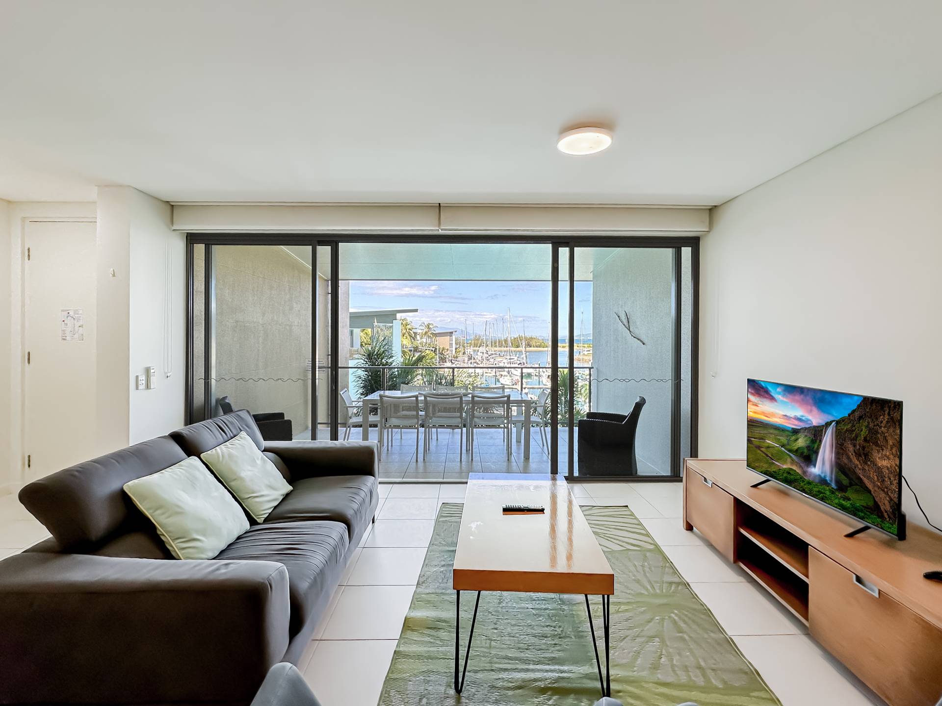 This delightful top floor apartment features views across the amazing lagoon pool, Magnetic Marina and over the Coral Sea to the twinkling lights of the mainland.