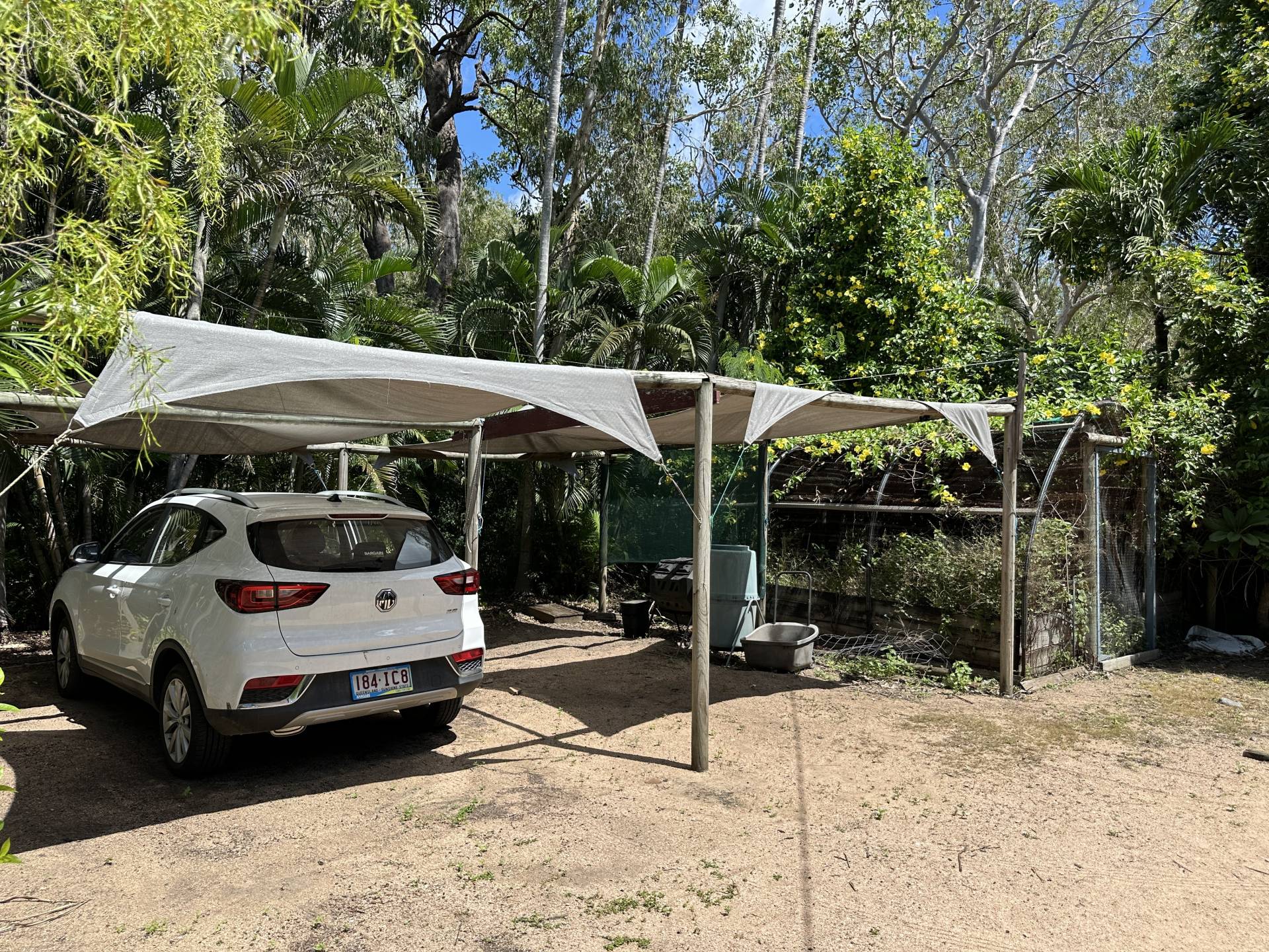 The front of the house is close to the south-western corner of the property where there's shaded vehicle parking for a couple of vehicles plus plenty of space to drive in with boats, caravans etc, and the driveway in fact extends through the property allowing for easy vehicle access throughout.