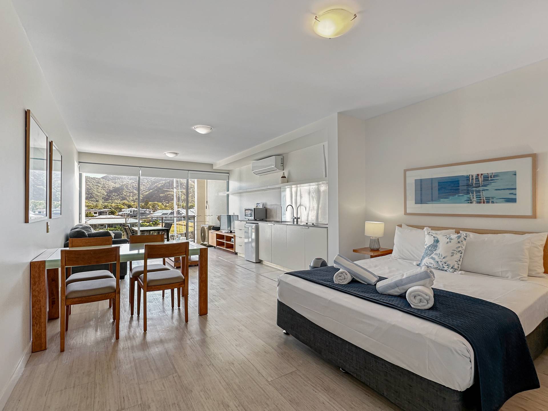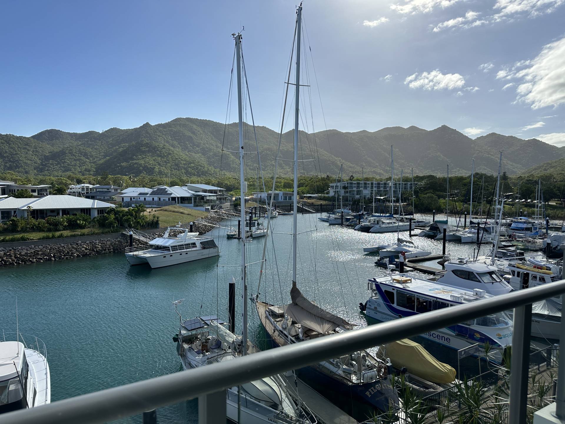 The location couldn't be more convenient for exploring the island, just steps from the ferry terminal, yet with wonderful views over the marina to the Nelly Bay beach and across to the twinkling lights of Townsville in the evening.
