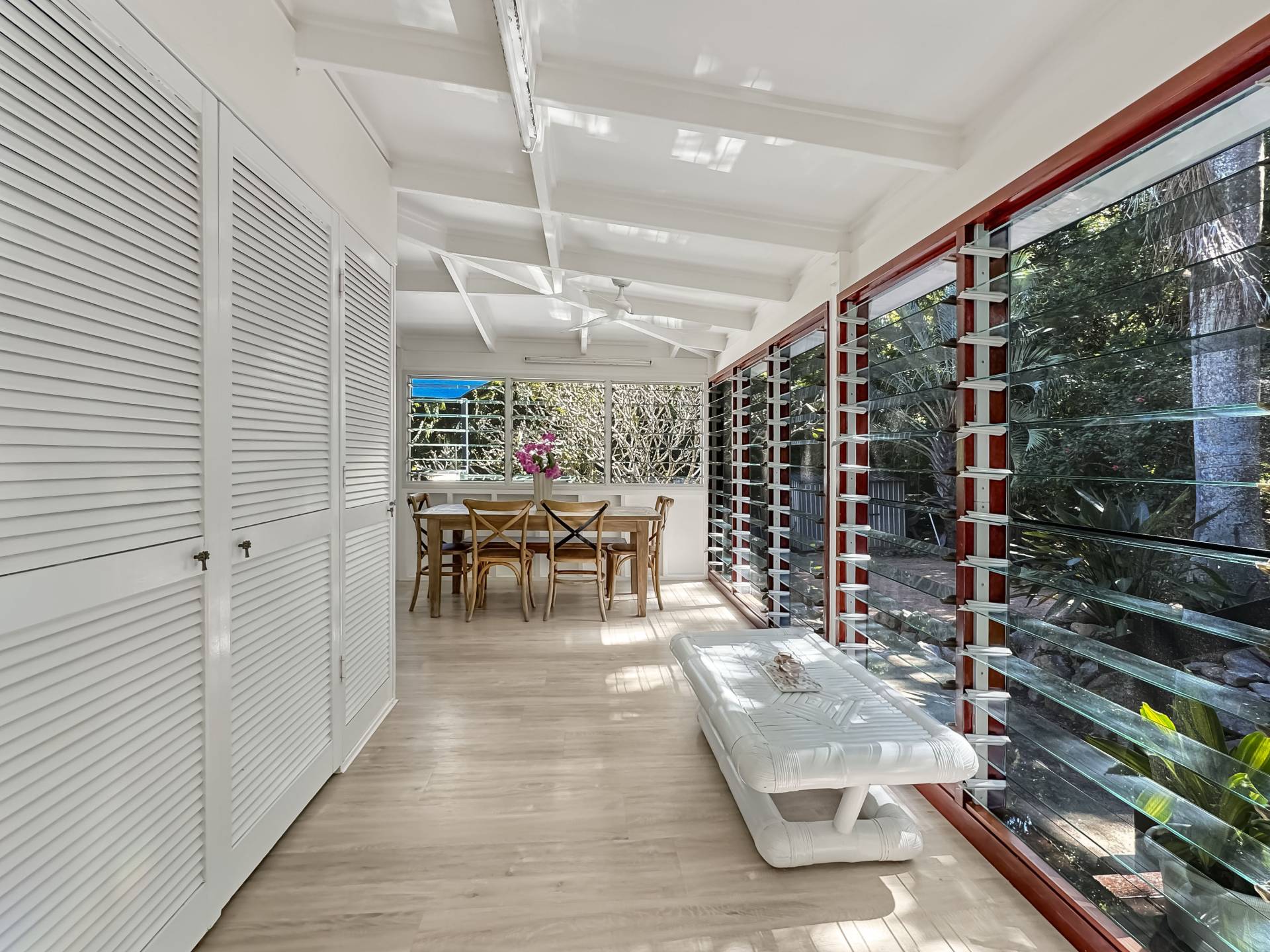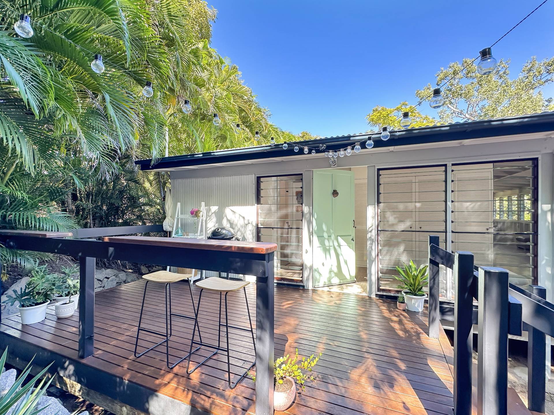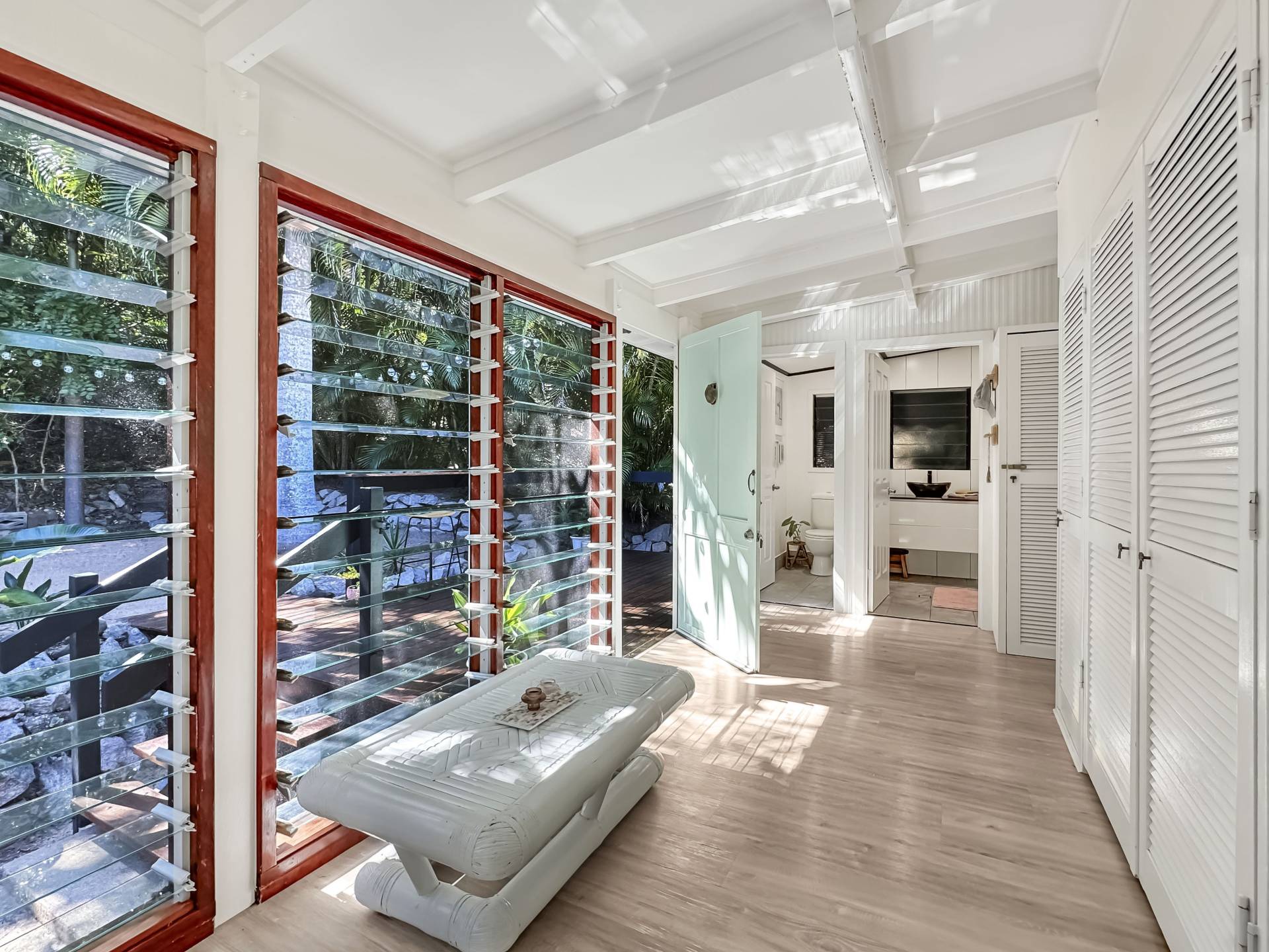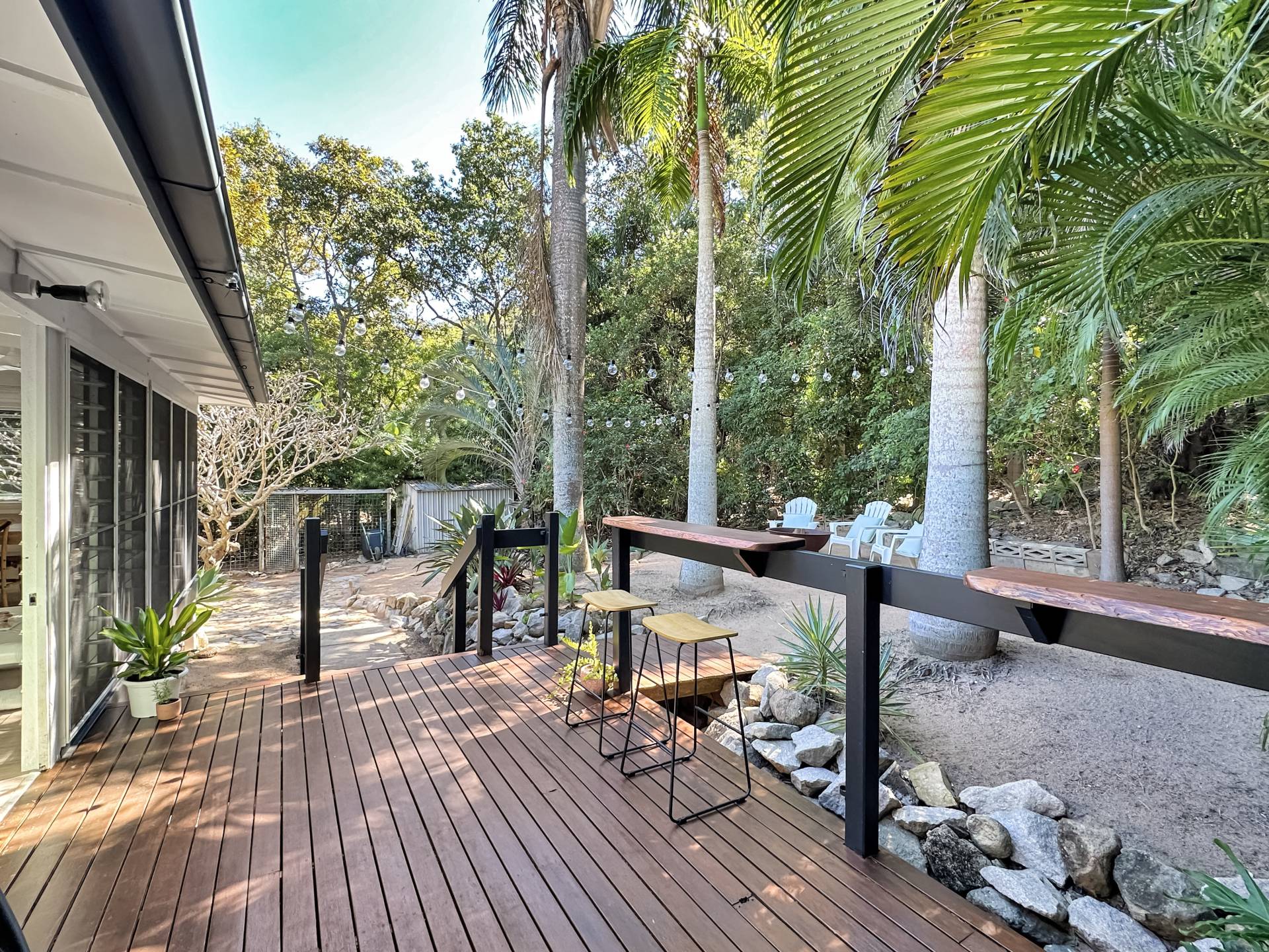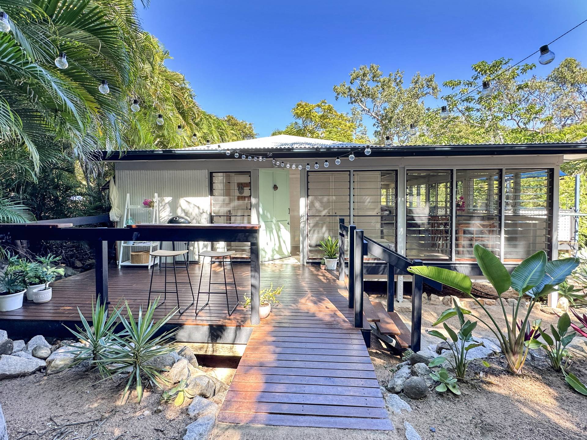 The home is a classic Queenslander design, perfect for the tropics, with the living area which wraps around three sides of the house fully enclosed with modern screened louvres so you can enjoy the space whatever the weather. There are two external decks too, both with lovely views of the garden and the trees and granite boulders that define Magnetic Island.