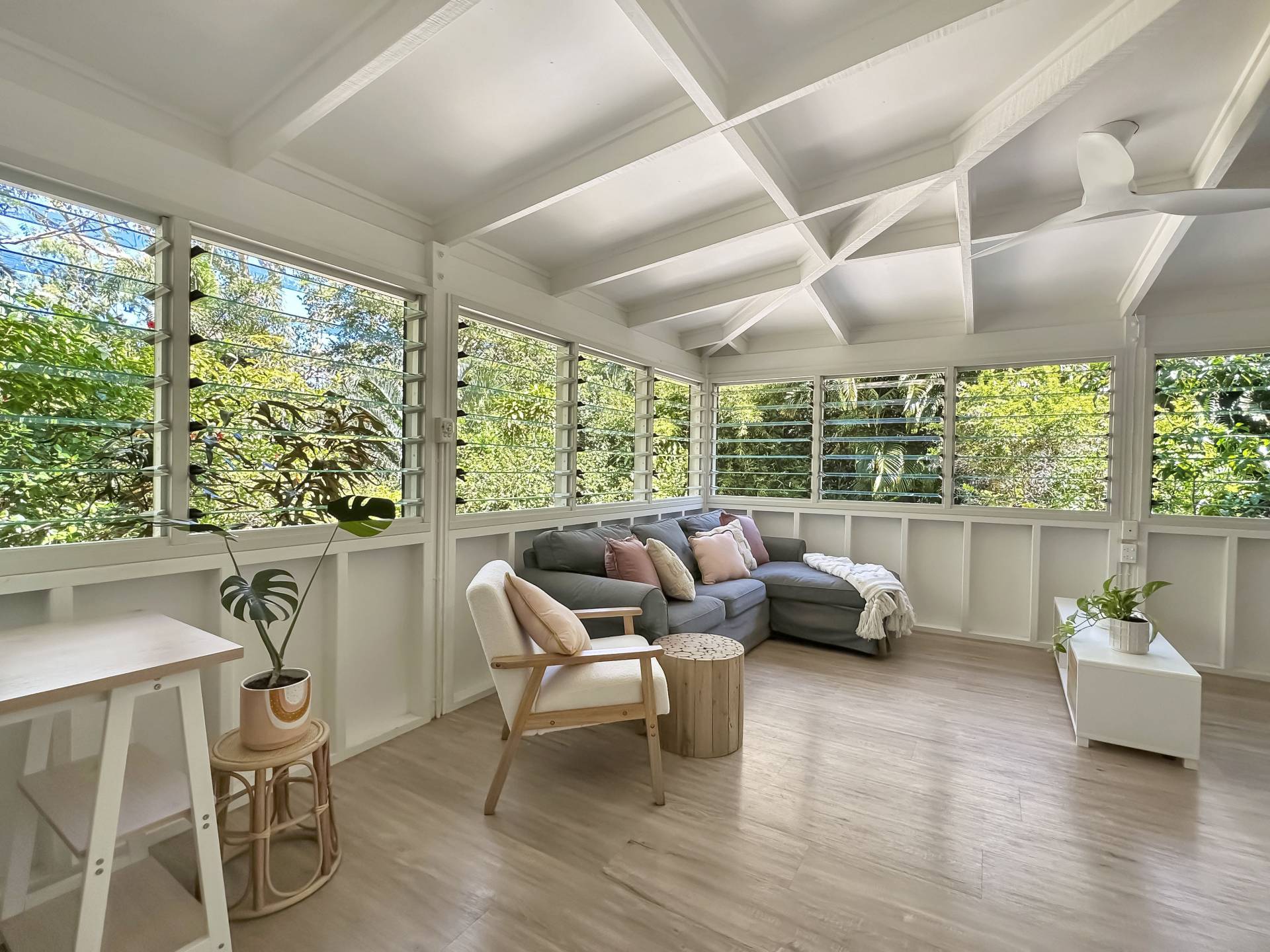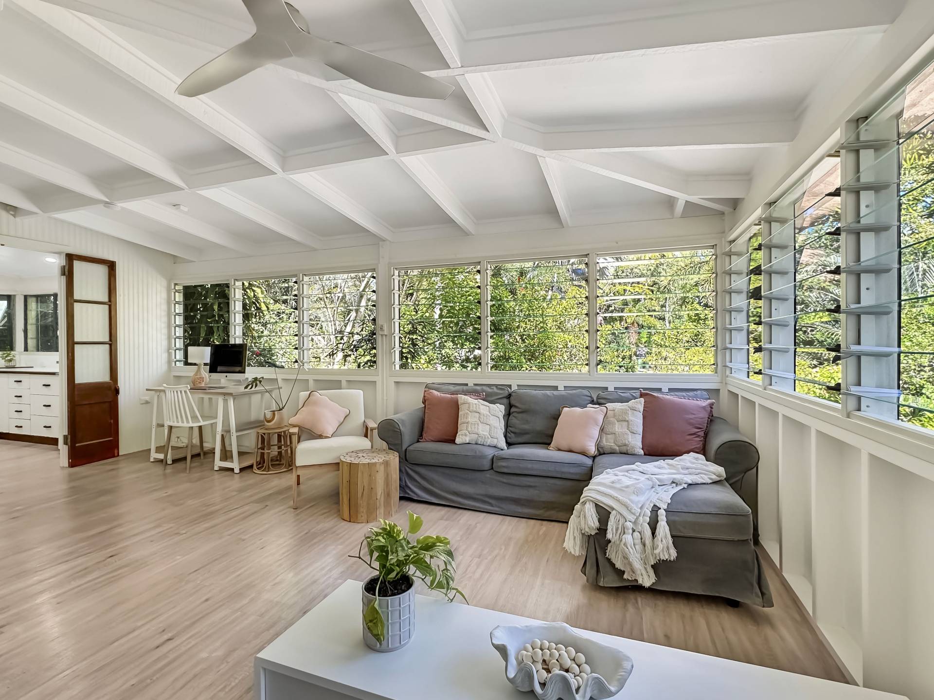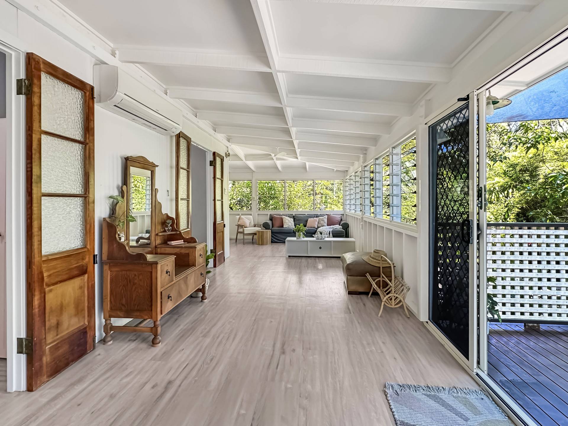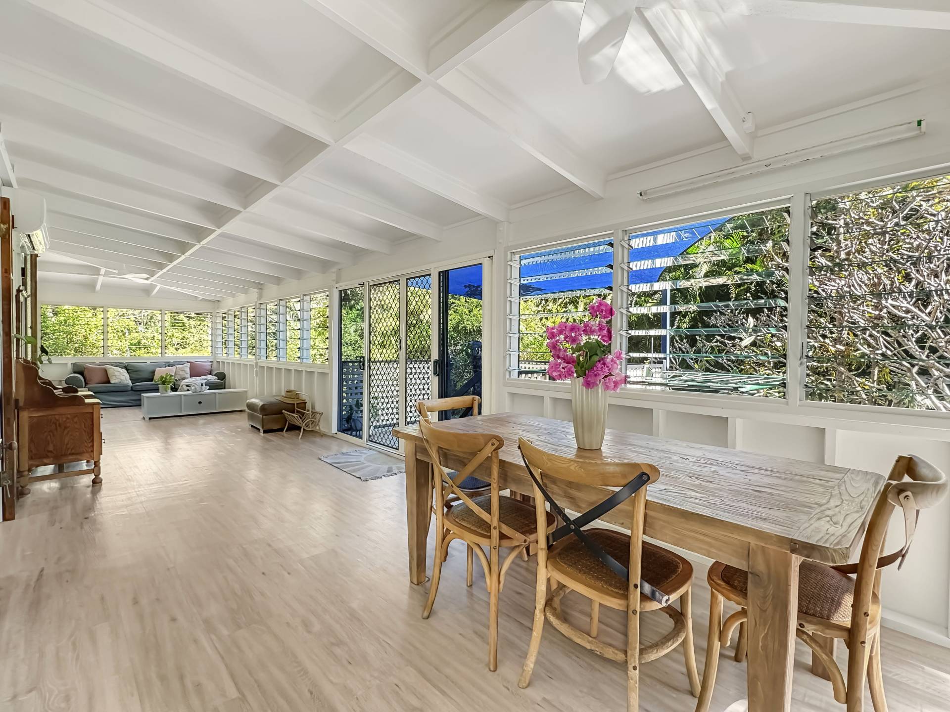 The home is a classic Queenslander design, perfect for the tropics, with the living area which wraps around three sides of the house fully enclosed with modern screened louvres so you can enjoy the space whatever the weather. There are two external decks too, both with lovely views of the garden and the trees and granite boulders that define Magnetic Island.