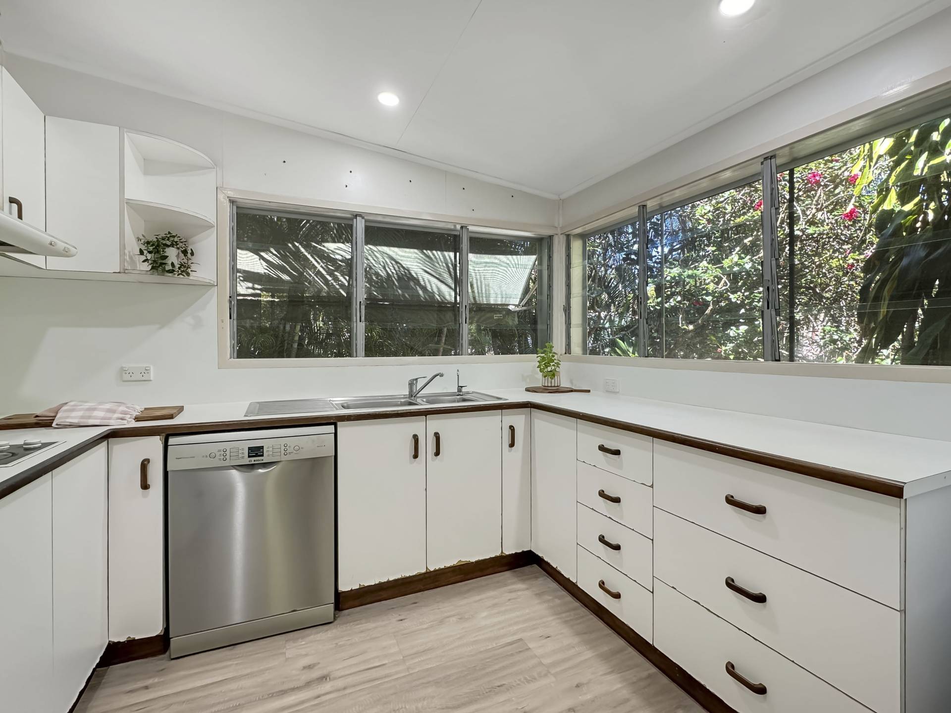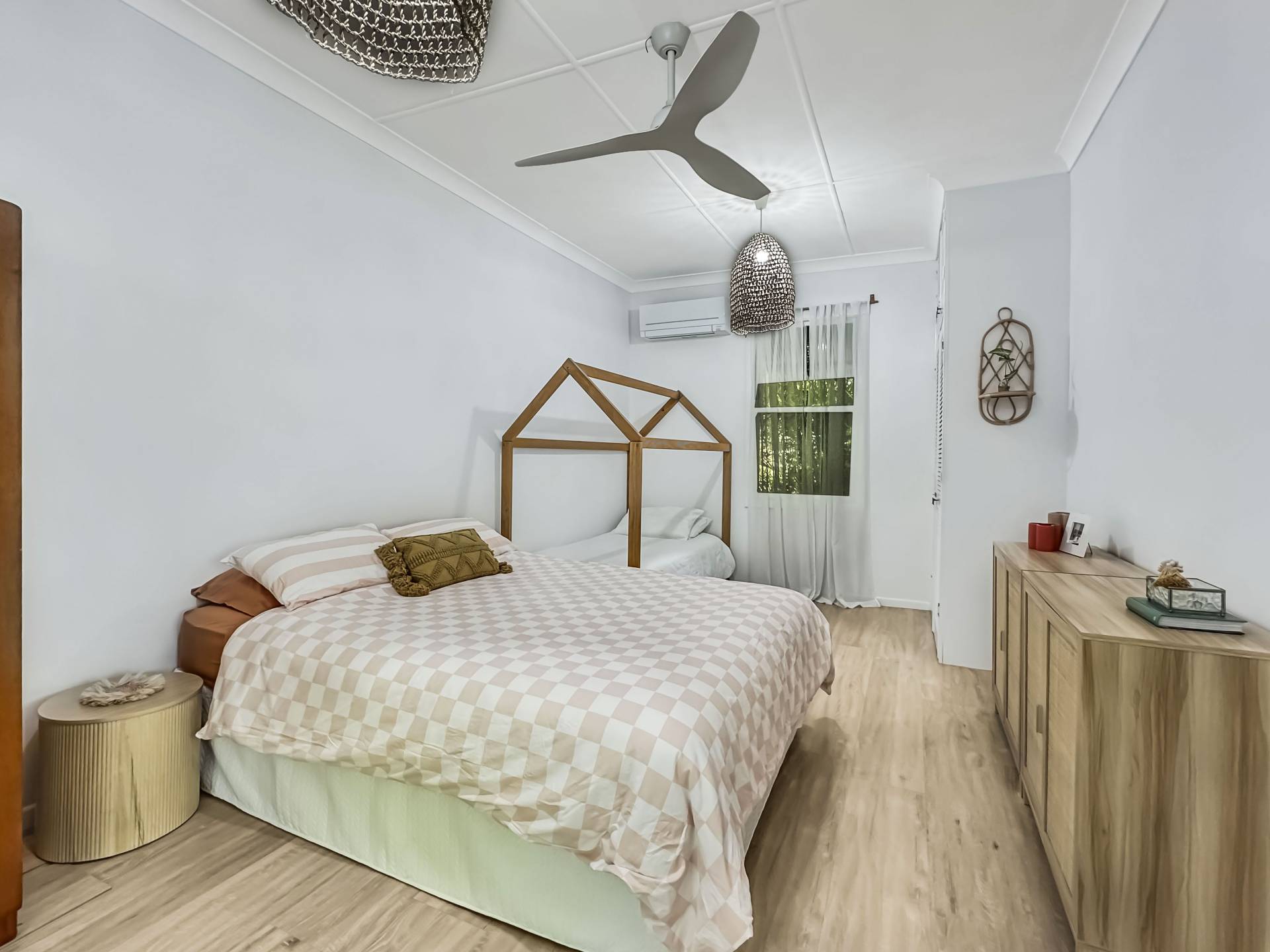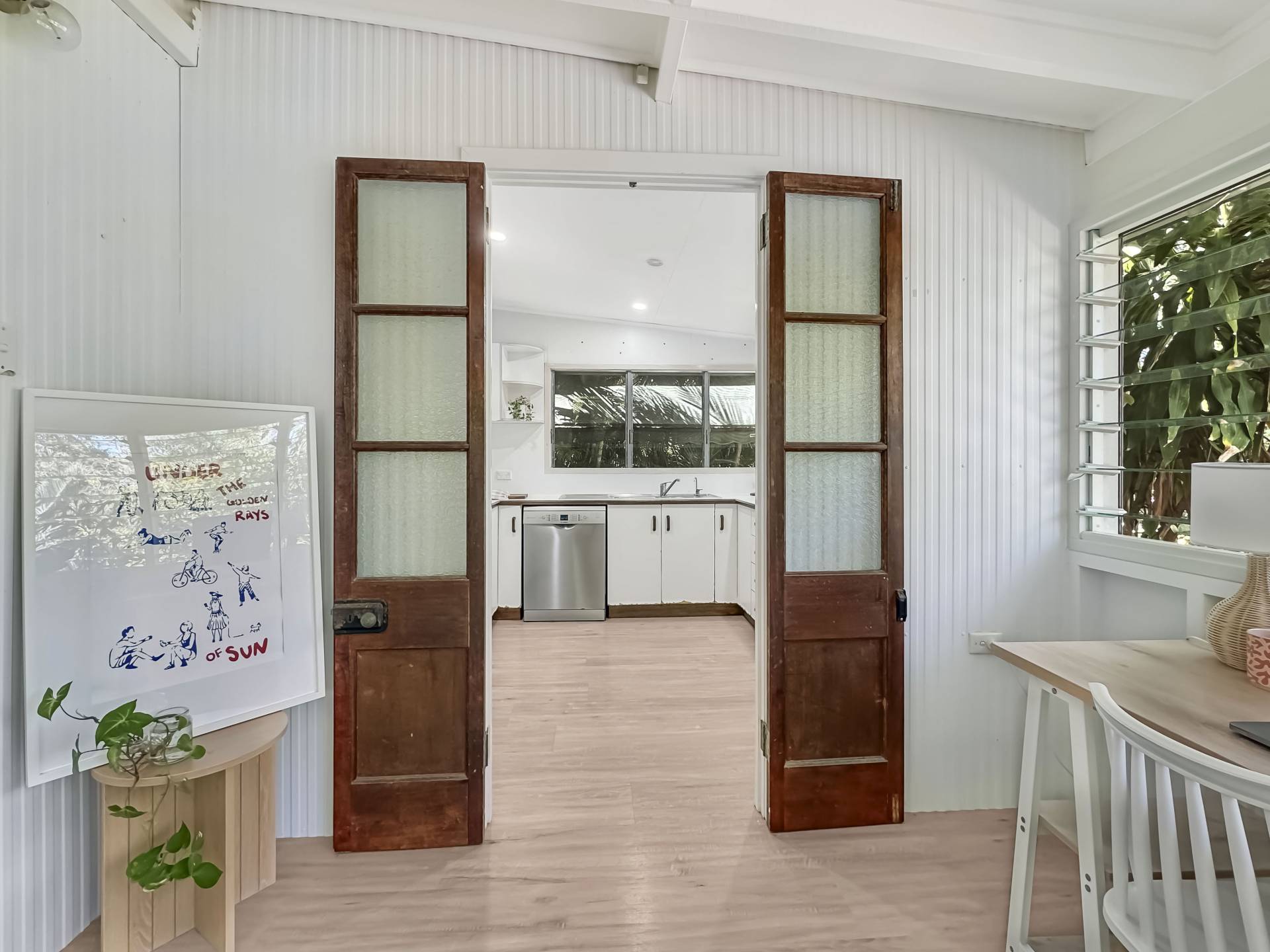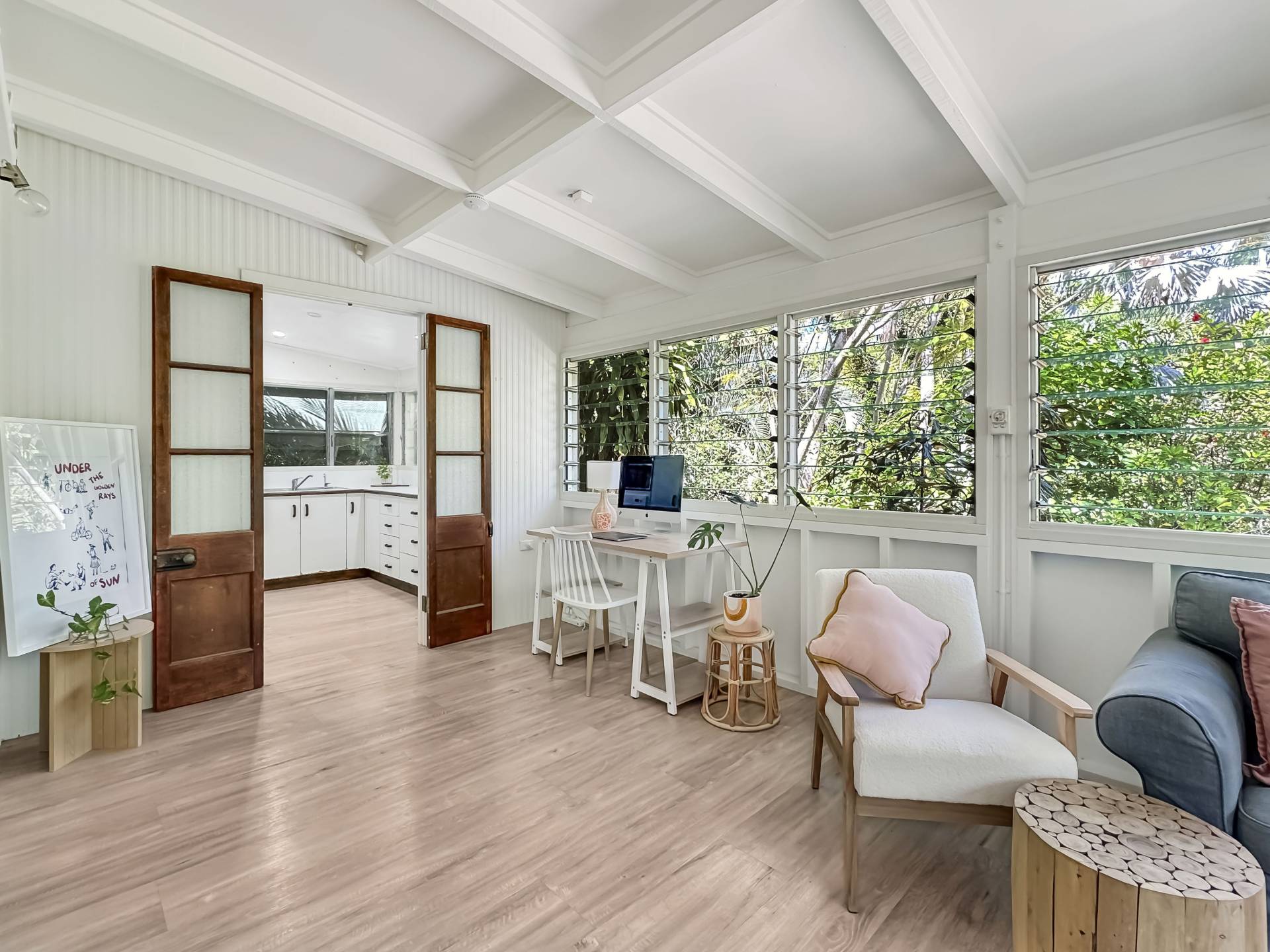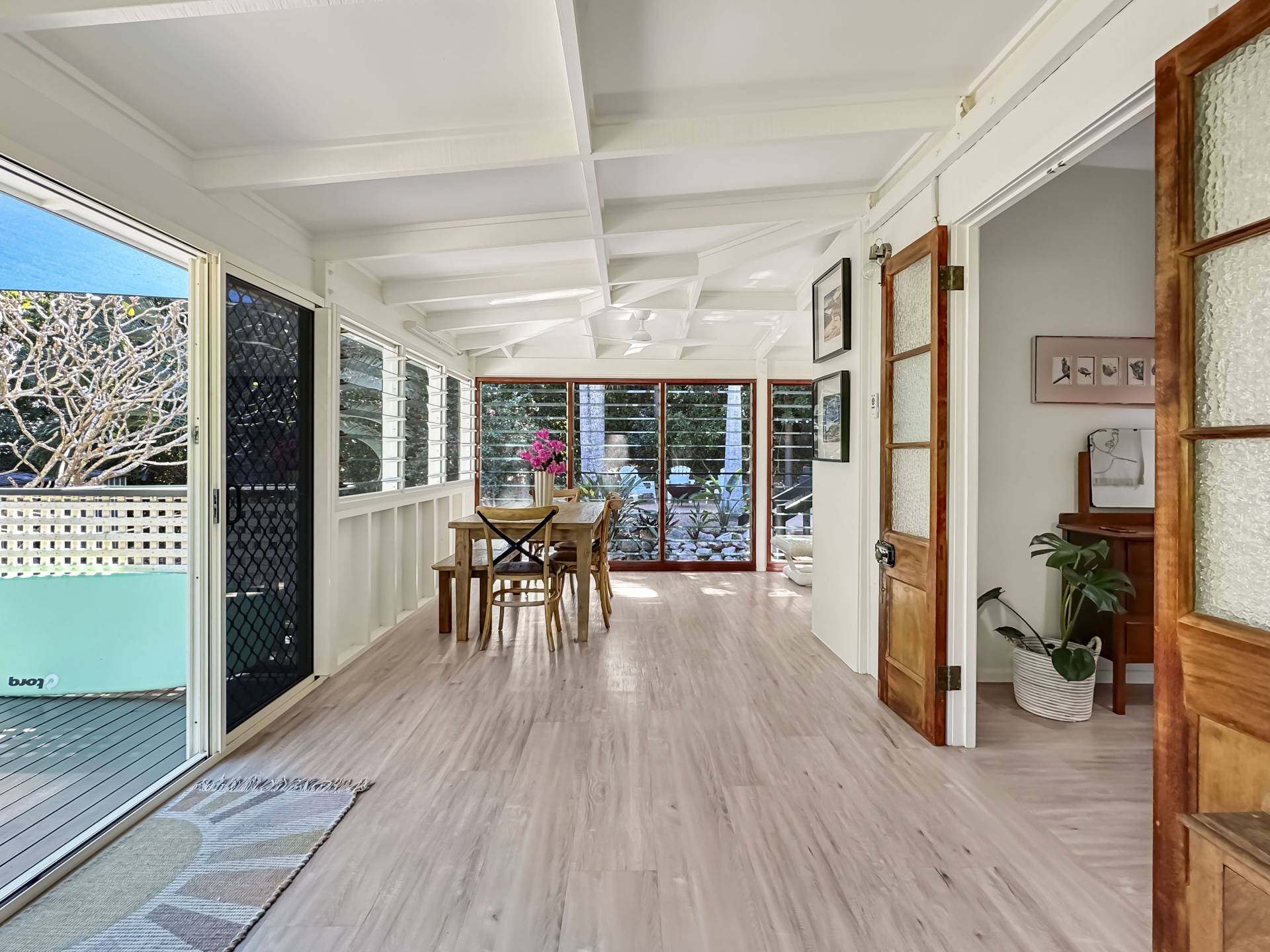 The home is a classic Queenslander design, perfect for the tropics, with the living area which wraps around three sides of the house fully enclosed with modern screened louvres so you can enjoy the space whatever the weather. There are two external decks too, both with lovely views of the garden and the trees and granite boulders that define Magnetic Island.