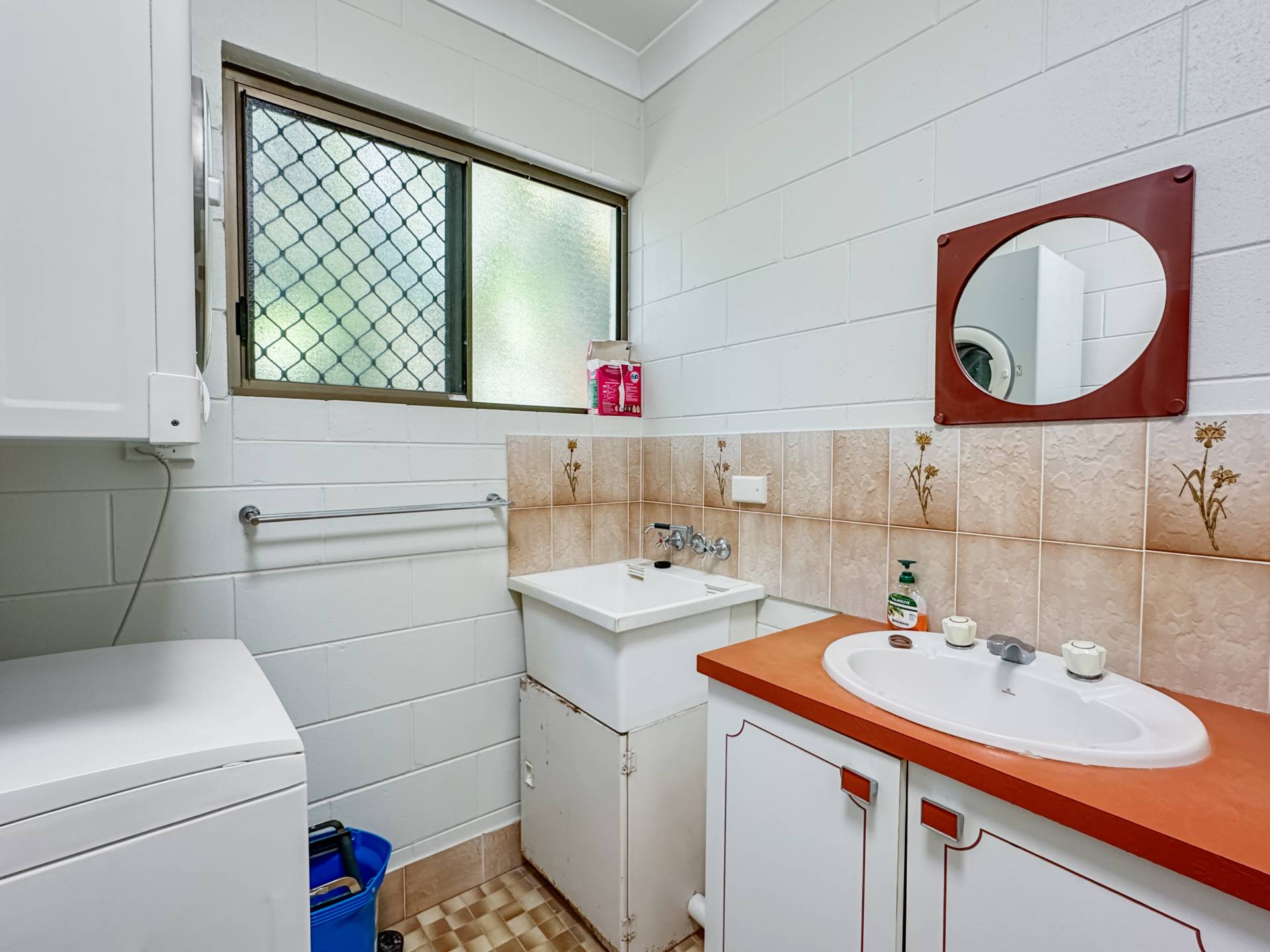 The bathroom/laundry has a shower over the bath and separate toilet adjacent.