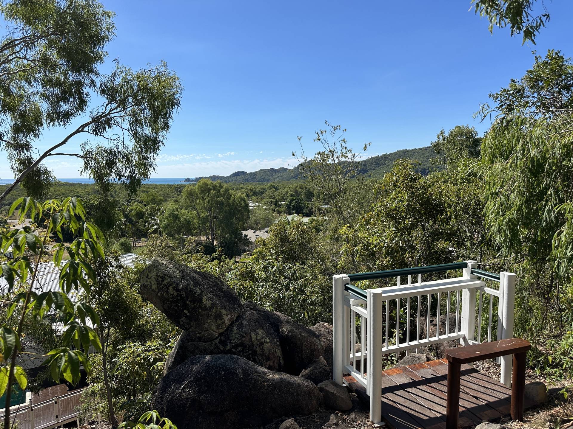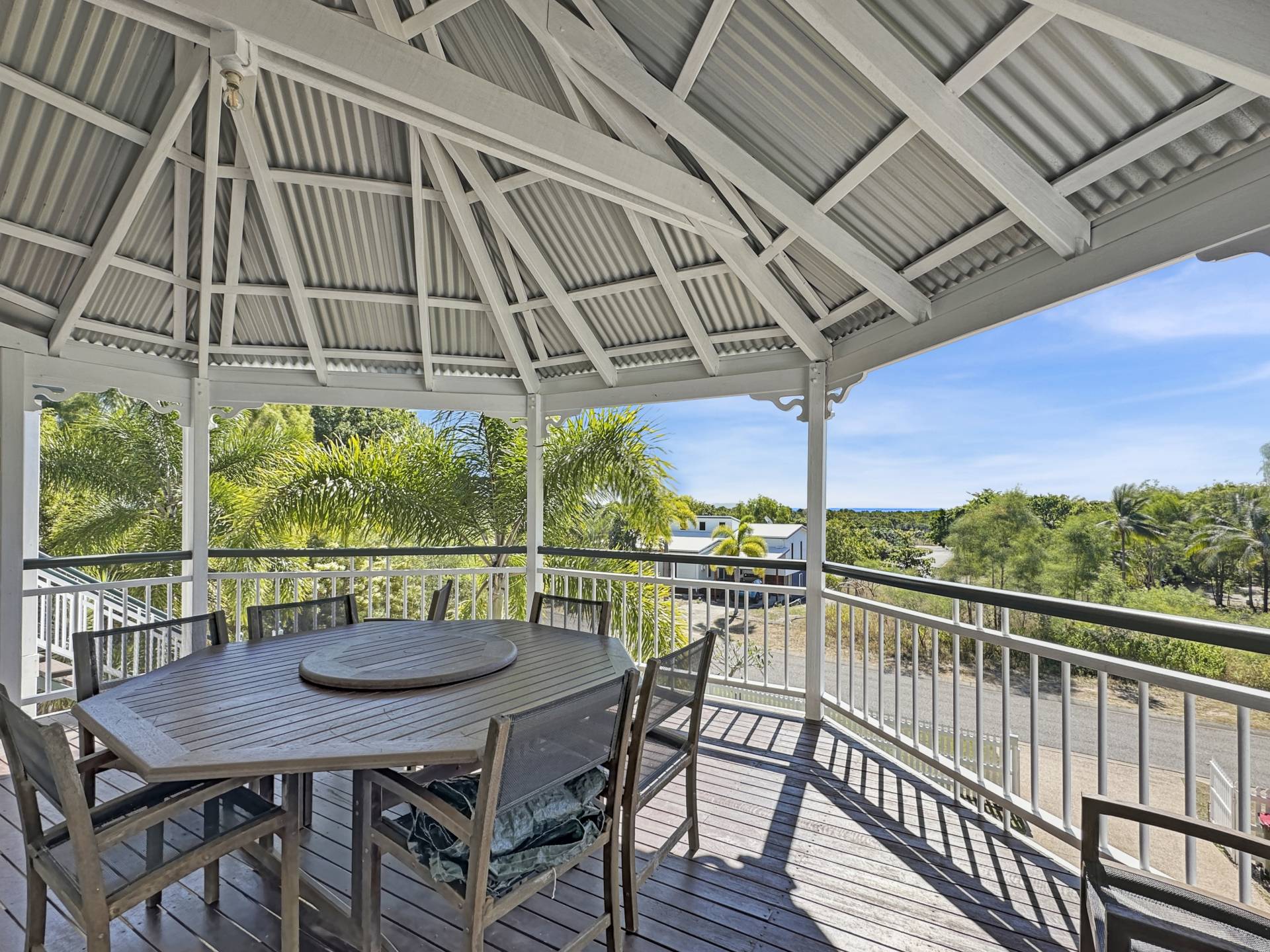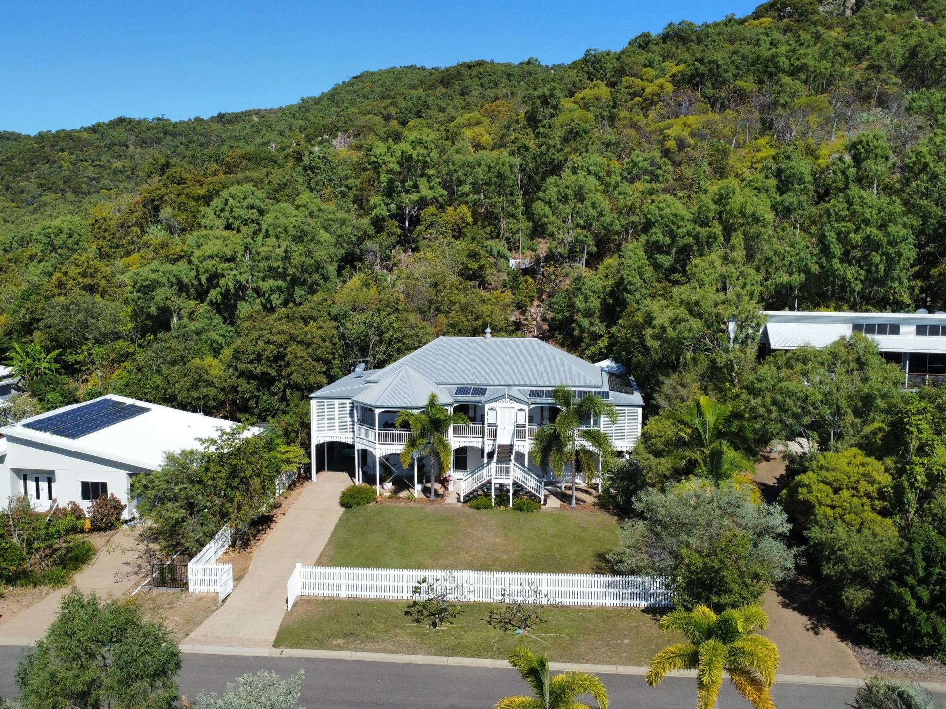Built in 2009 in the traditional Queenslander style is this elegant home which enjoys an elevated position backing onto the hills of the National Park as well as panoramic views over Horseshoe Bay to the blue waters of the Coral Sea and all the way to Hinchinbrook Island on a clear day.