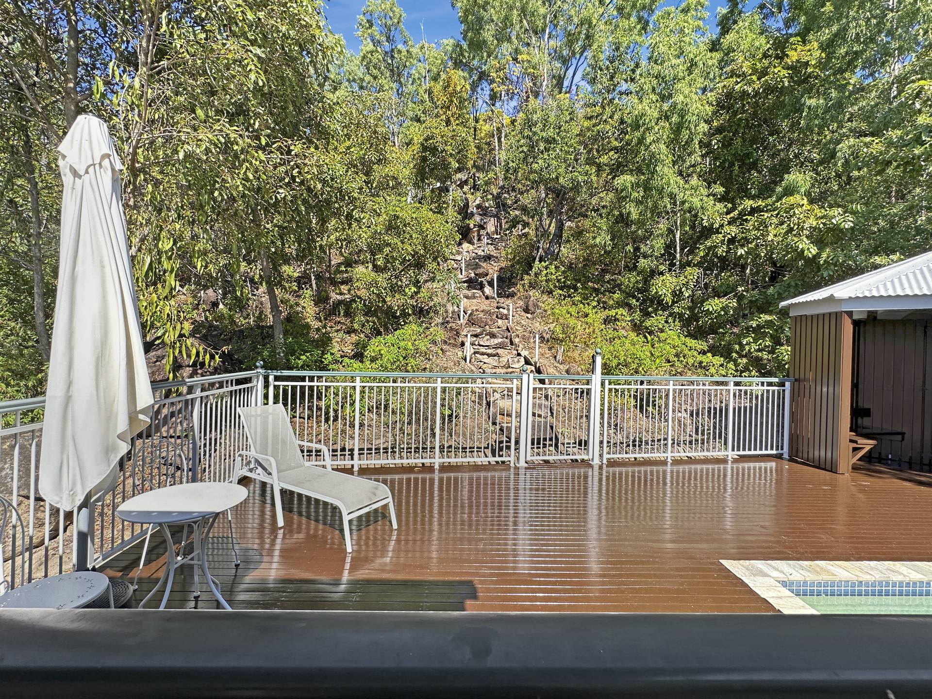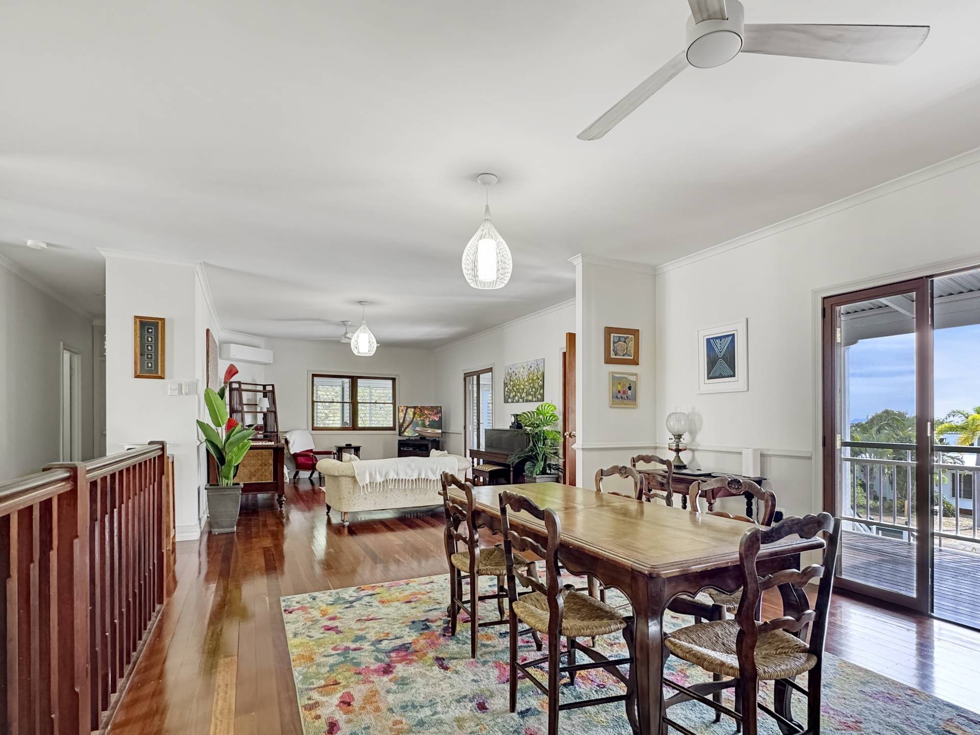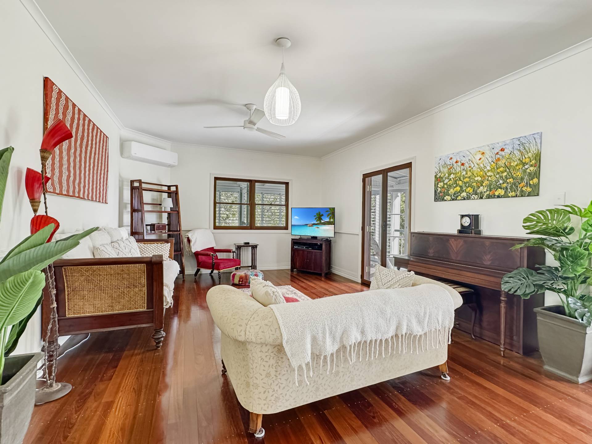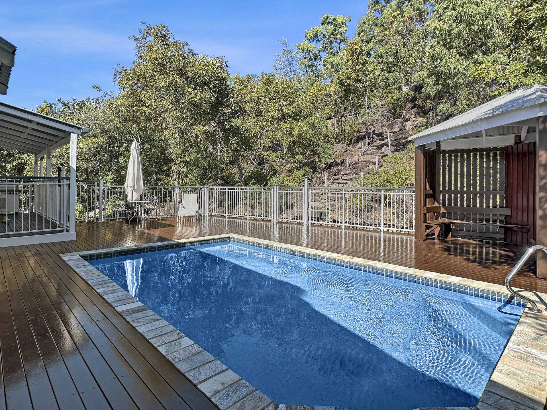Built in 2009 in the traditional Queenslander style is this elegant home which enjoys an elevated position backing onto the hills of the National Park as well as panoramic views over Horseshoe Bay to the blue waters of the Coral Sea and all the way to Hinchinbrook Island on a clear day.