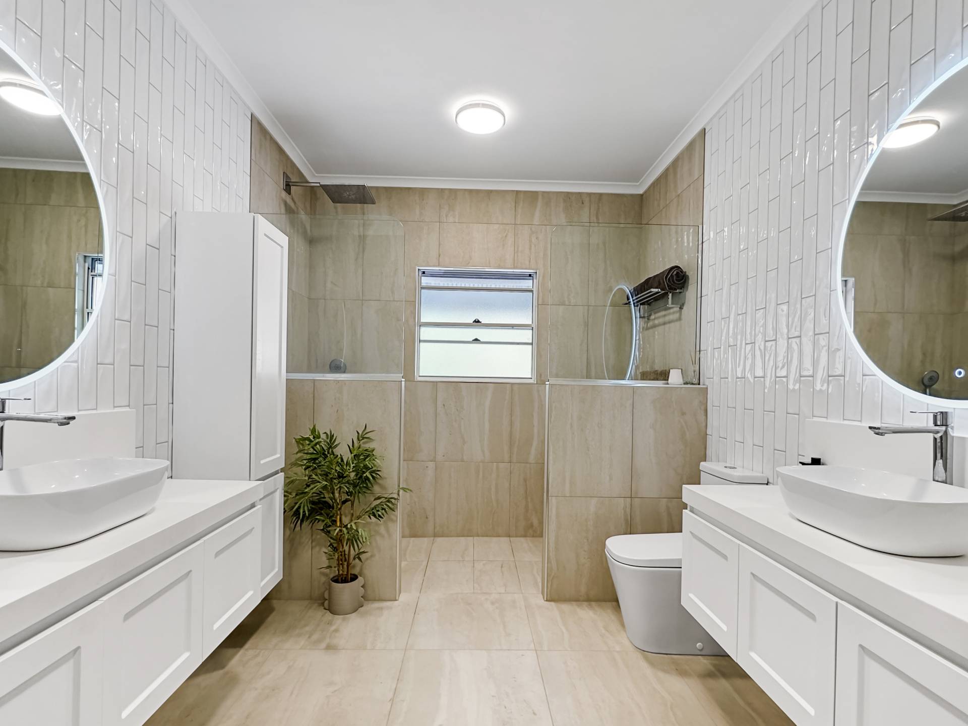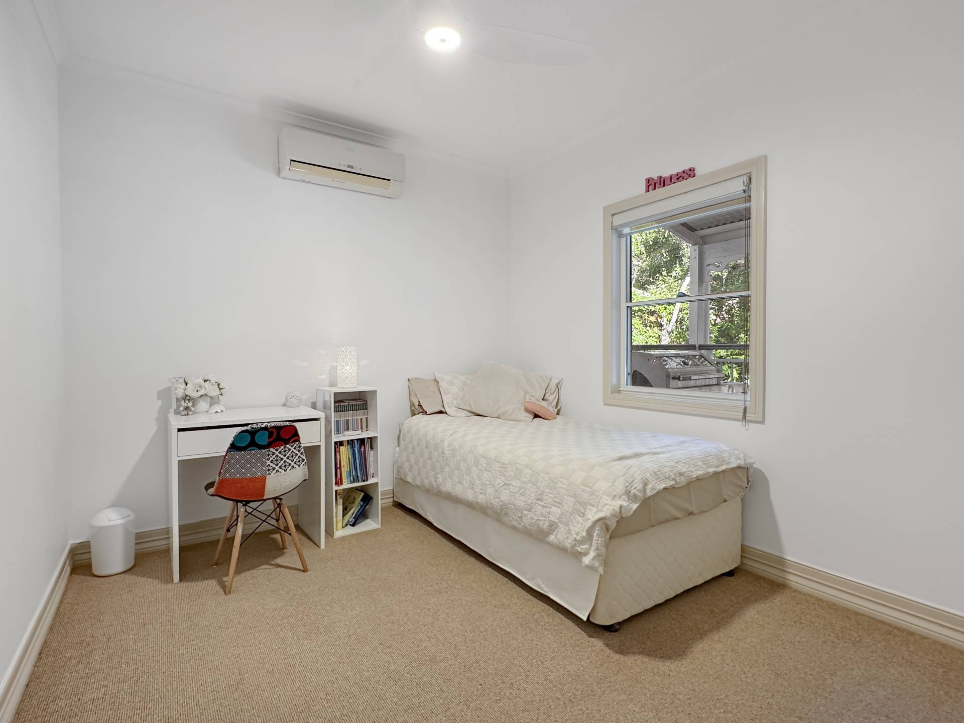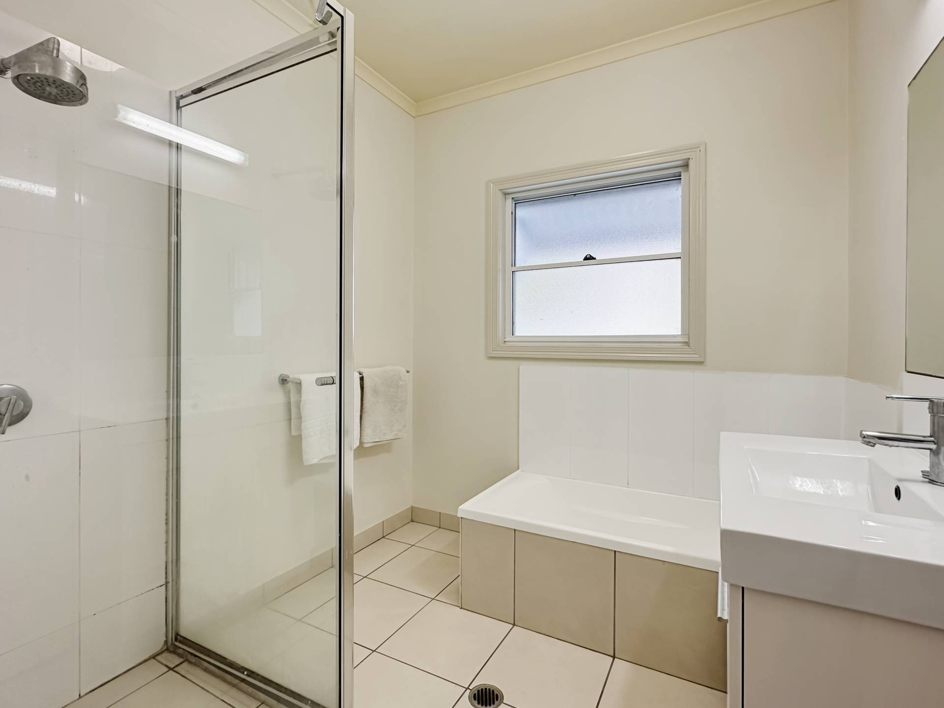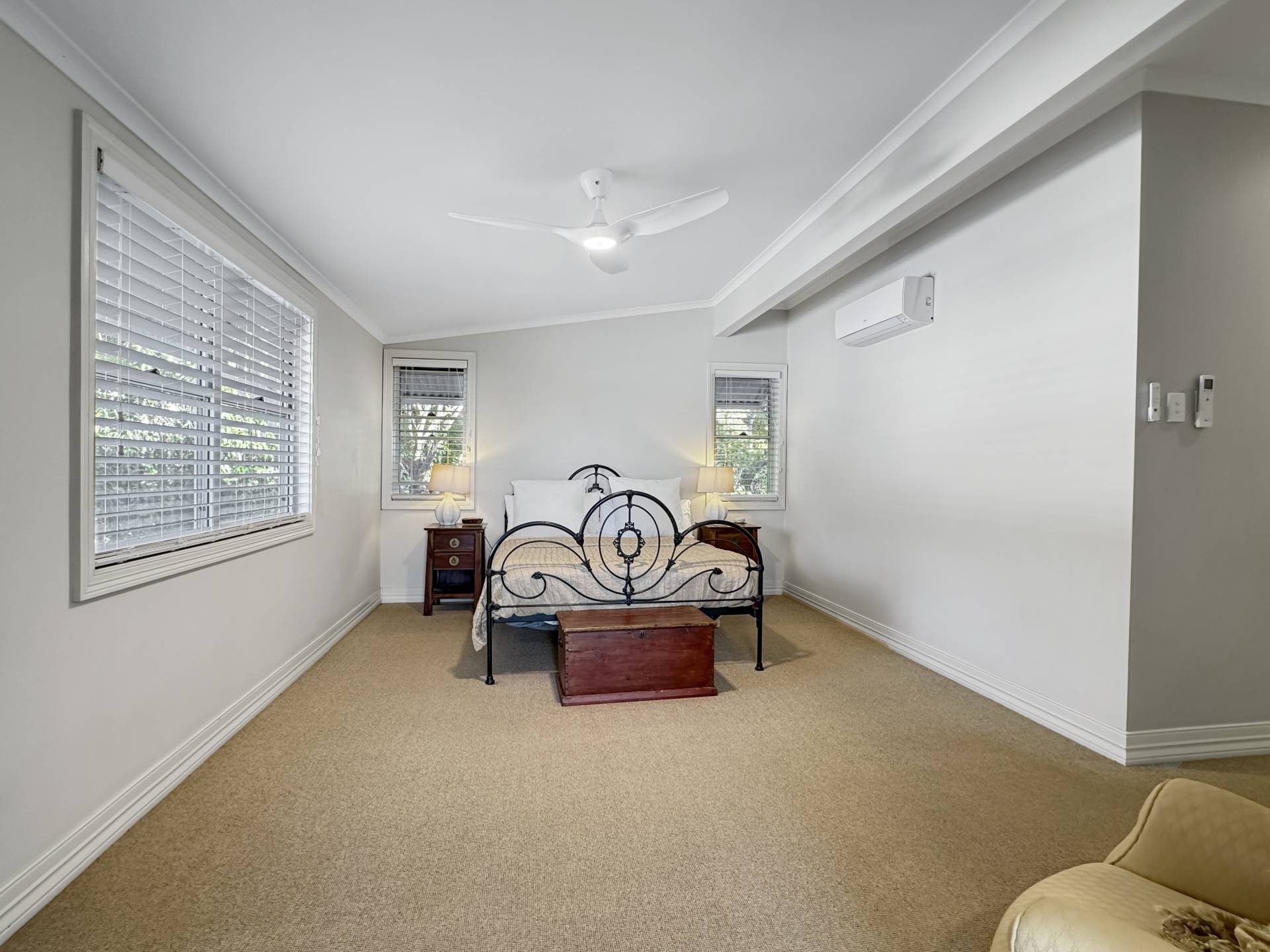 The master bedroom is extremely spacious and includes a roomy ensuite bathroom with dual vanities and walk-in shower. The large second bedroom also opens onto a louvred area of the verandah, which makes an ideal gym or craft area, whilst the smallest third bedroom is still a generous queen size, all with built-in-wardrobes and of course air con to all bedrooms and living areas throughout. The upstairs family bathroom has a separate bath, shower and vanity whilst a separate powder room and toilet is just down the hall.