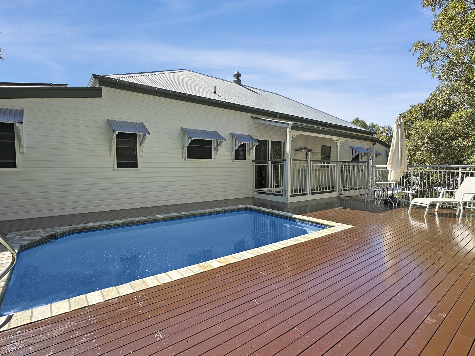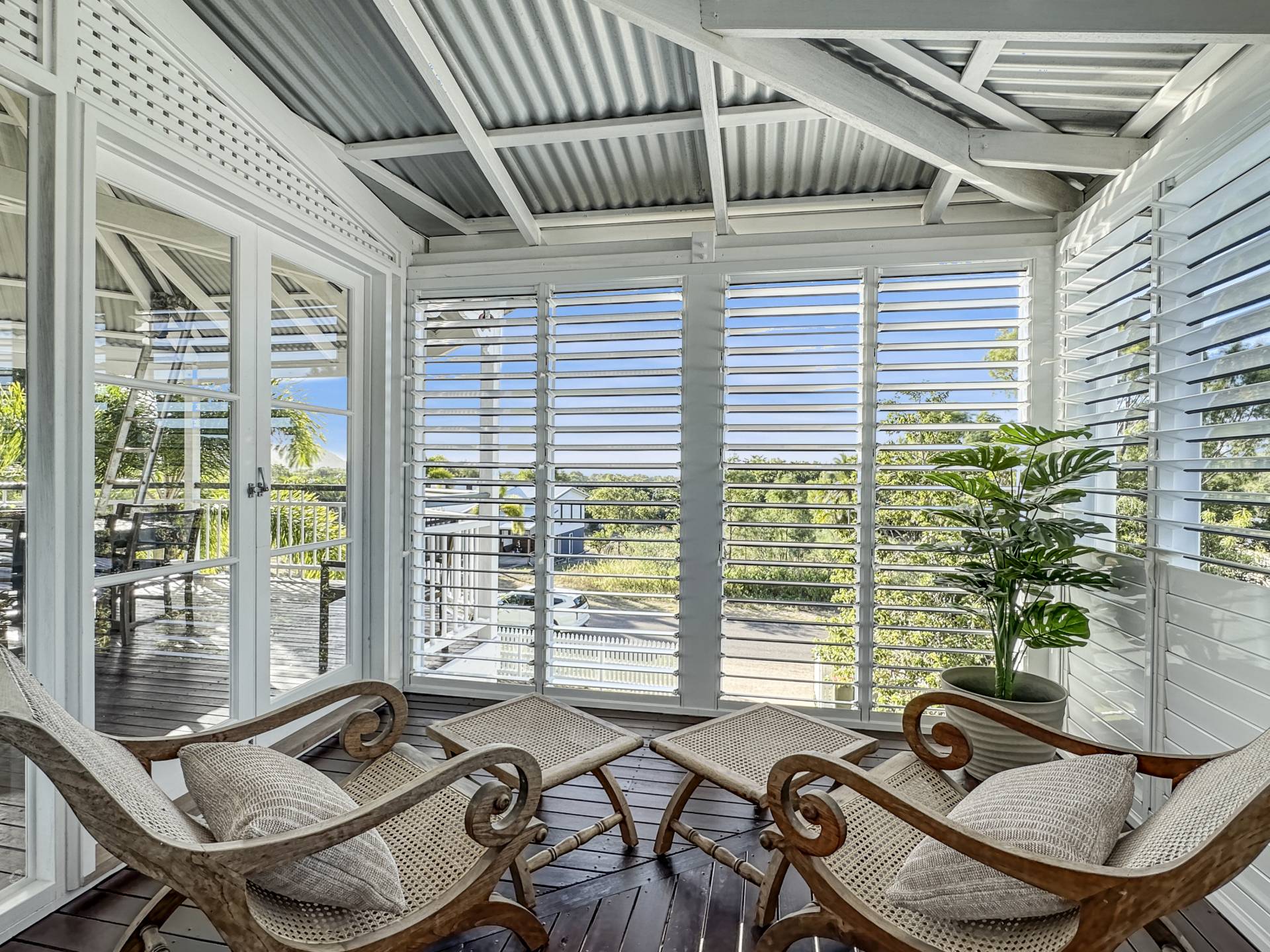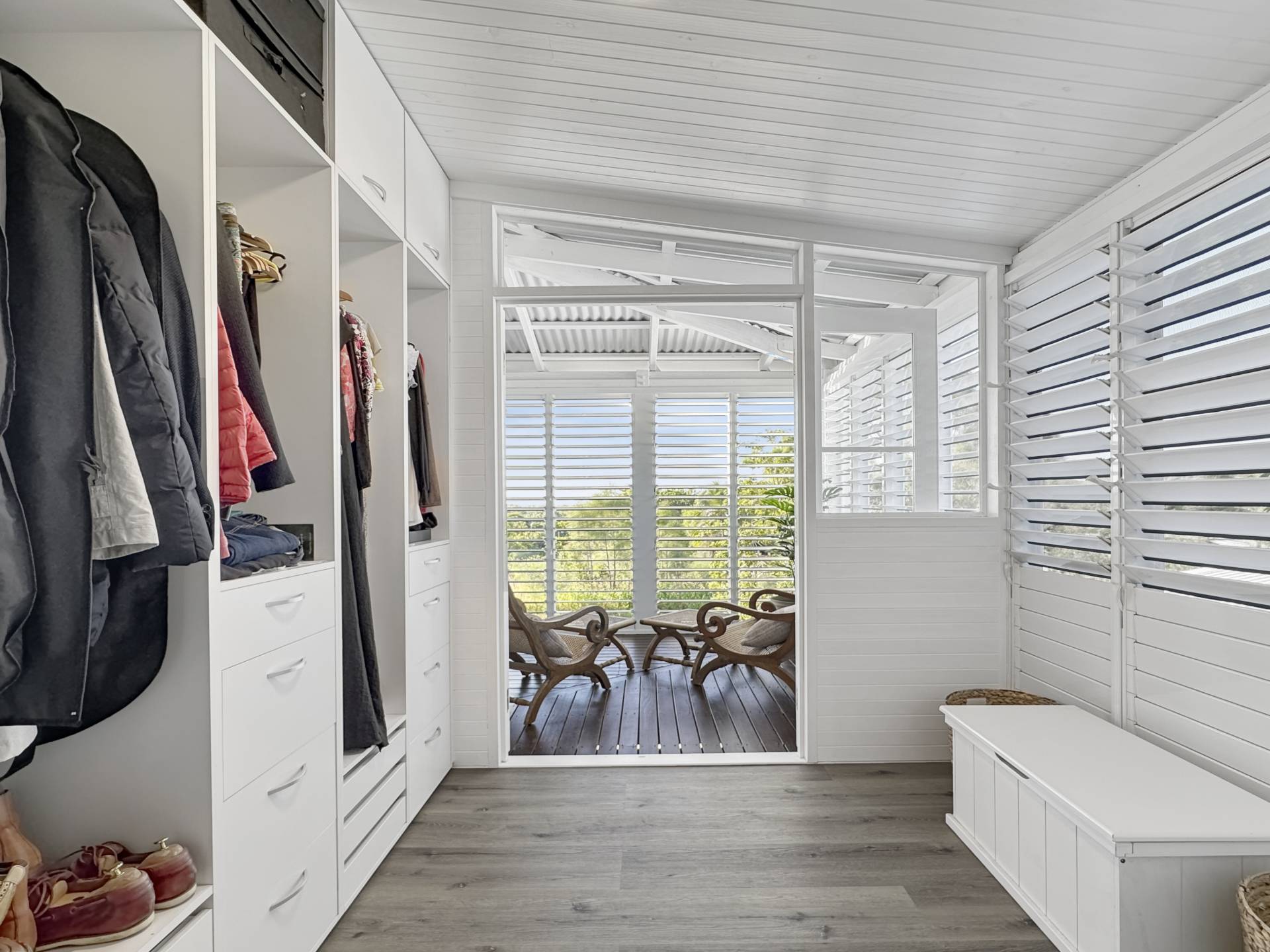 This is the ideal entertainers house with the main living area opening onto the large covered front deck and directly onto the pool deck to the rear. From the pool deck, a stone staircase brings you up to the romantic 'Sunset Bar', where you can enjoy spectacular sunsets over the bay, although they are equally as good from the main front deck of the house - or the 'G&T room', a louvred room accessed directly from the deck or the walk-through-robe of the master bedroom suite!