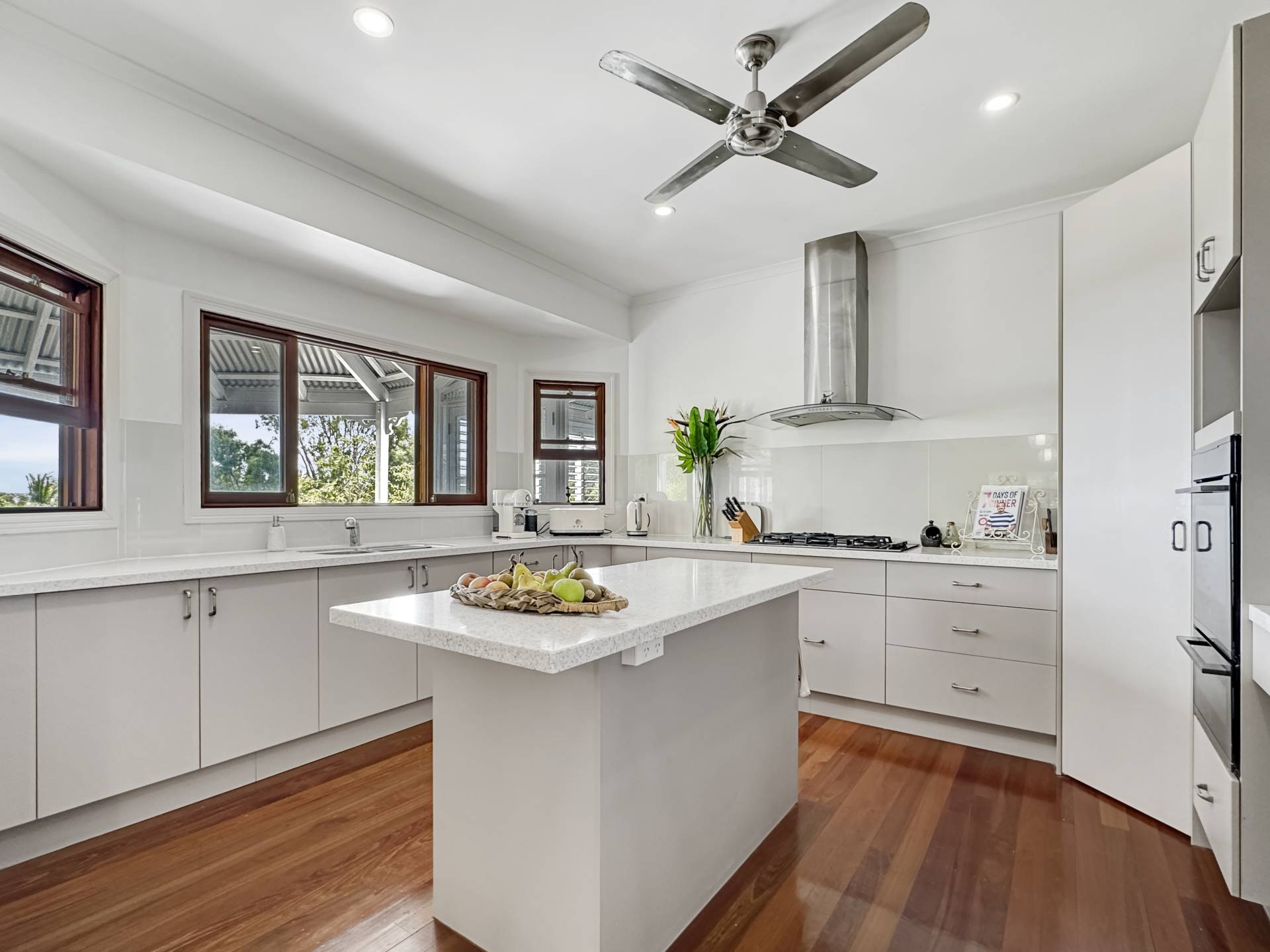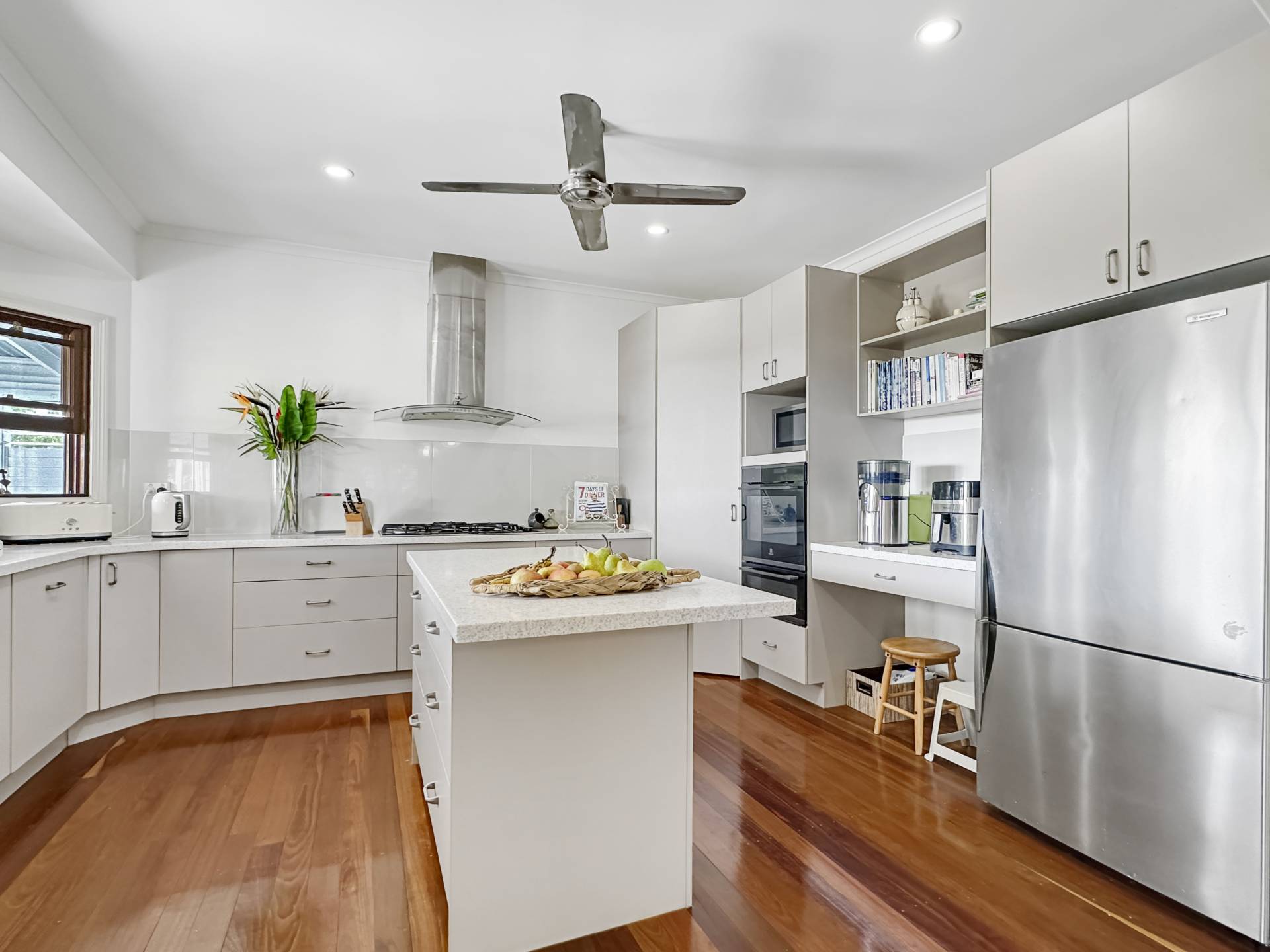 Hardwood floors, high ceilings and classic queenslander features such as french doors, latticework, breezeways, wide verandah, louvres and ornate timber fretwork all add to the style and quality finishes of this home. The kitchen includes stone benchtops, island bench, plenty of storage, water views from the kitchen sink, dishwasher and gas cooktop for the budding chef.