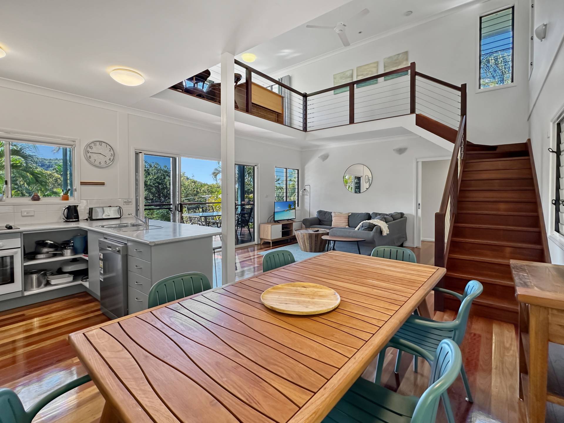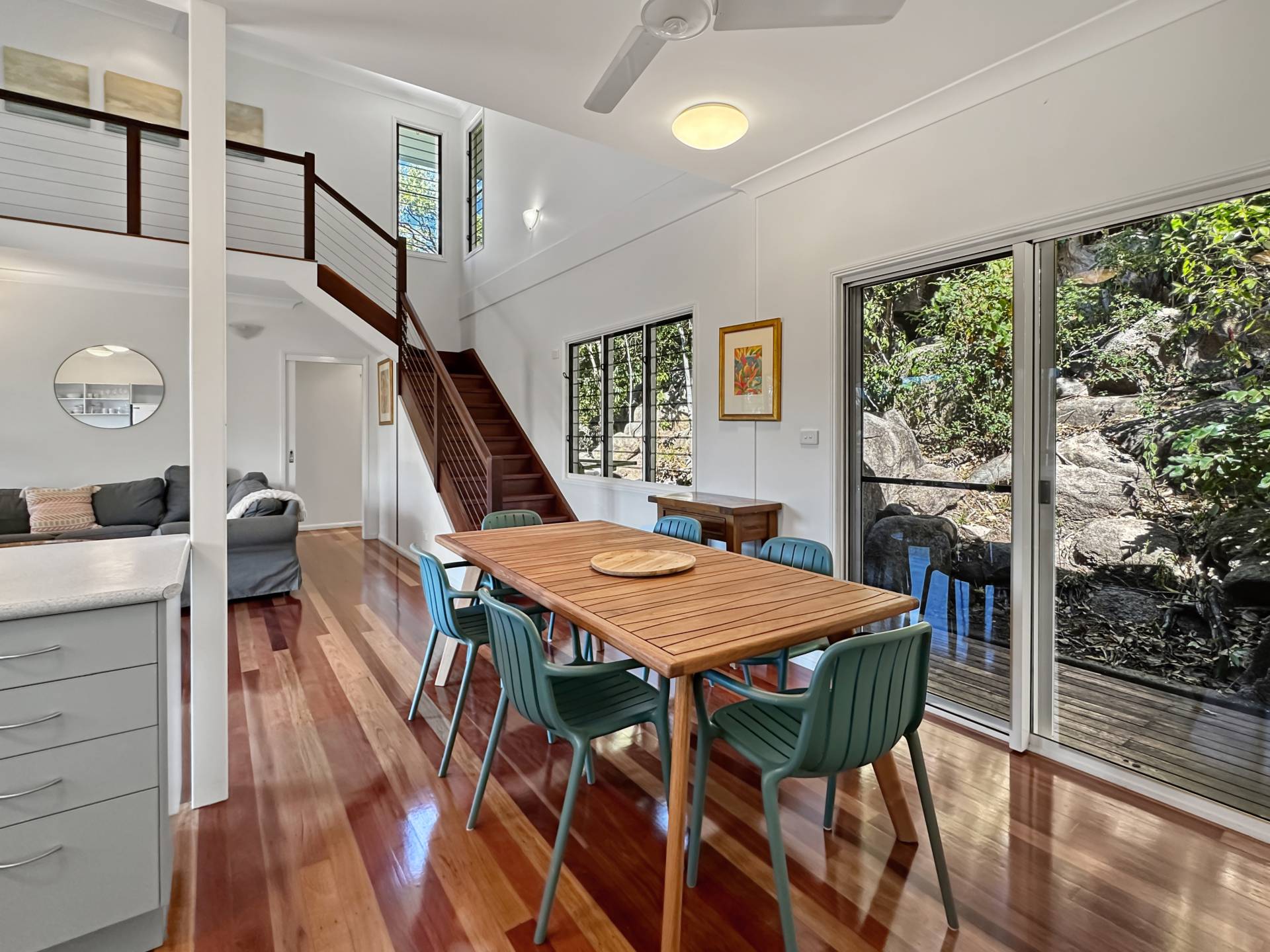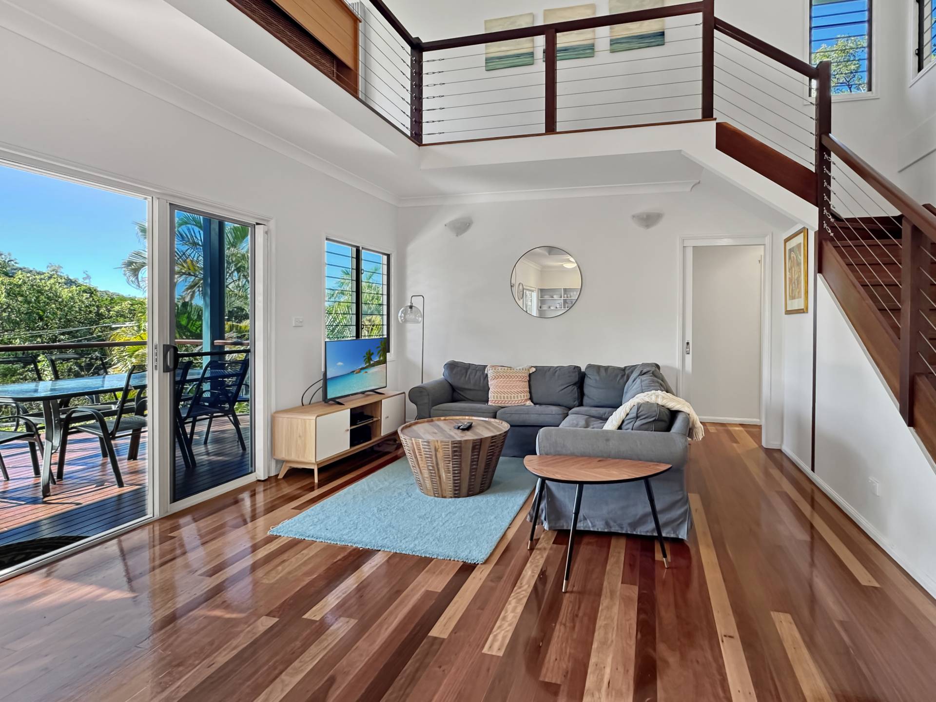 This popular holiday home would equally make the perfect home for those who will appreciate the wide open view across the treetops of Nelly Bay from the deck. The views to the hills - and ocean glimpses - are a delight whatever the season.