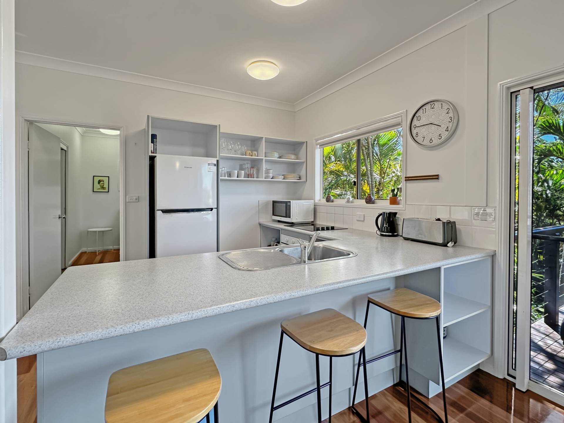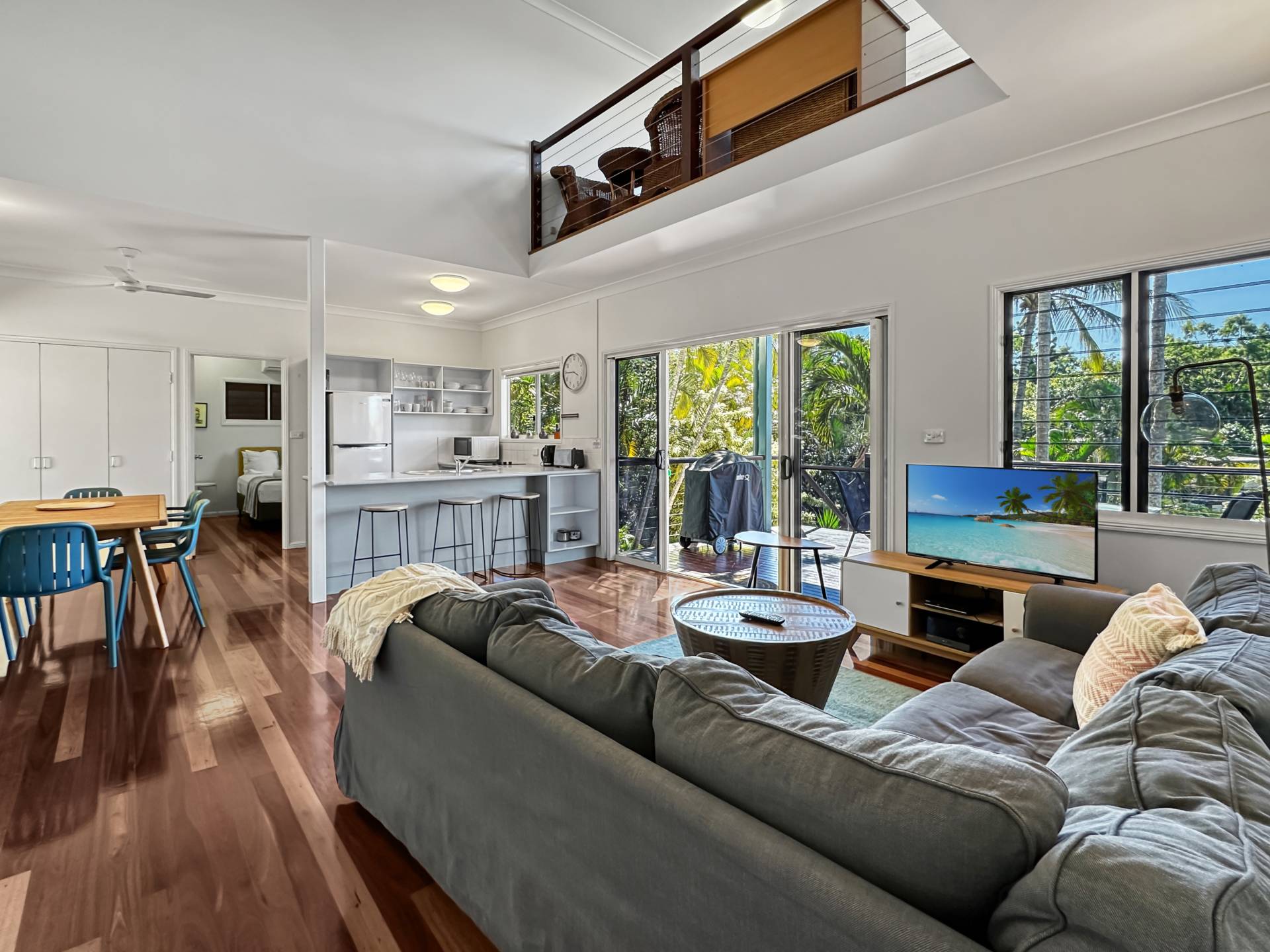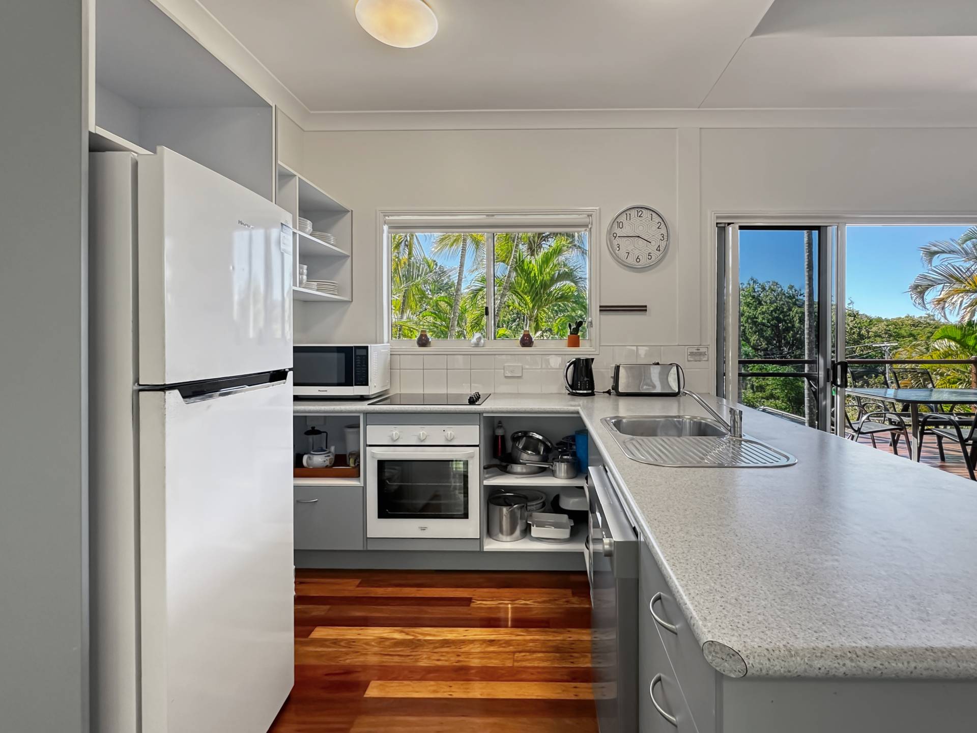 This popular holiday home would equally make the perfect home for those who will appreciate the wide open view across the treetops of Nelly Bay from the deck. The views to the hills - and ocean glimpses - are a delight whatever the season.