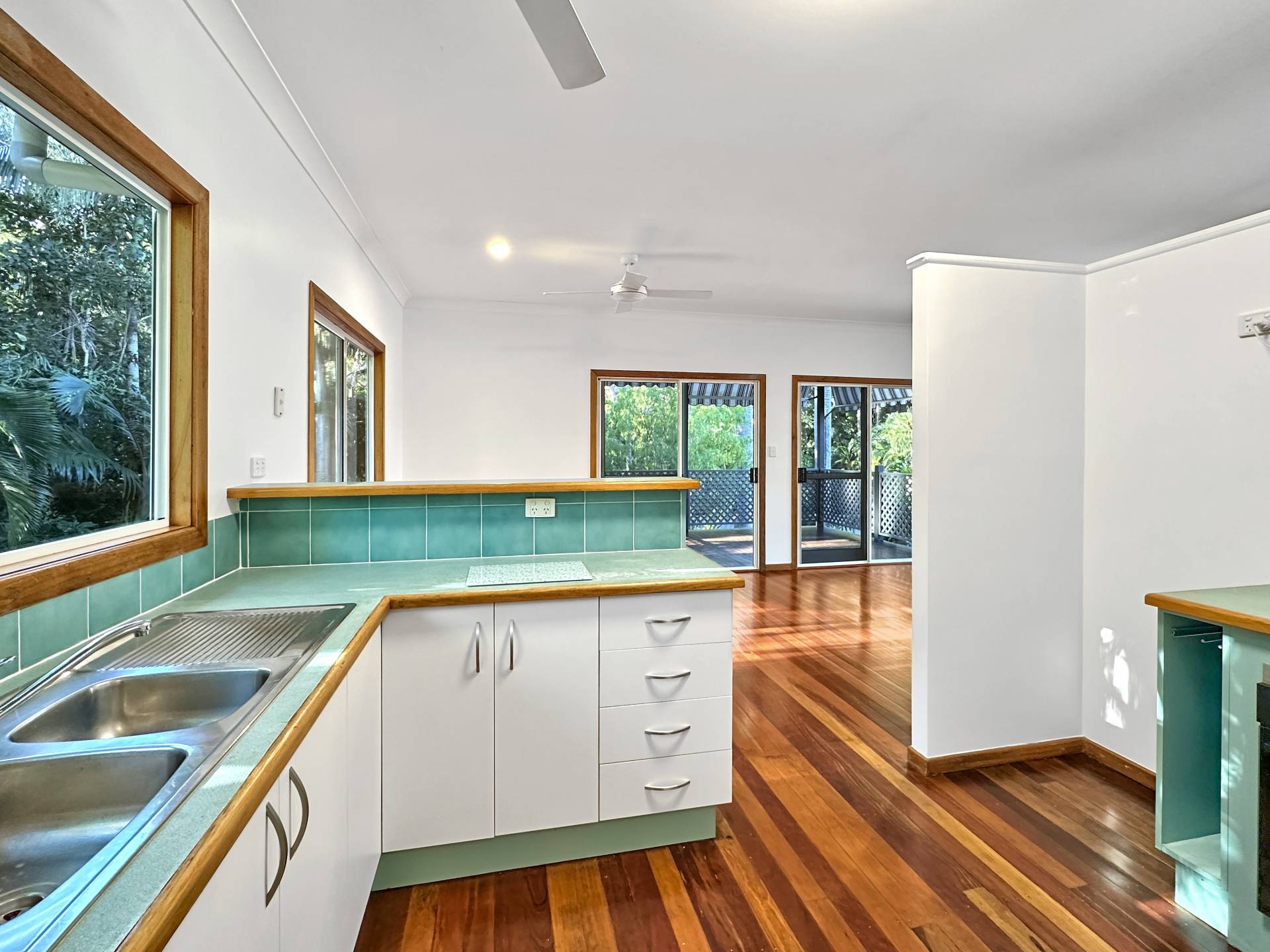 This neat home, built in 1994, enjoys treetop and mountain views from the back verandah, whilst being almost on the level from the street front and carport. Set back from the road, the paved driveway allows for plenty of off-street parking for boats, caravans etc. Pathways run down both sides of the house to the back yard where there's plenty of room for a pool and a fenced play area for pets or children.