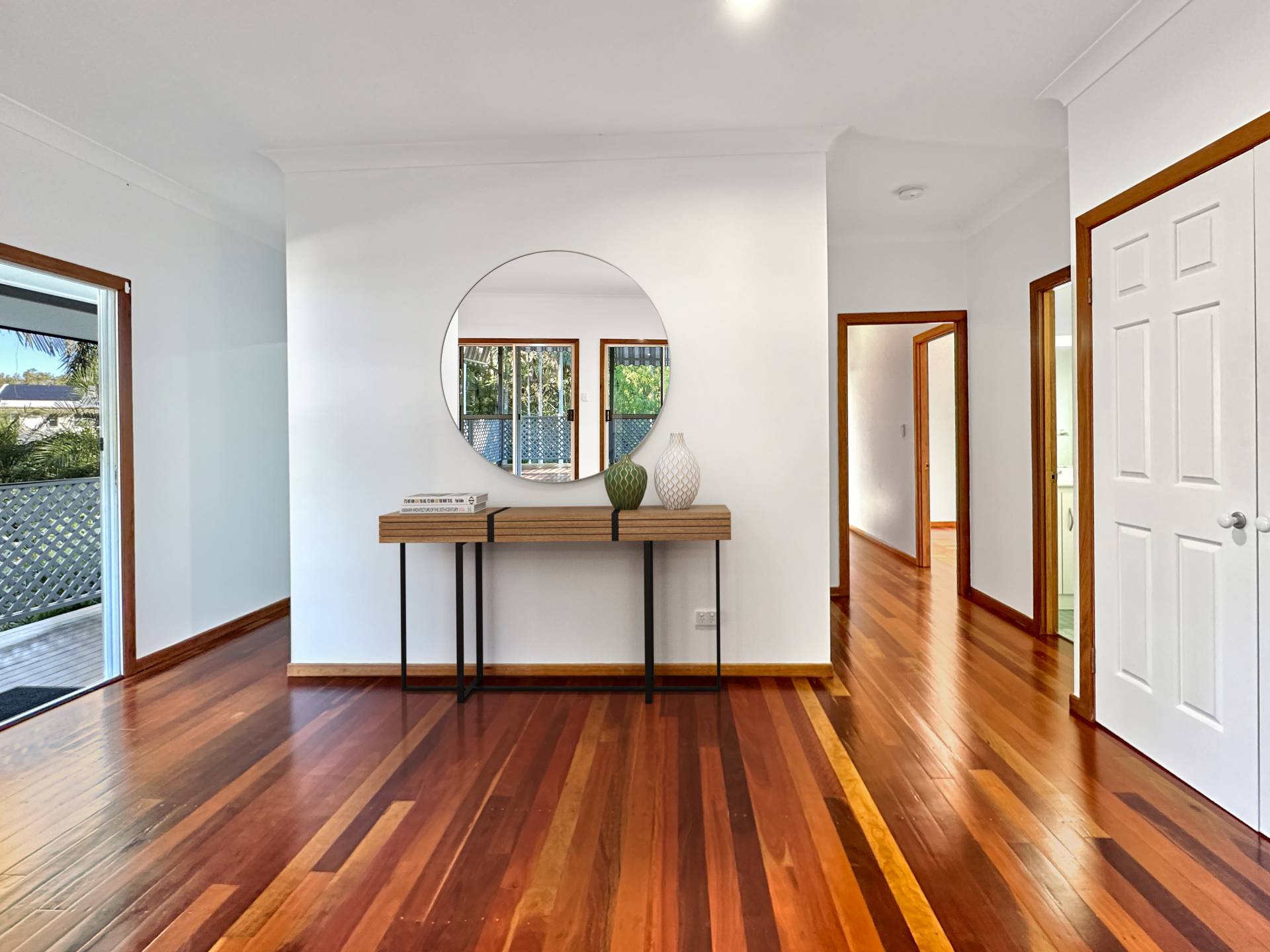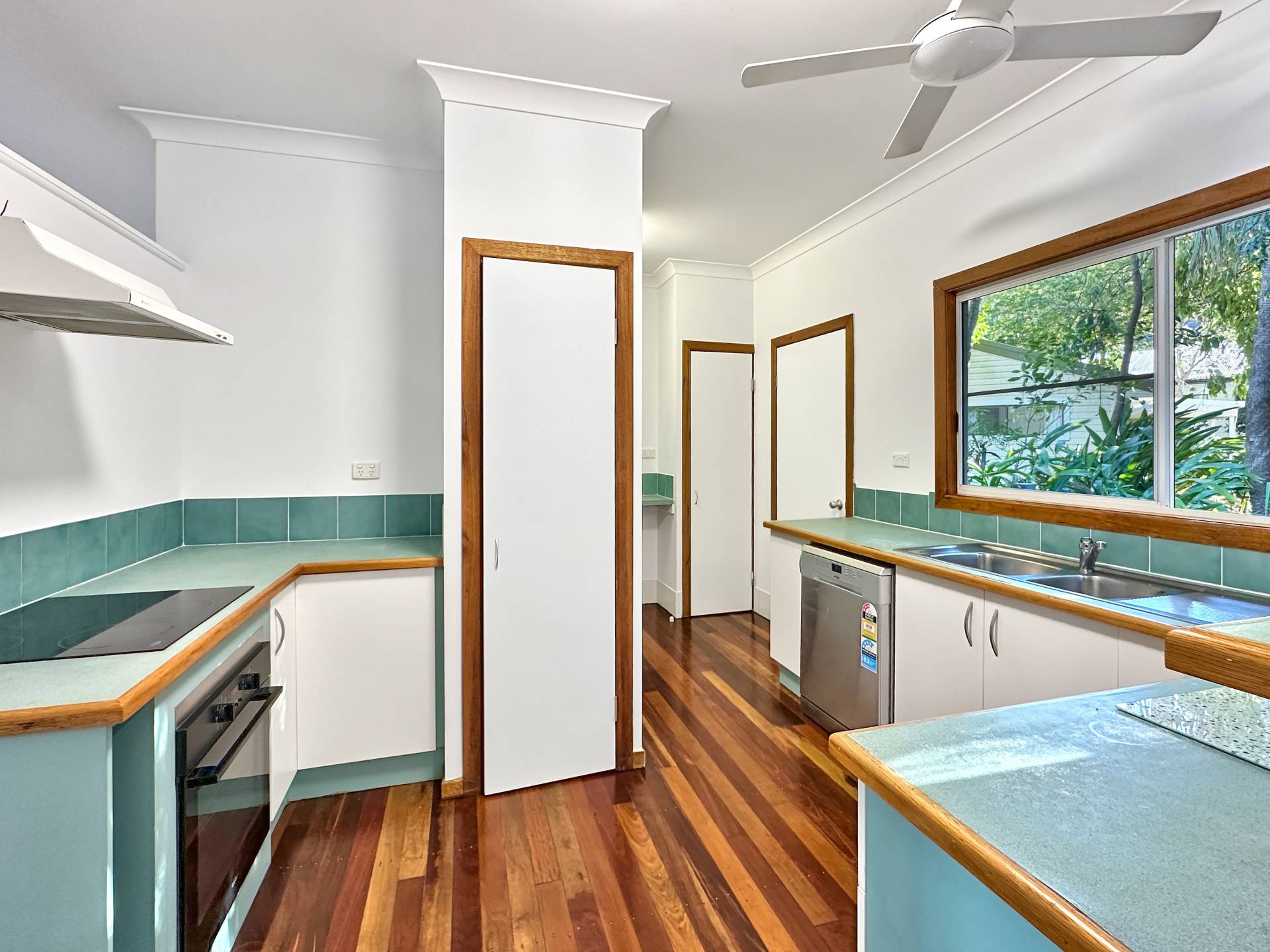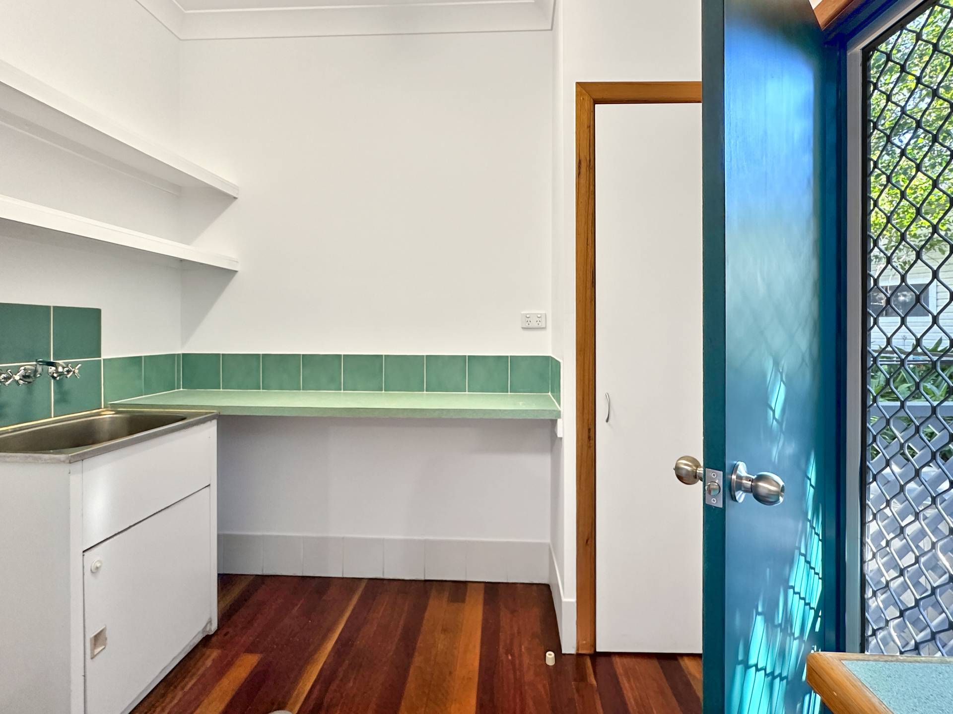 Beautiful polished wood floors feature throughout the spacious open-plan living area and bedrooms. The bright and airy living area opens onto both the covered back verandah, while is ideal for entertaining, and the front entry verandah. Just off the kitchen is the laundry which, when considering a future kitchen update, would make an ideal butler's pantry.