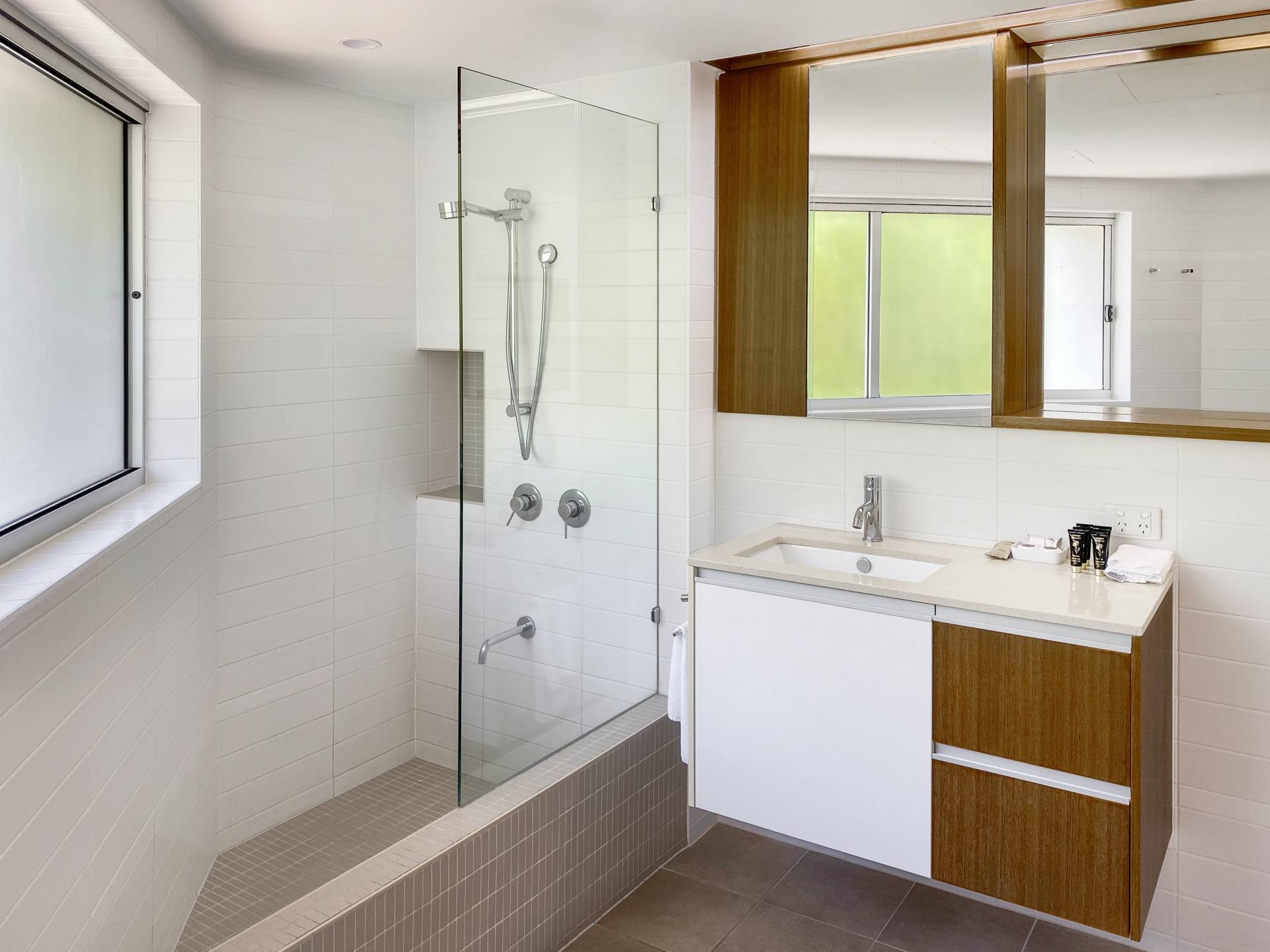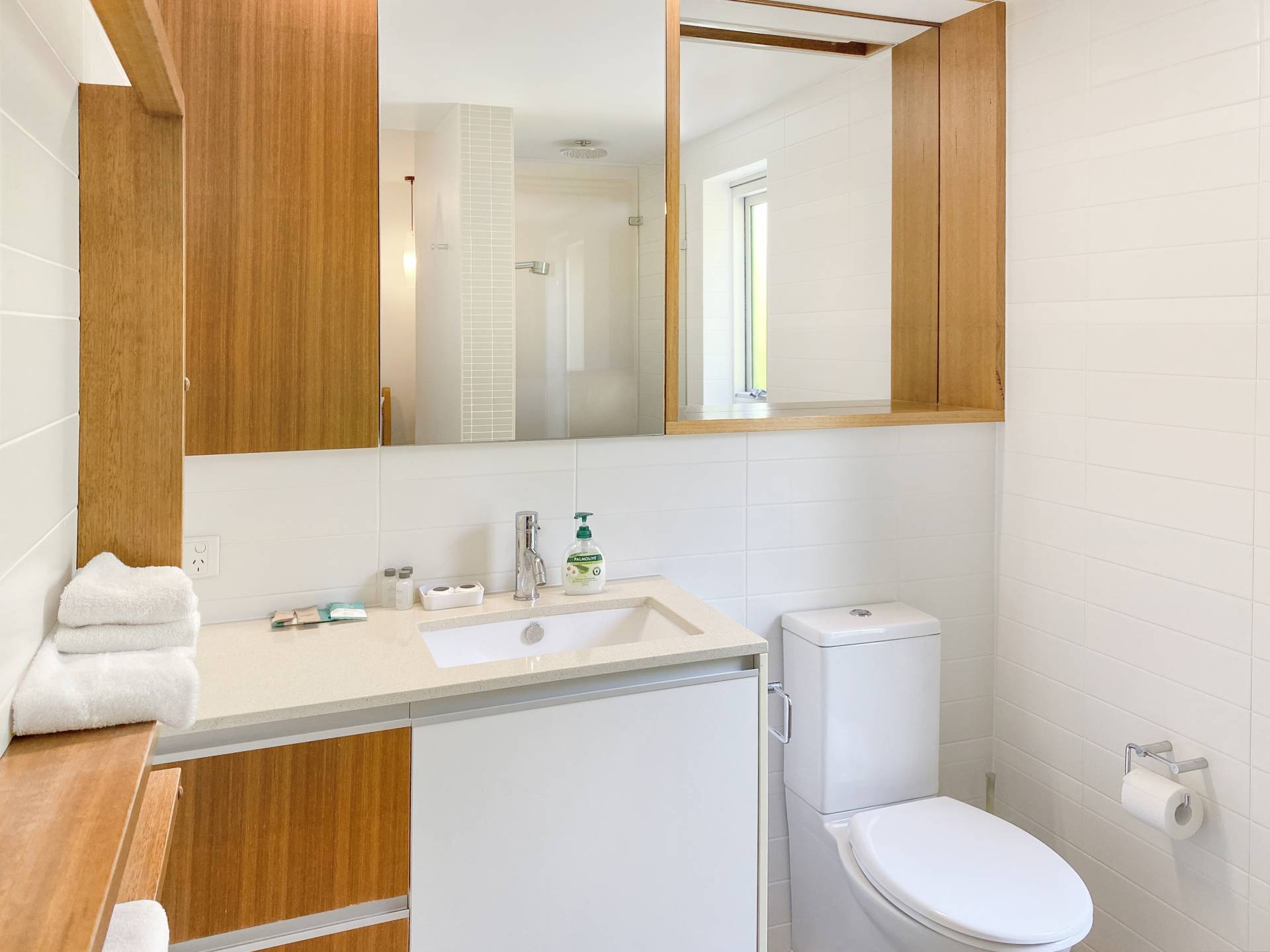 All three bedrooms have generous built-in-wardrobes and there's additional storage throughout the apartment, as well as a designated external storage cage so you can leave a few items if you are letting out the apartment when you are not here. The ensuite bathroom in the master bedroom features both rainhead and wall shower with timeless timber and stone finishes, while the main bathroom is well located to service bedrooms 2 & 3 and the living area.