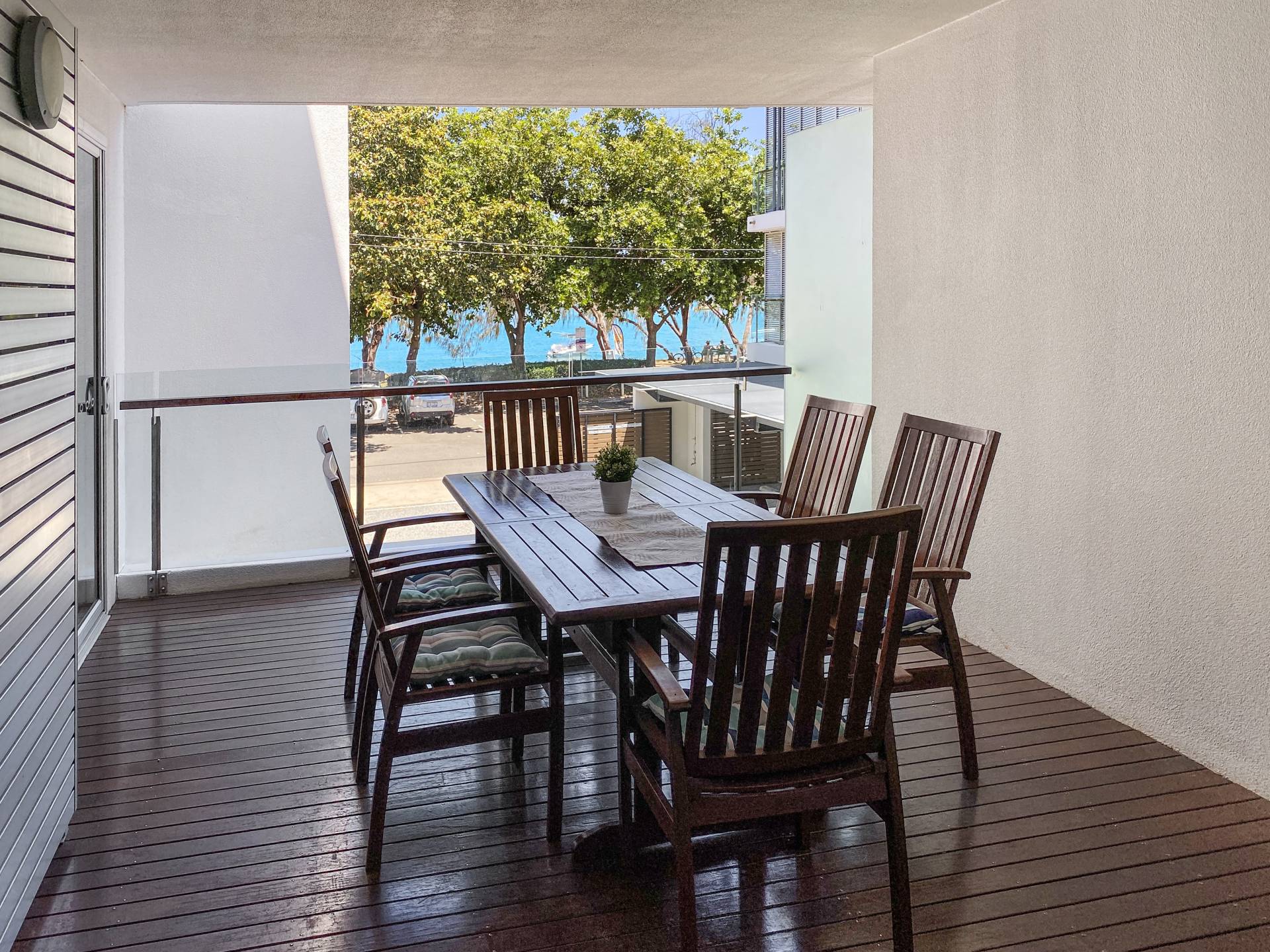 Maggies Apartment 4 takes a step back from the busy beachfront yet still enjoys a sea view from the private balcony. The 28m2 balcony is spacious enough for a large dining table, BBQ and lounge area, with large glass sliding doors opening up into bedroom 2 and the open-plan living area.