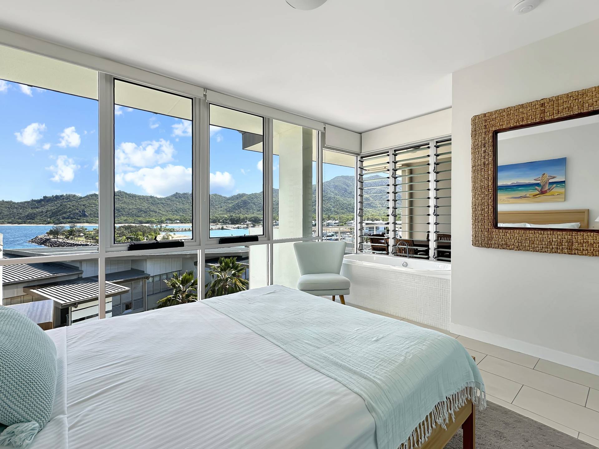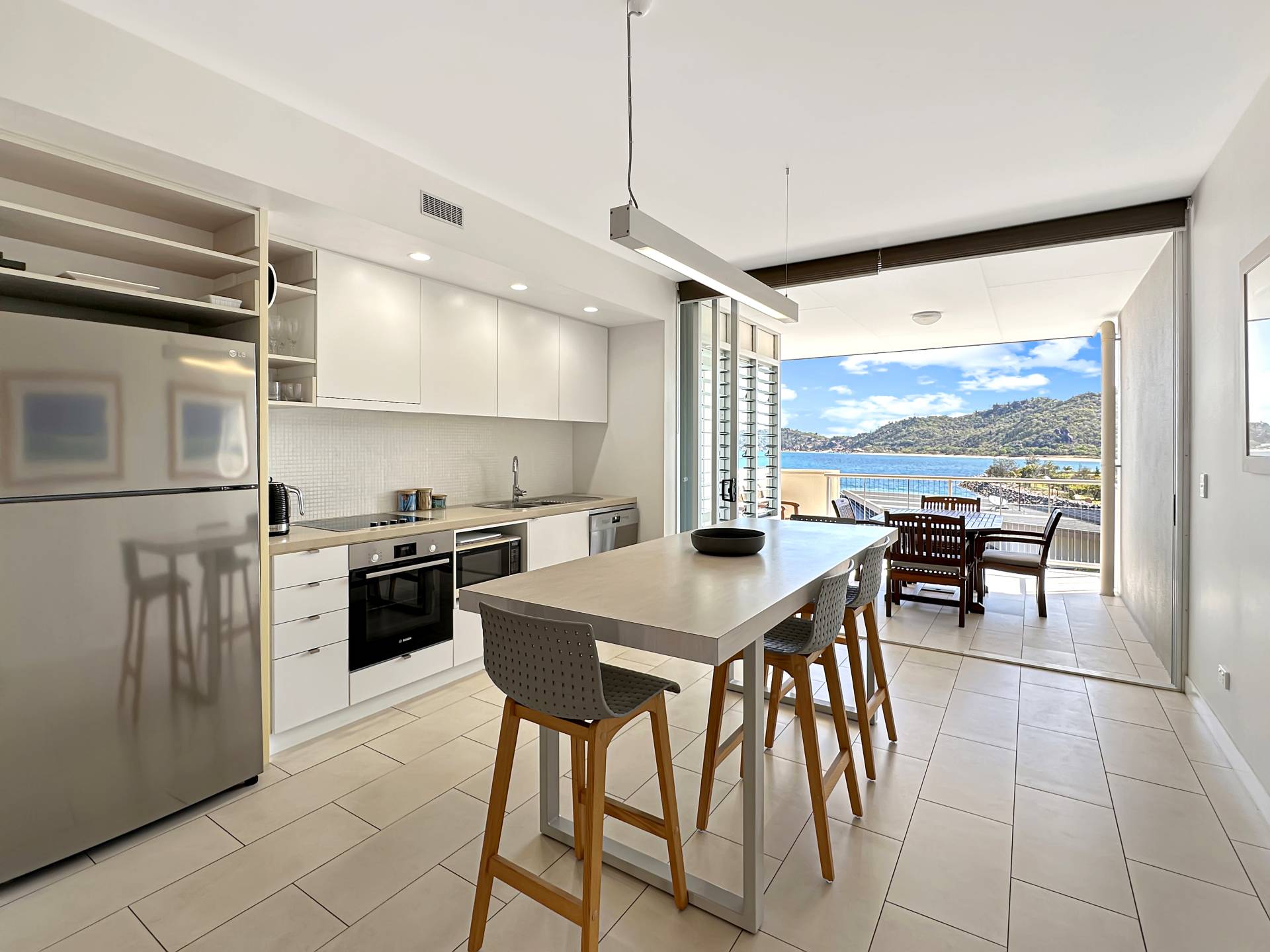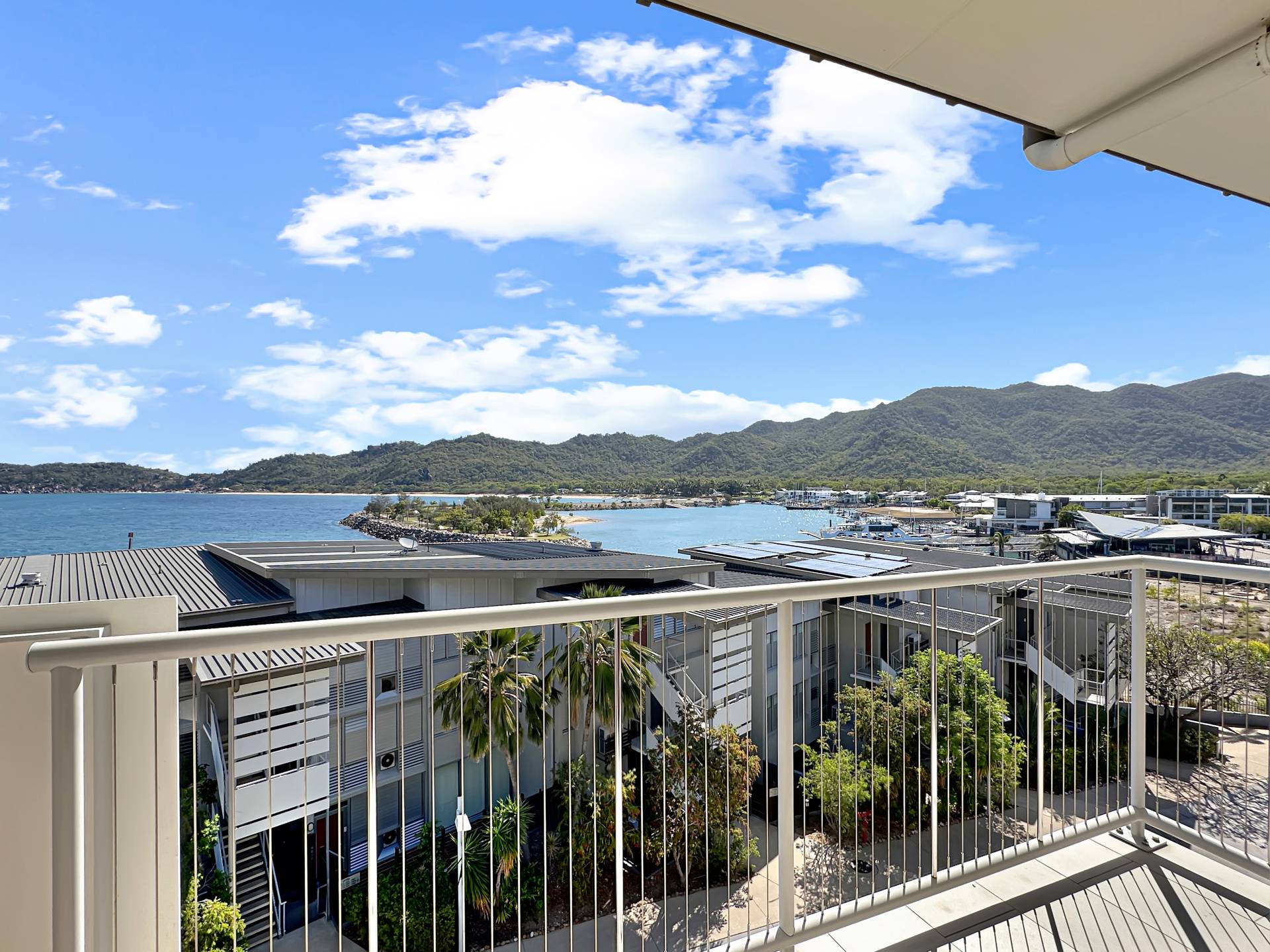 This fifth floor apartment offers captivating water views across the Coral Sea to the granite boulder-strewn hills of Magnetic Island, Nelly Bay beach and all the way to the twinkling lights of Townsville.